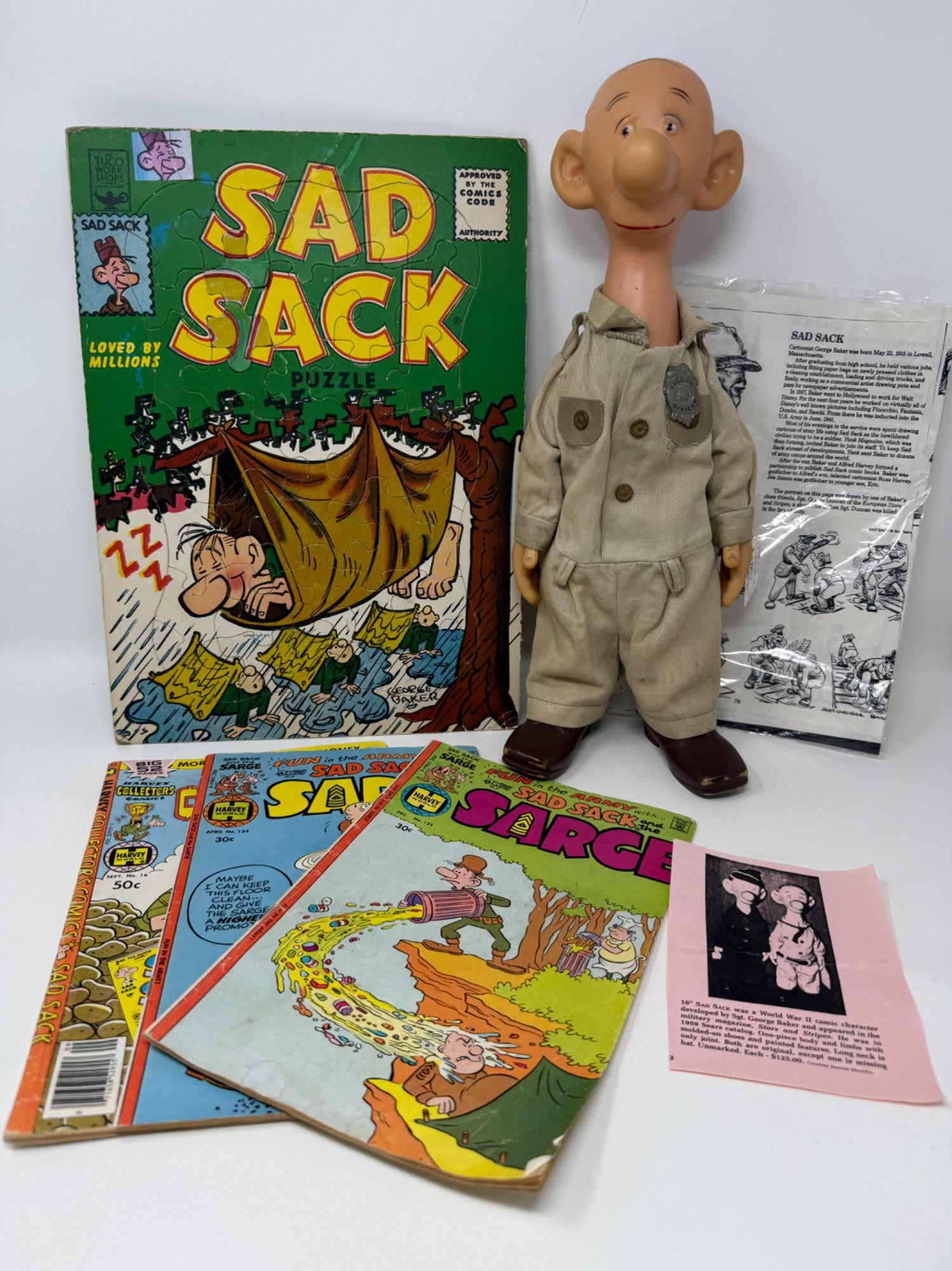 Lot # 19 - 16" Vintage Sad Sack Doll and Vintage Sad Sack Cartoon Magazines