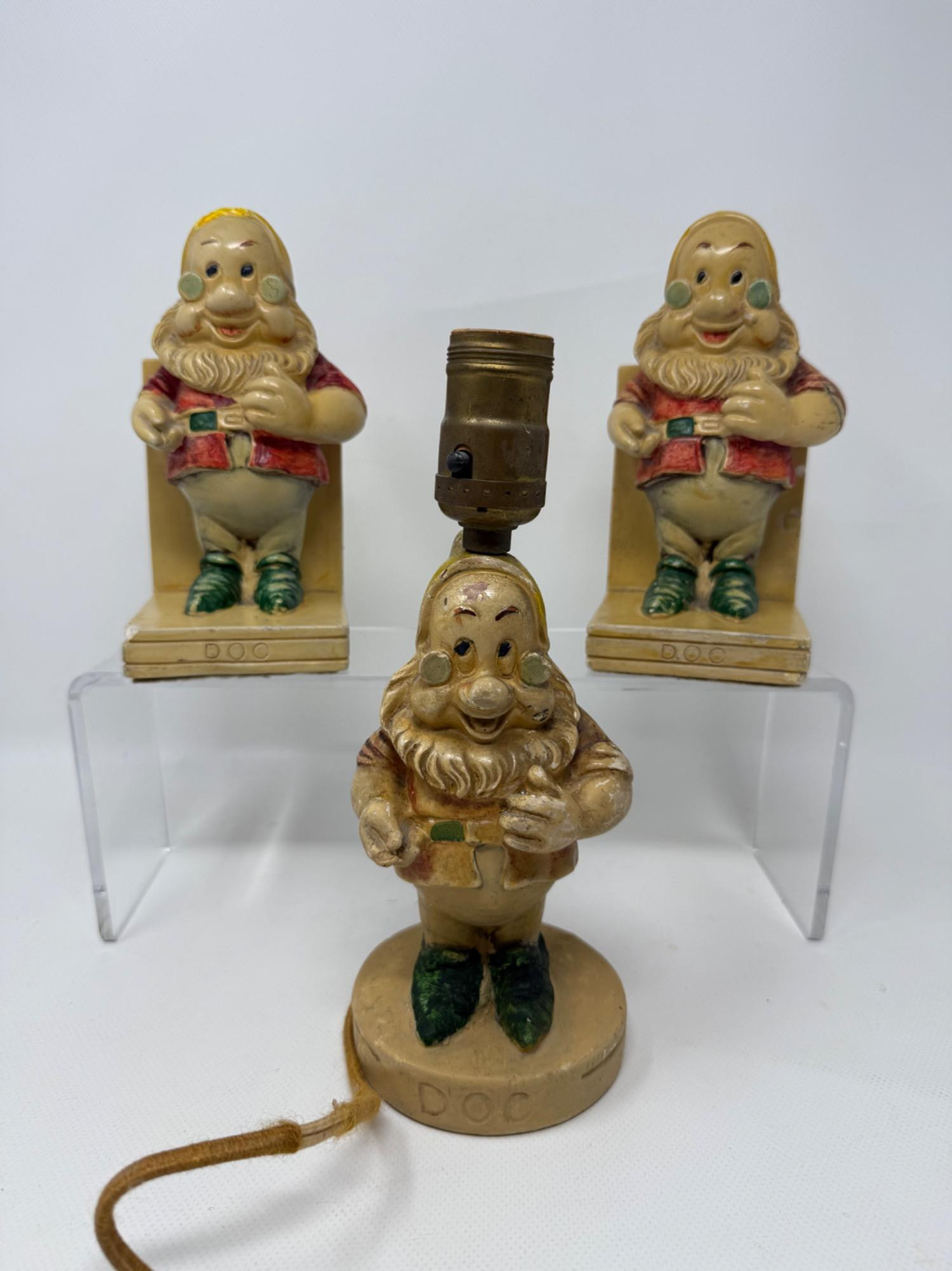 "Doc" Dwarf Modeware Lamp and Vintage Doc Bookends Very old and rare There is some wear and see pics for condition Hard to find Disney collectibles