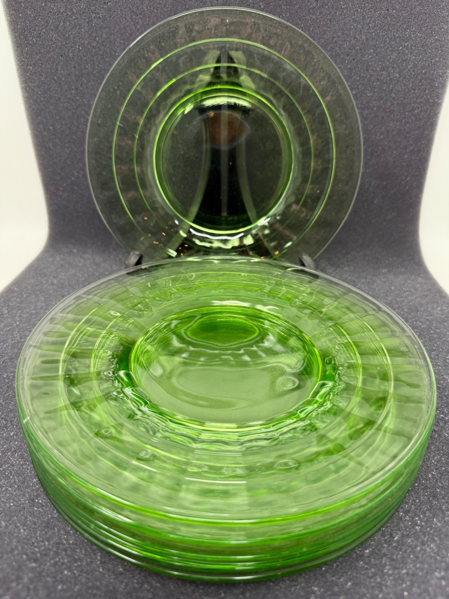 Lot # 62 - Green Block Optic Uranium Depression Glass Salad Plates