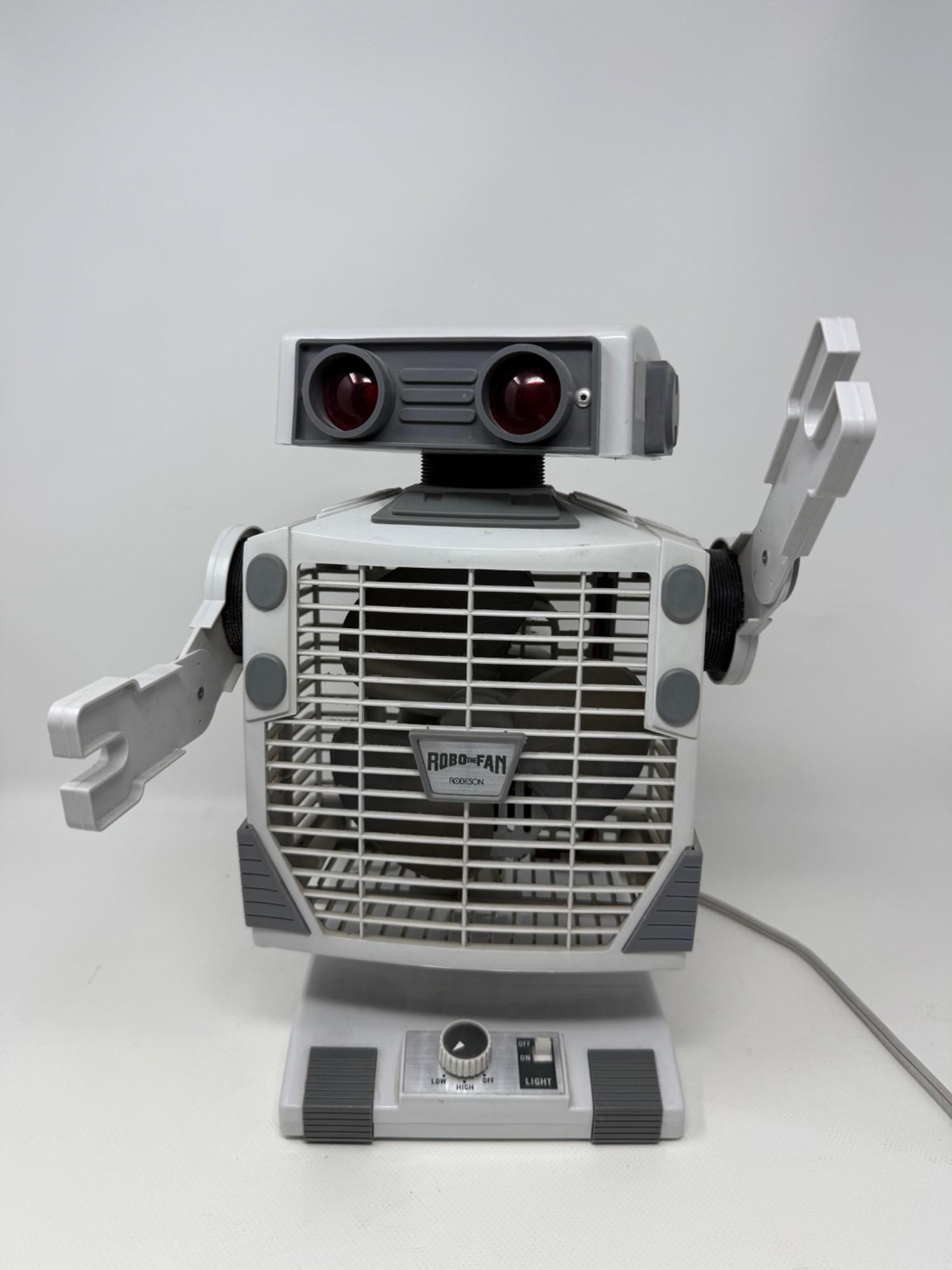 1986 Robeson Robo Fan-Model 2399 Robofan powered up quietly and would be fun in any room The eyes did not light up. Appeared to be in good condition