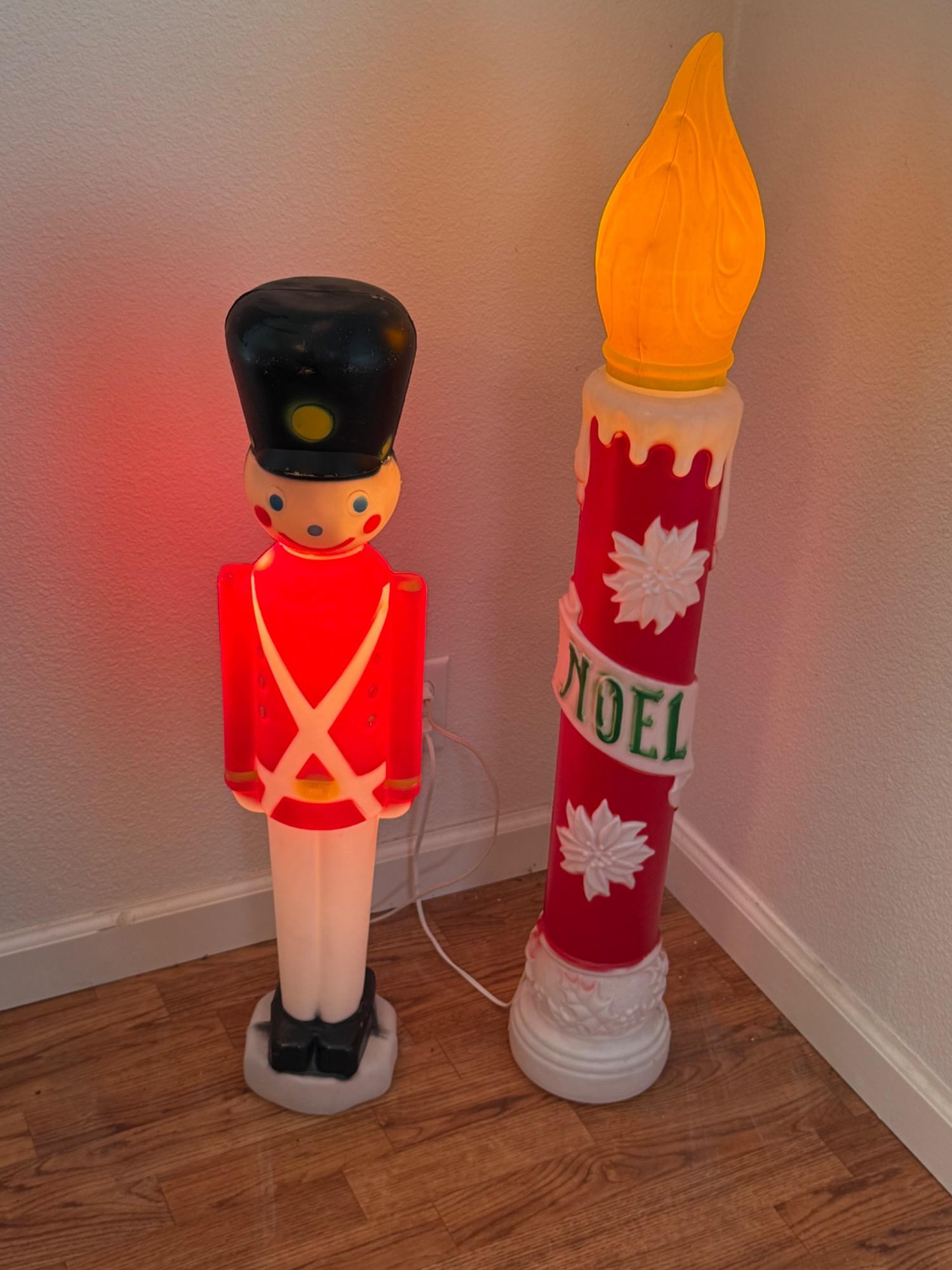 Vintage Christmas Blow Molds-Both Work! Soldier is 30in tall Candle is 38.5in tall Both are in great condition