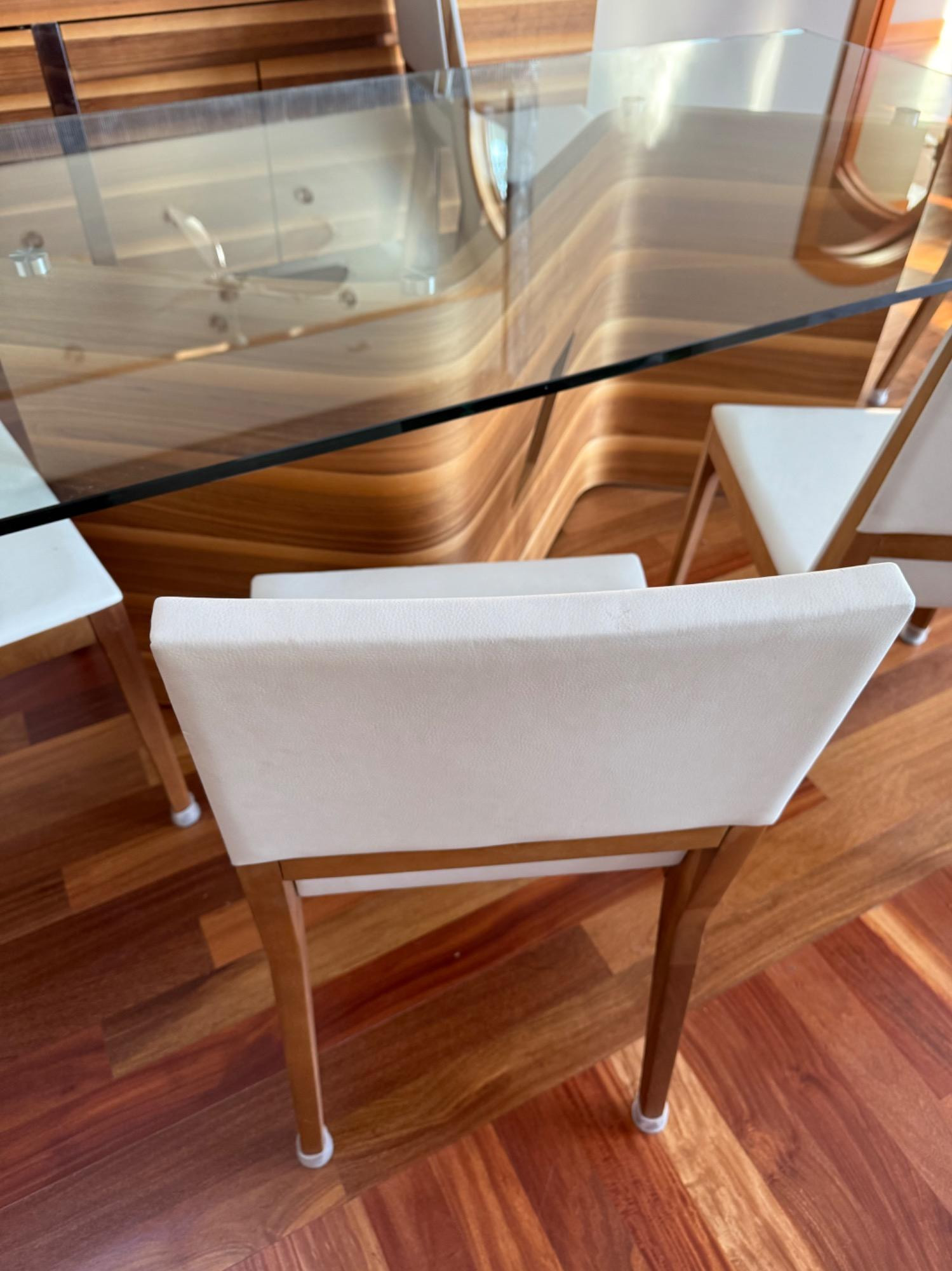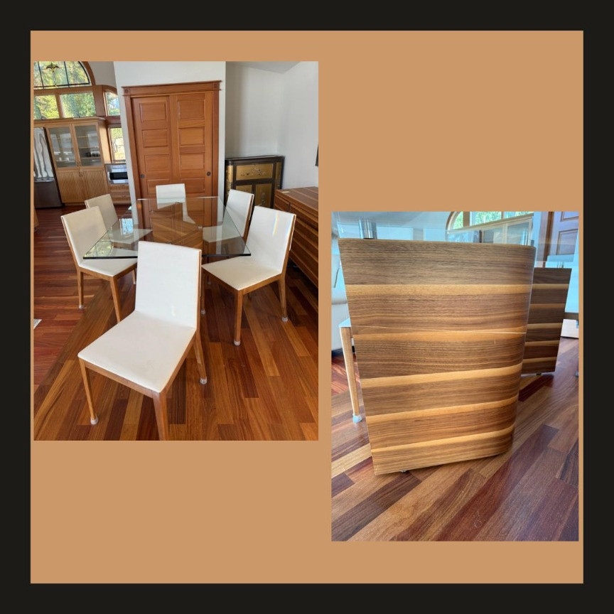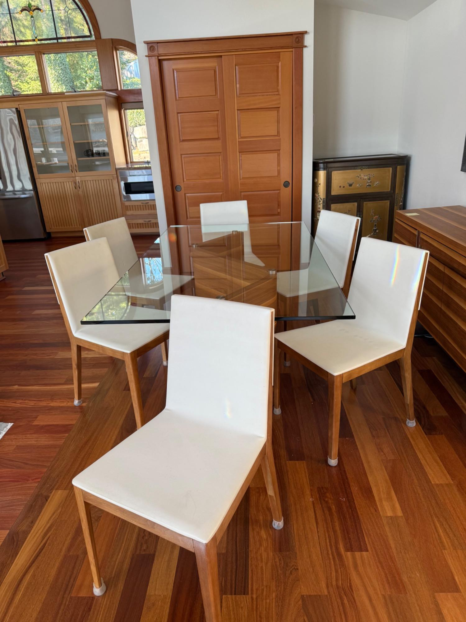 Lot # 1 - 6 Elegant Adeline Dining Chairs & Dakota Dining Glass/Walnut Table Set