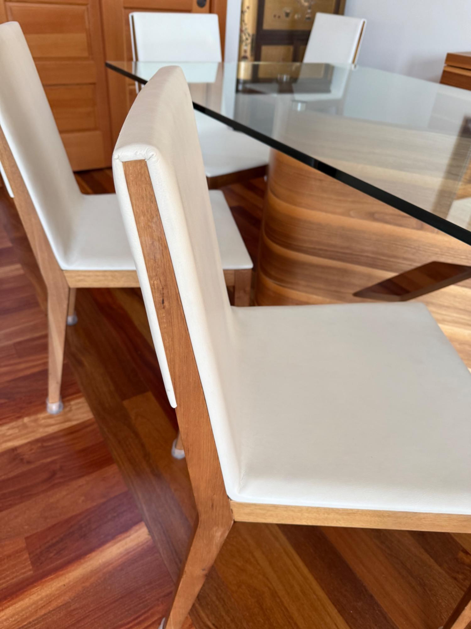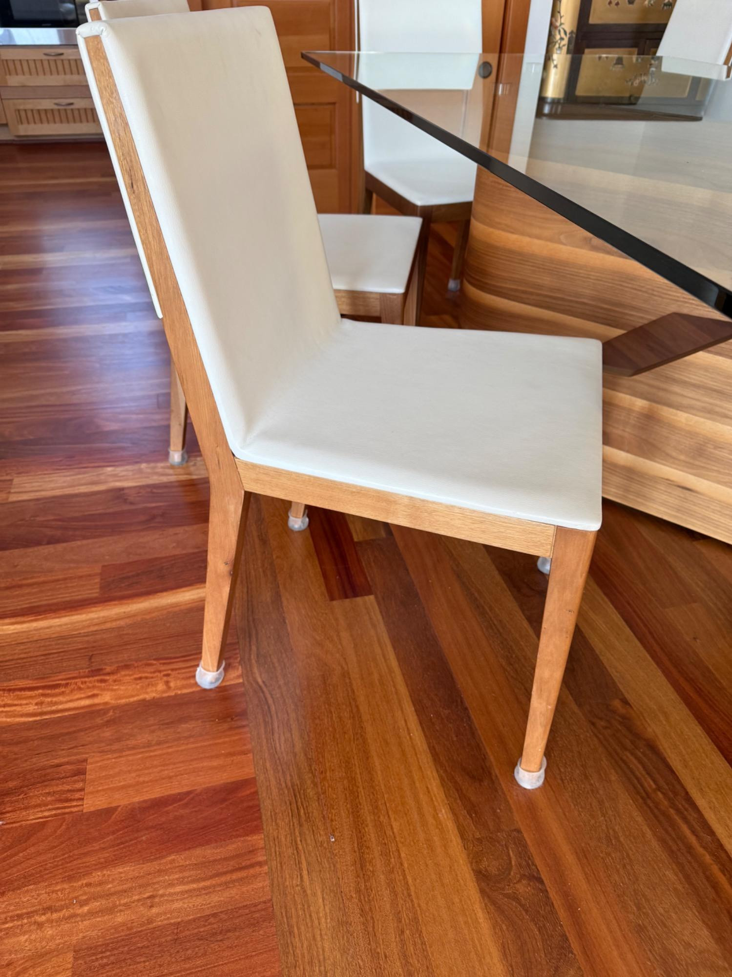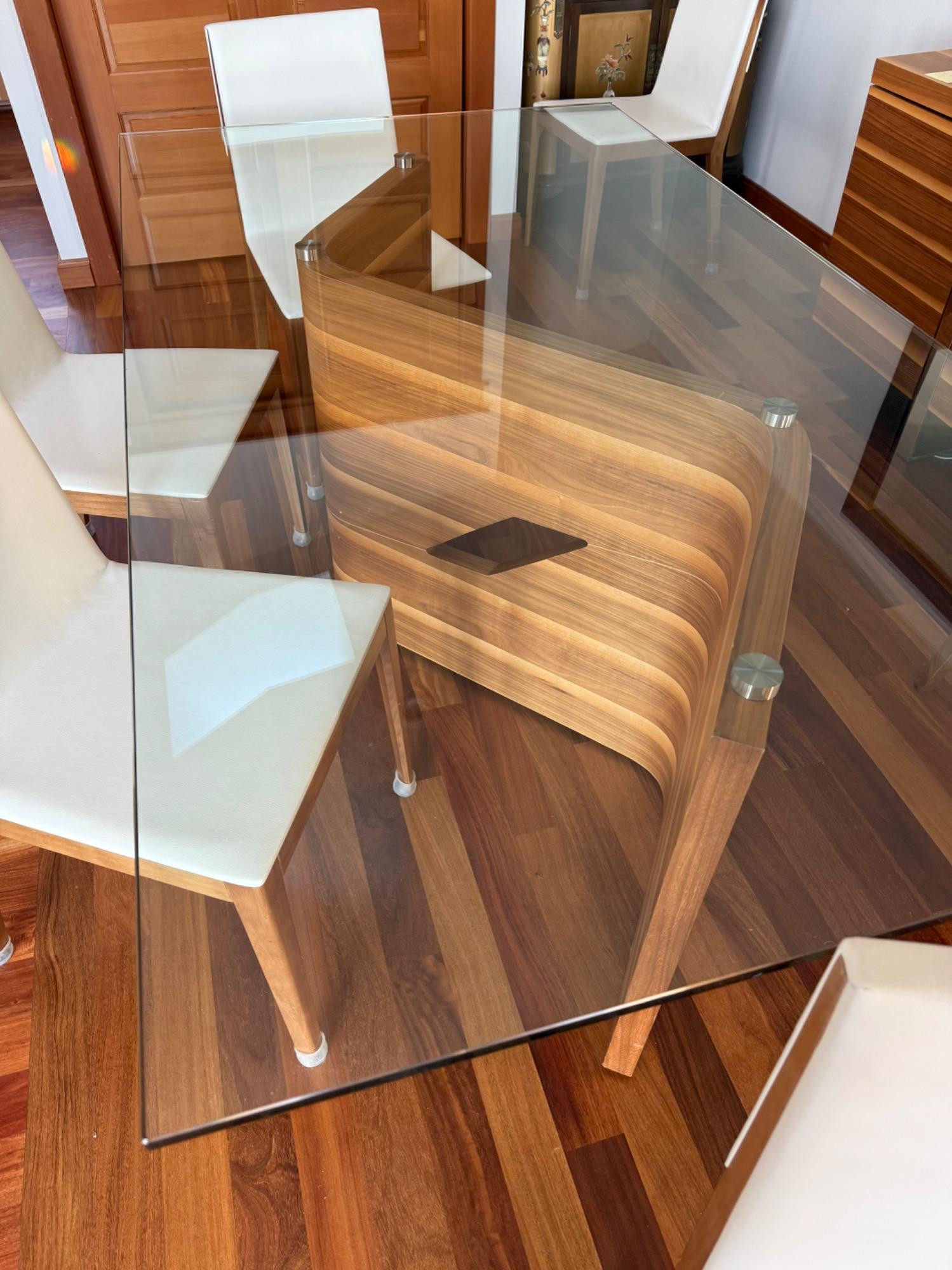 Lot # 1 - 6 Elegant Adeline Dining Chairs & Dakota Dining Glass/Walnut Table Set