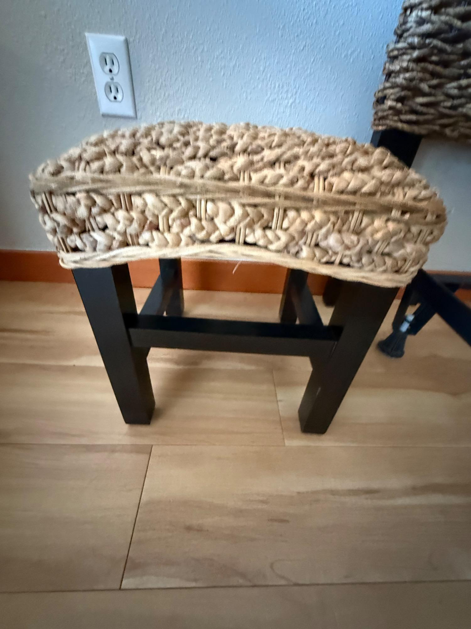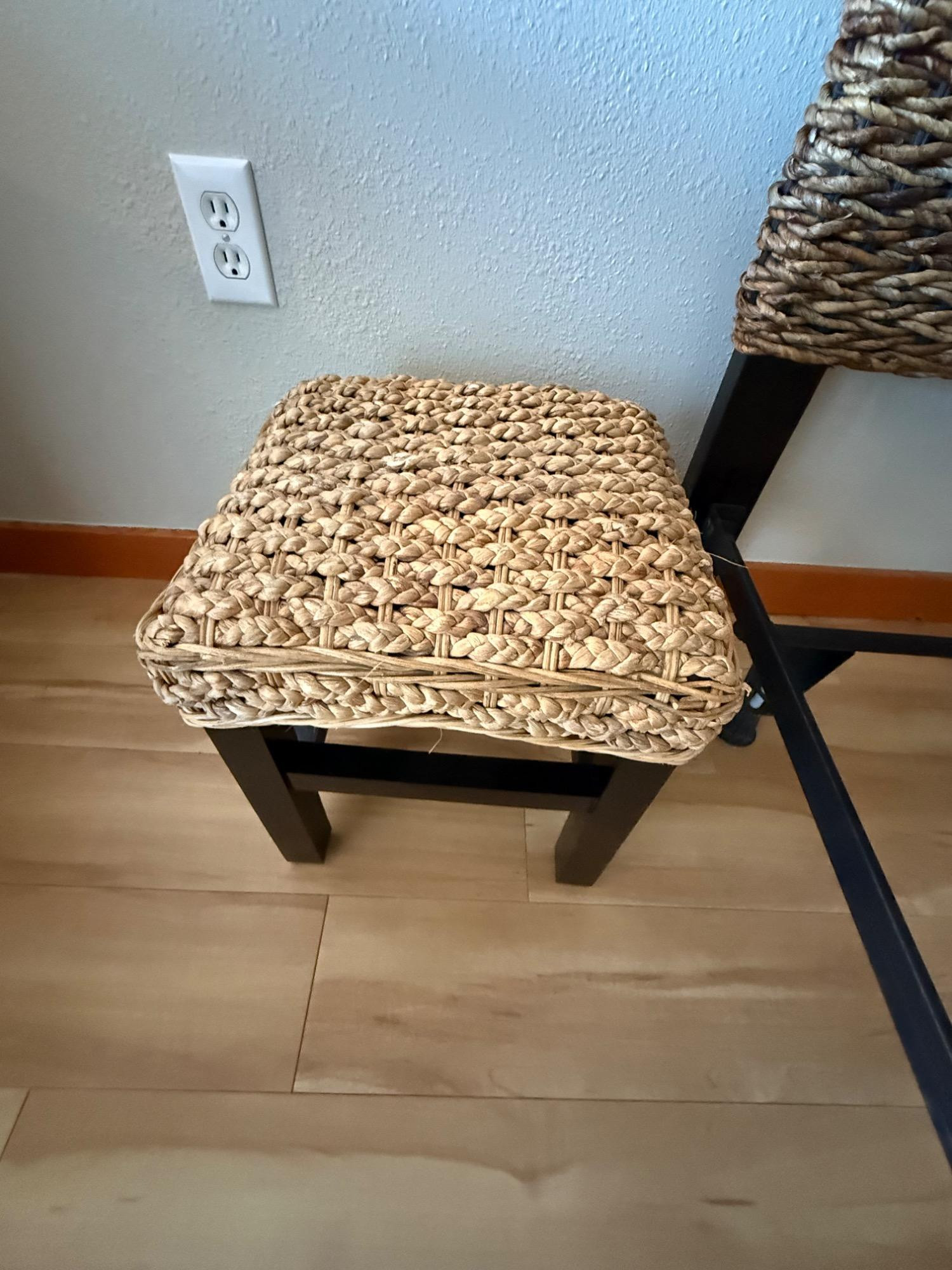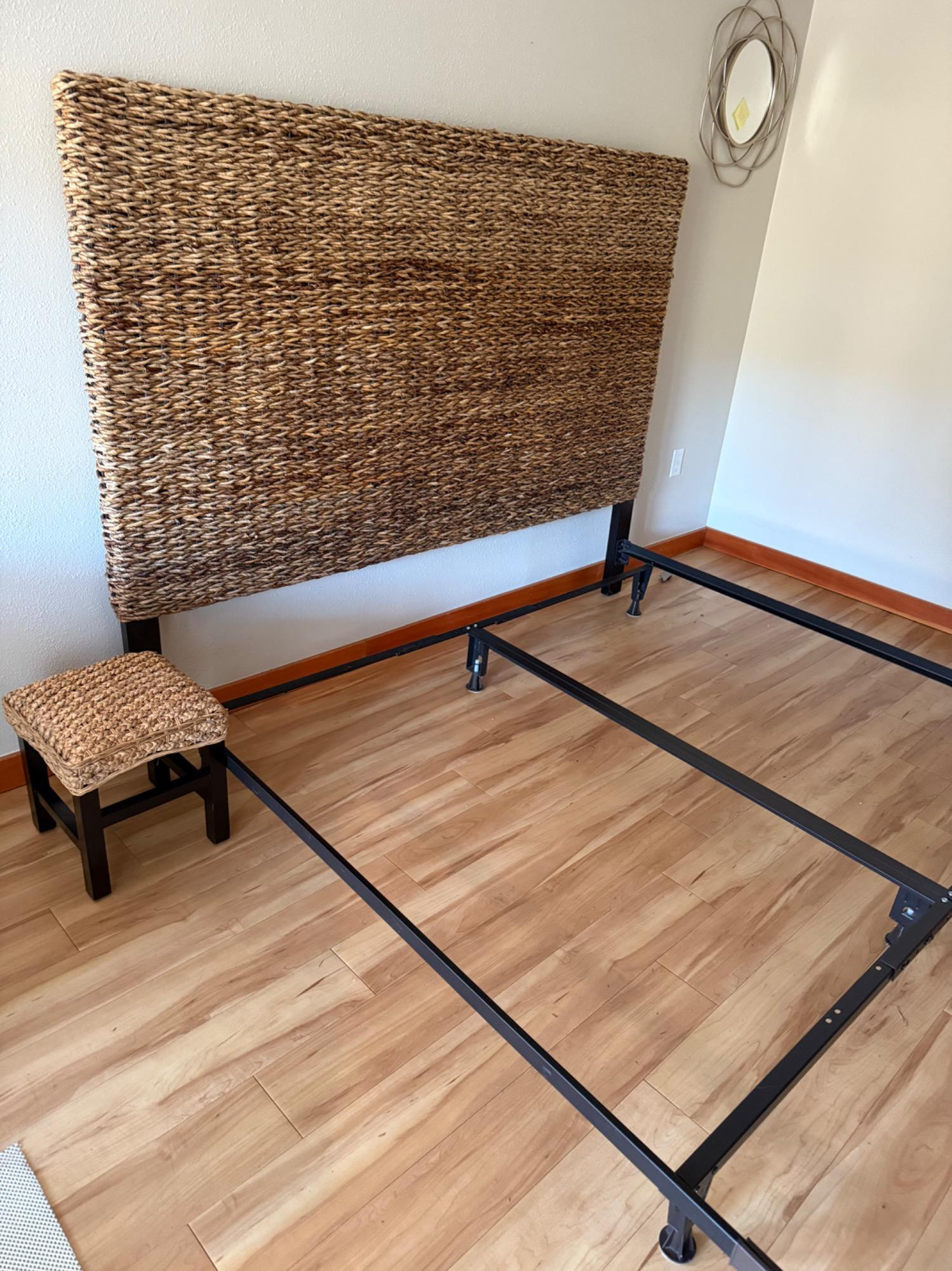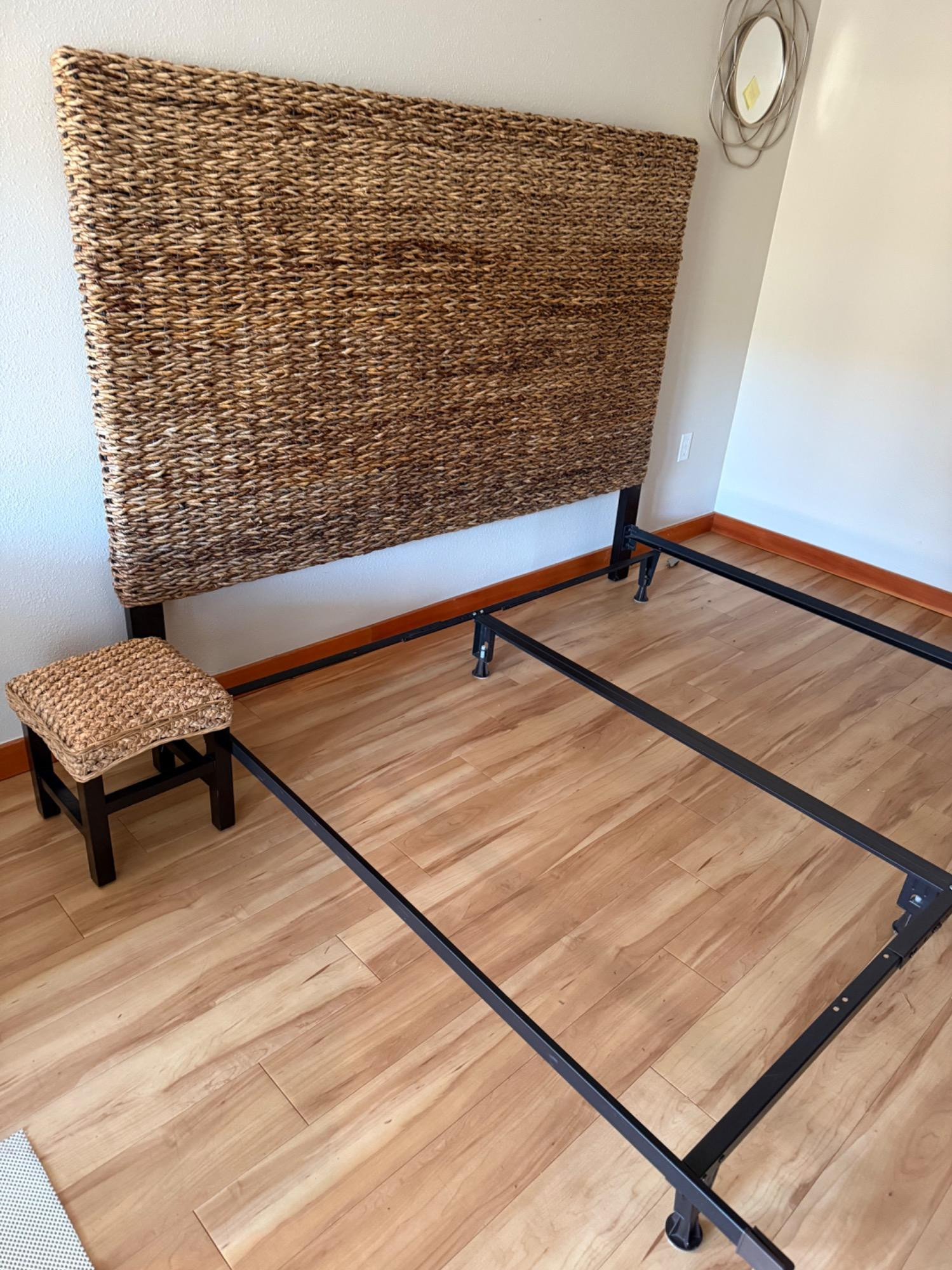 Wicker Headboard (King) & Matching Stool. This beautiful wicker set includes a large headboard and a matching stool, perfect for adding a touch of natural elegance to your bedroom. Headboard Dimensions: 61 inches tall x 80 inches wide, ideal for queen or king-sized beds. Stool Dimensions: 15 inches tall x 14 inches wide and deep, versatile as a seating or accent piece. The intricate woven design and warm tones create a relaxed, coastal-inspired look, making this set both functional and stylish. Bidding on this lot is an agreement that: (1.) You will have 2 capable, able-bodied persons to lift and load at a minimum. (2.) You will bring a hand truck and/or any other tools needed to remove this item. If these steps are not followed your item will be forfeited and no refund given.