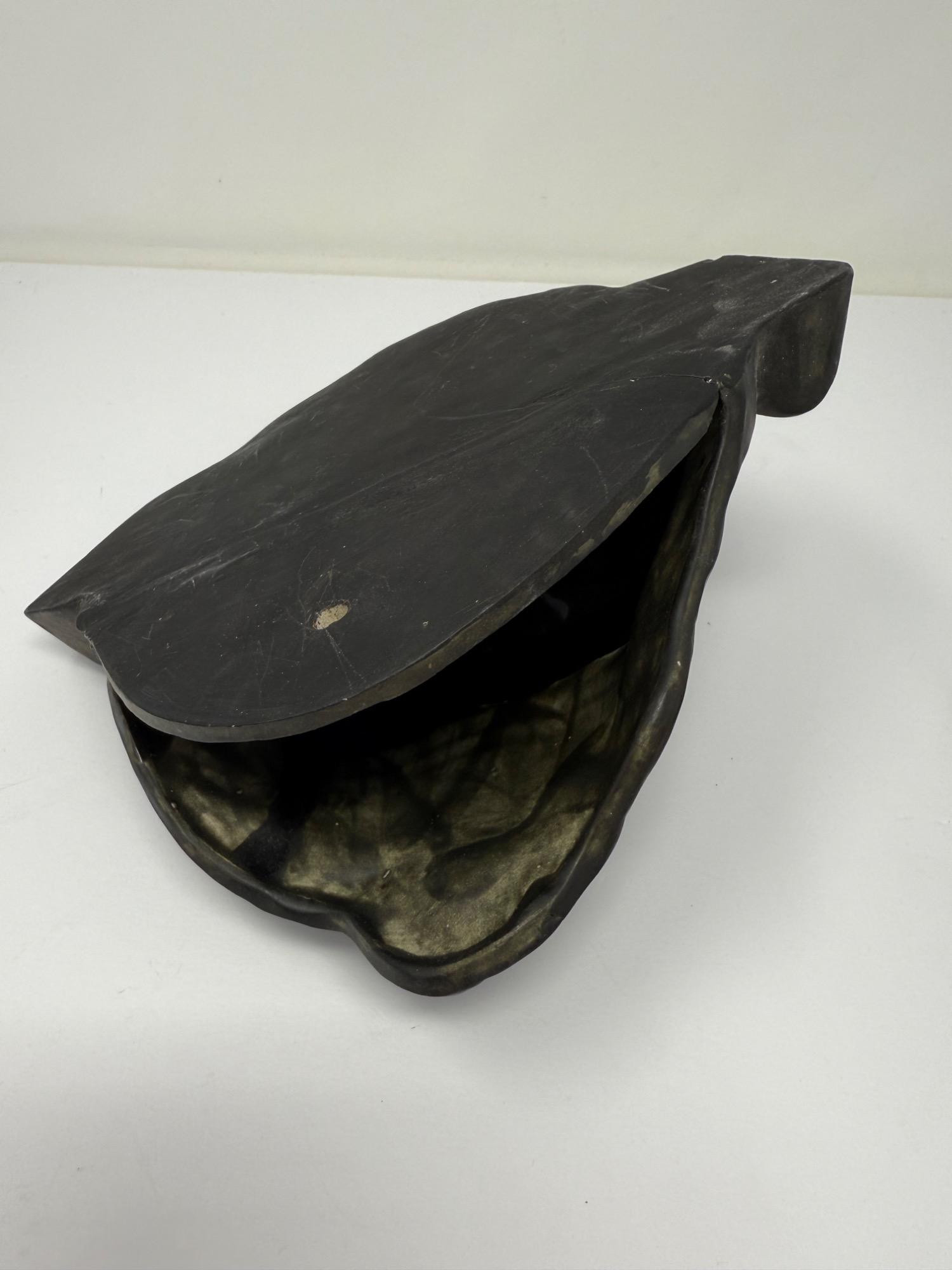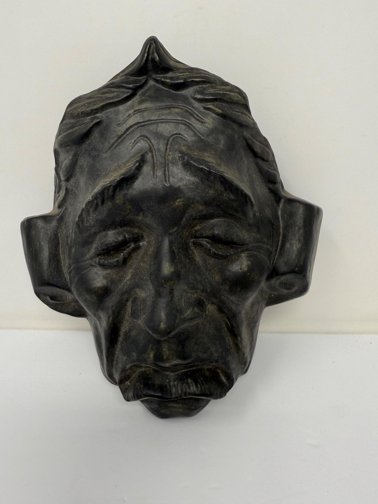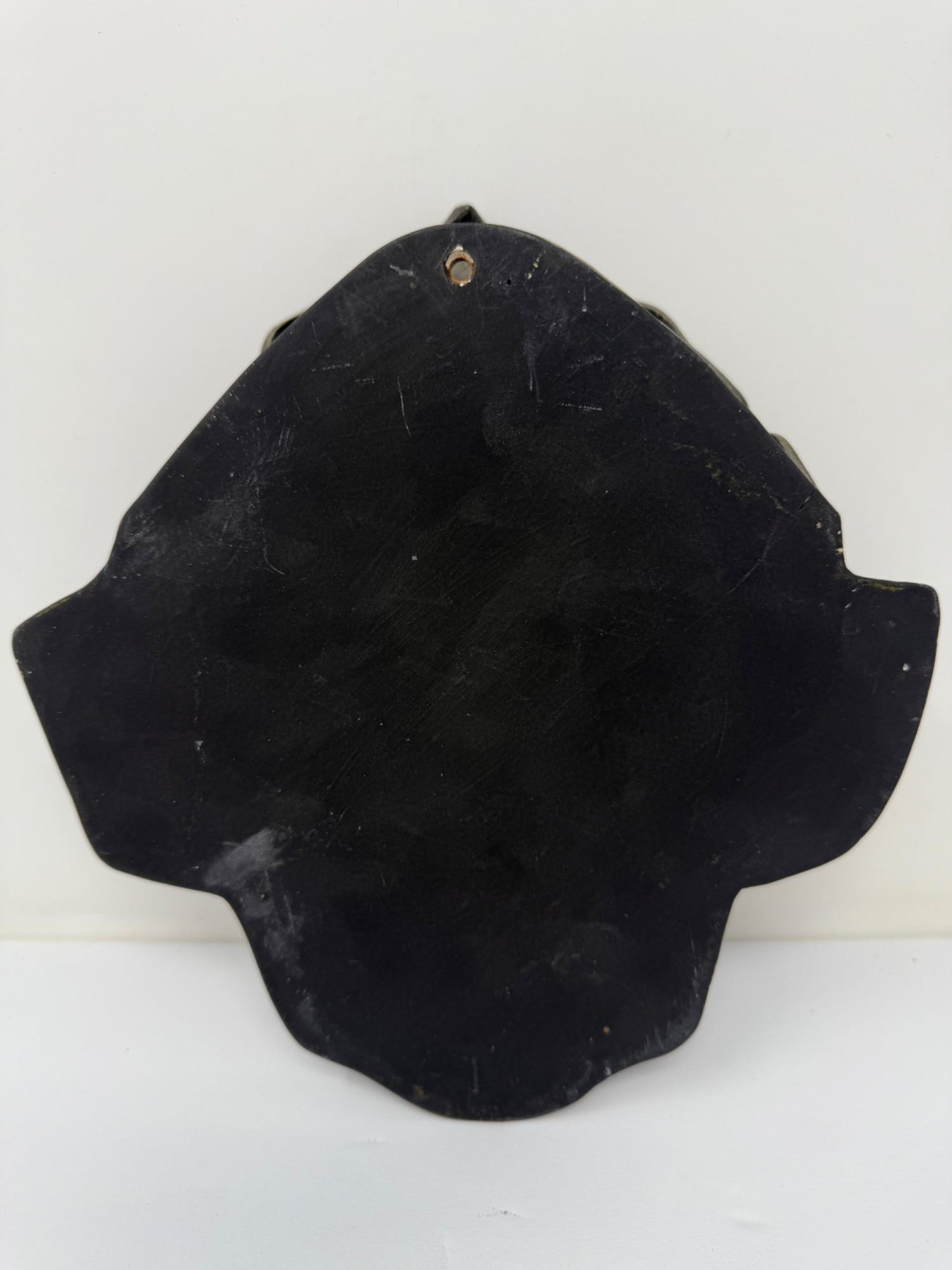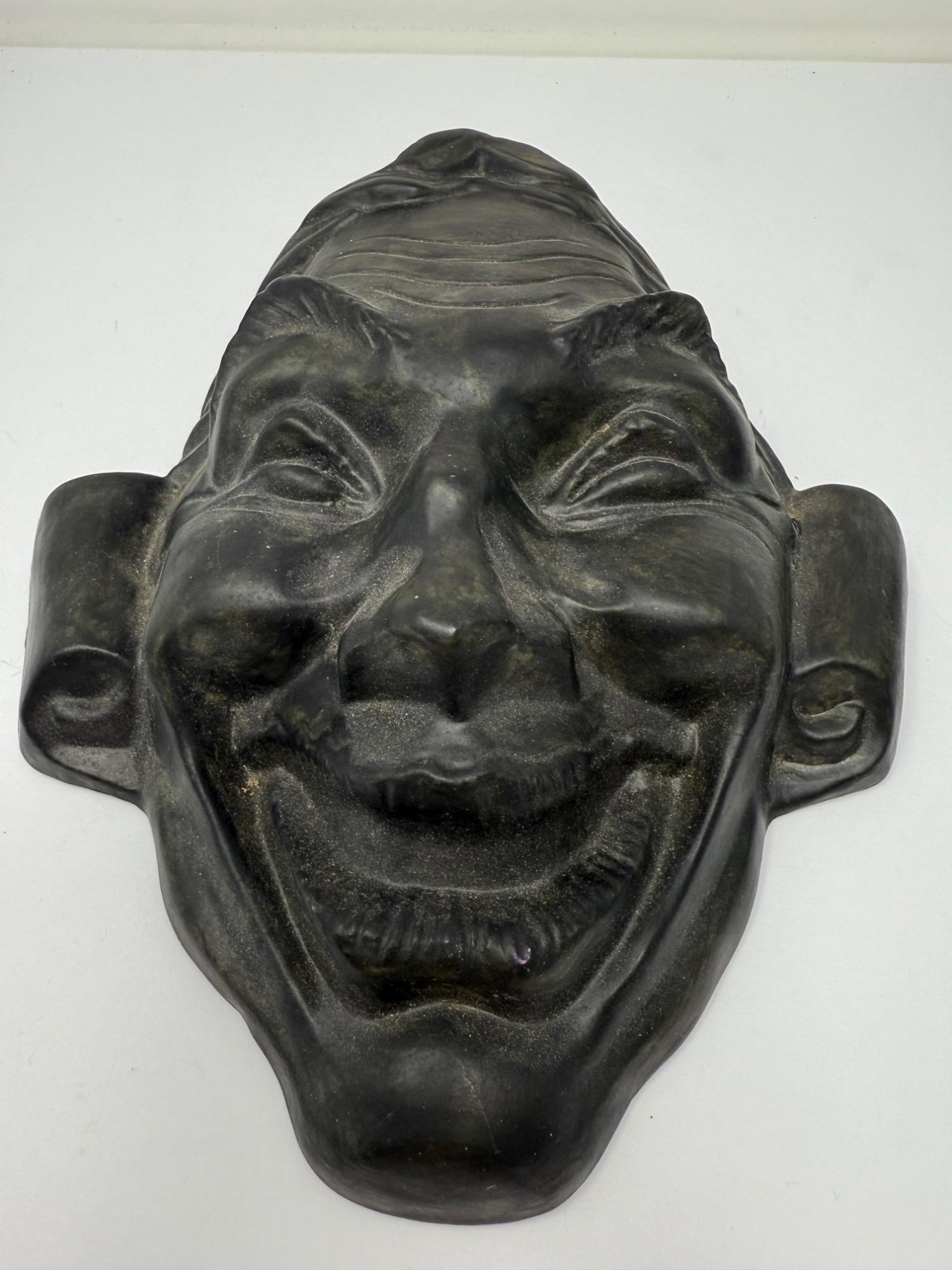 Set of Two Expressionist Face Flower Wall Pockets – 9.5" x 8" This unique set of two face wall hangings captures contrasting emotions with intricate craftsmanship. Each piece measures 9.5 inches tall by 8 inches wide and showcases striking details that evoke both laughter and sorrow. Made from a durable material with a rich, dark finish, these artistic wall hangings are perfect for adding character and drama to any space. Ideal for collectors or those looking for statement pieces to enhance their décor.