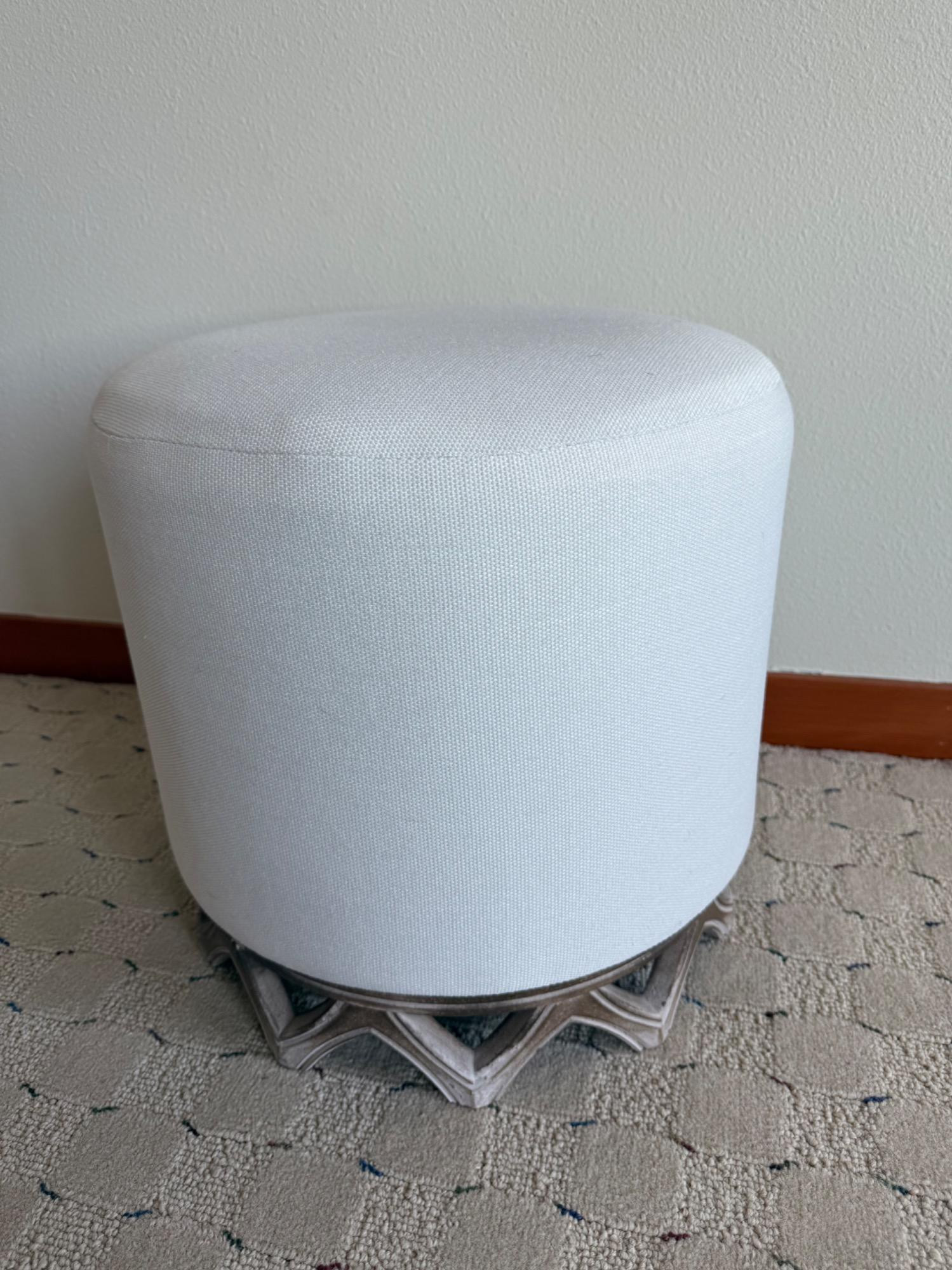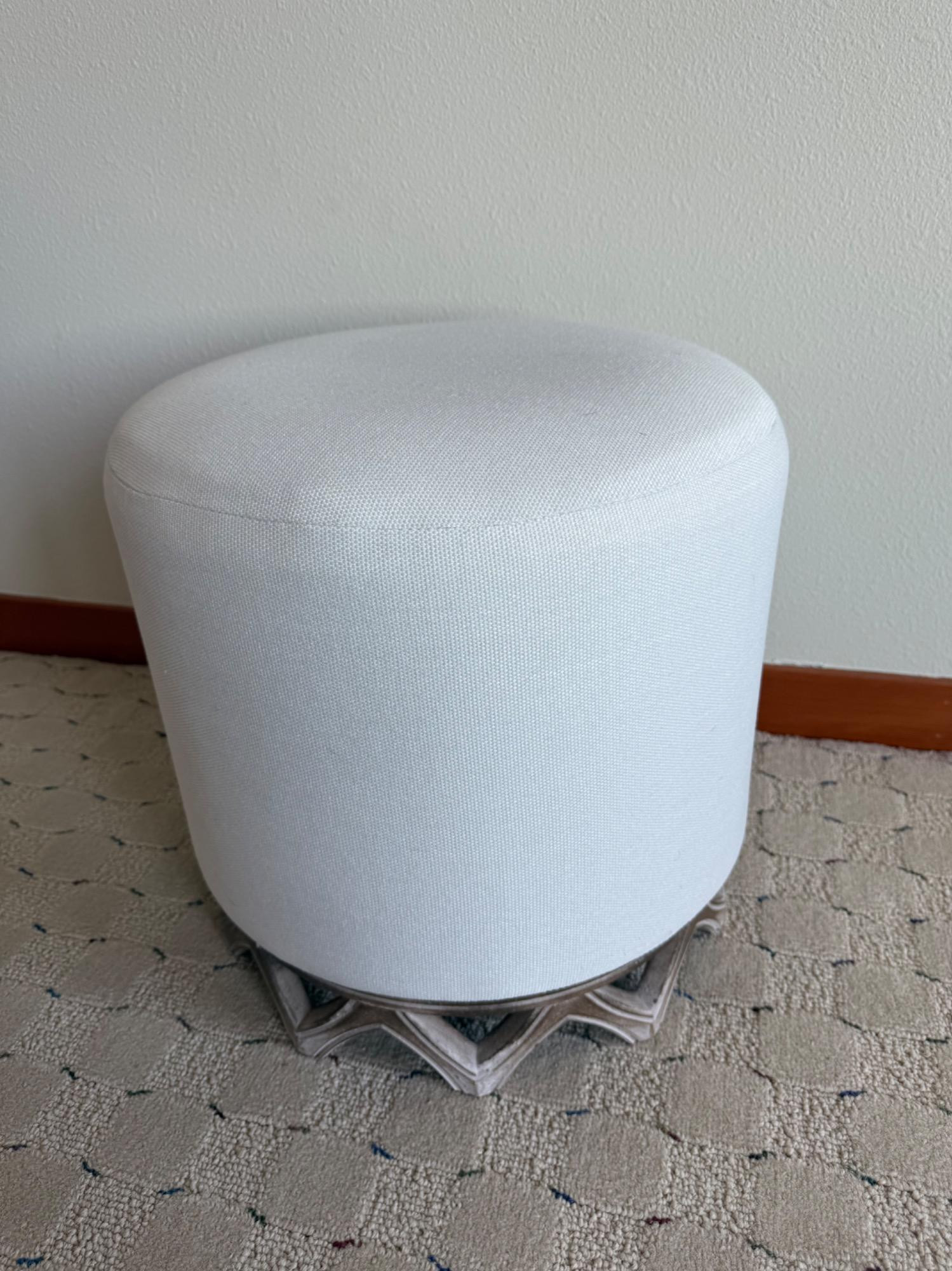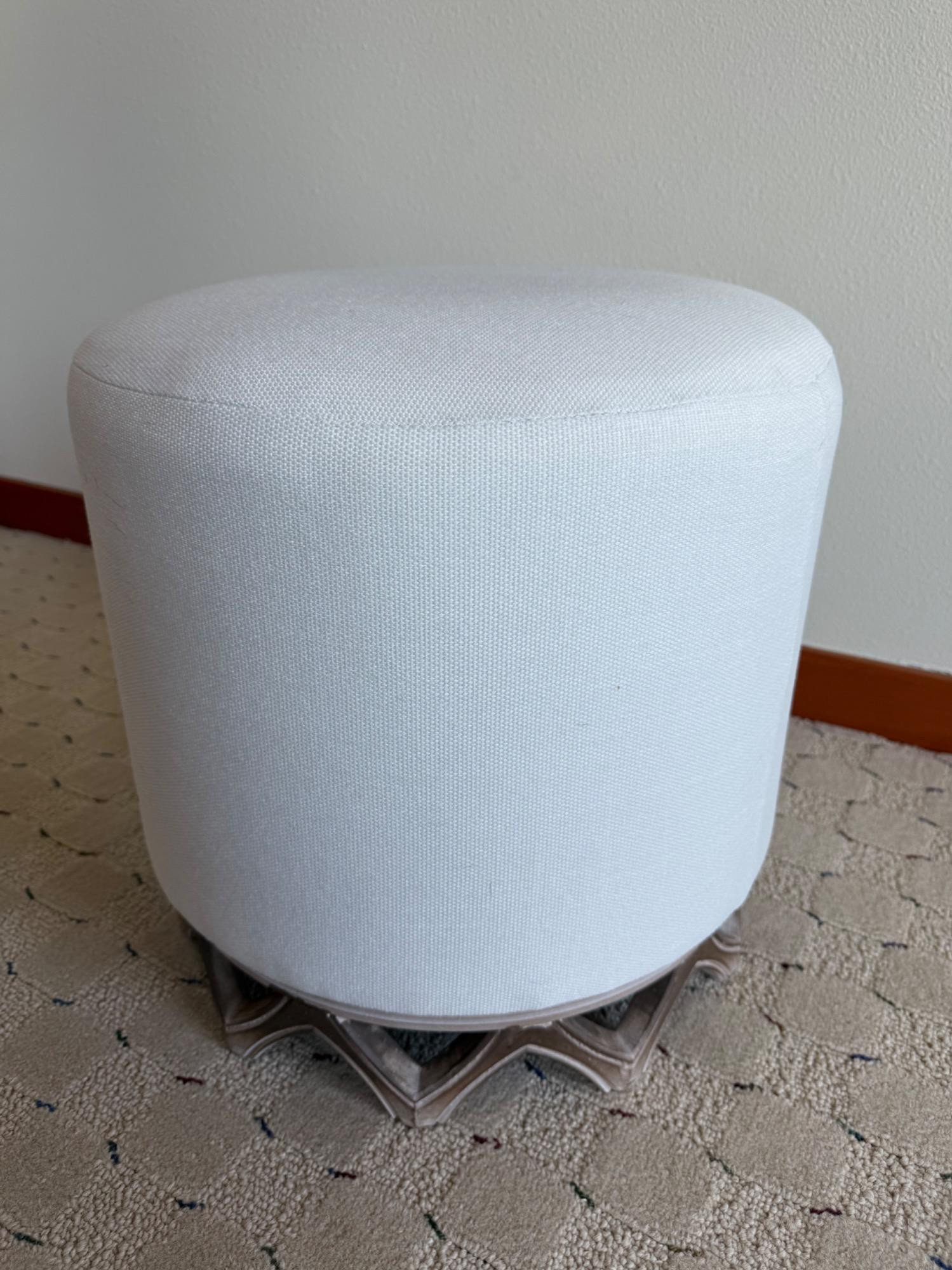This modern upholstered round stool features a sleek, neutral fabric that complements any décor style. Measuring 17 inches tall and 17 inches in diameter, it’s the perfect size for use as extra seating, a footrest, or an accent piece. The stool is supported by a unique decorative base with intricate detailing, adding an elegant touch to its minimalist design. Functional and stylish, this piece is a versatile addition to your living room, bedroom, or office. Bidding on this lot is an agreement that: (1.) You will have 2 capable, able-bodied persons to lift and load at a minimum. (2.) You will bring a hand truck and/or any other tools needed to remove this item. If these steps are not followed your item will be forfeited and no refund given.