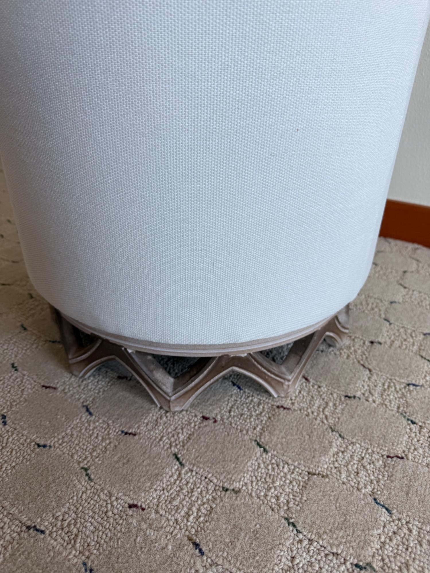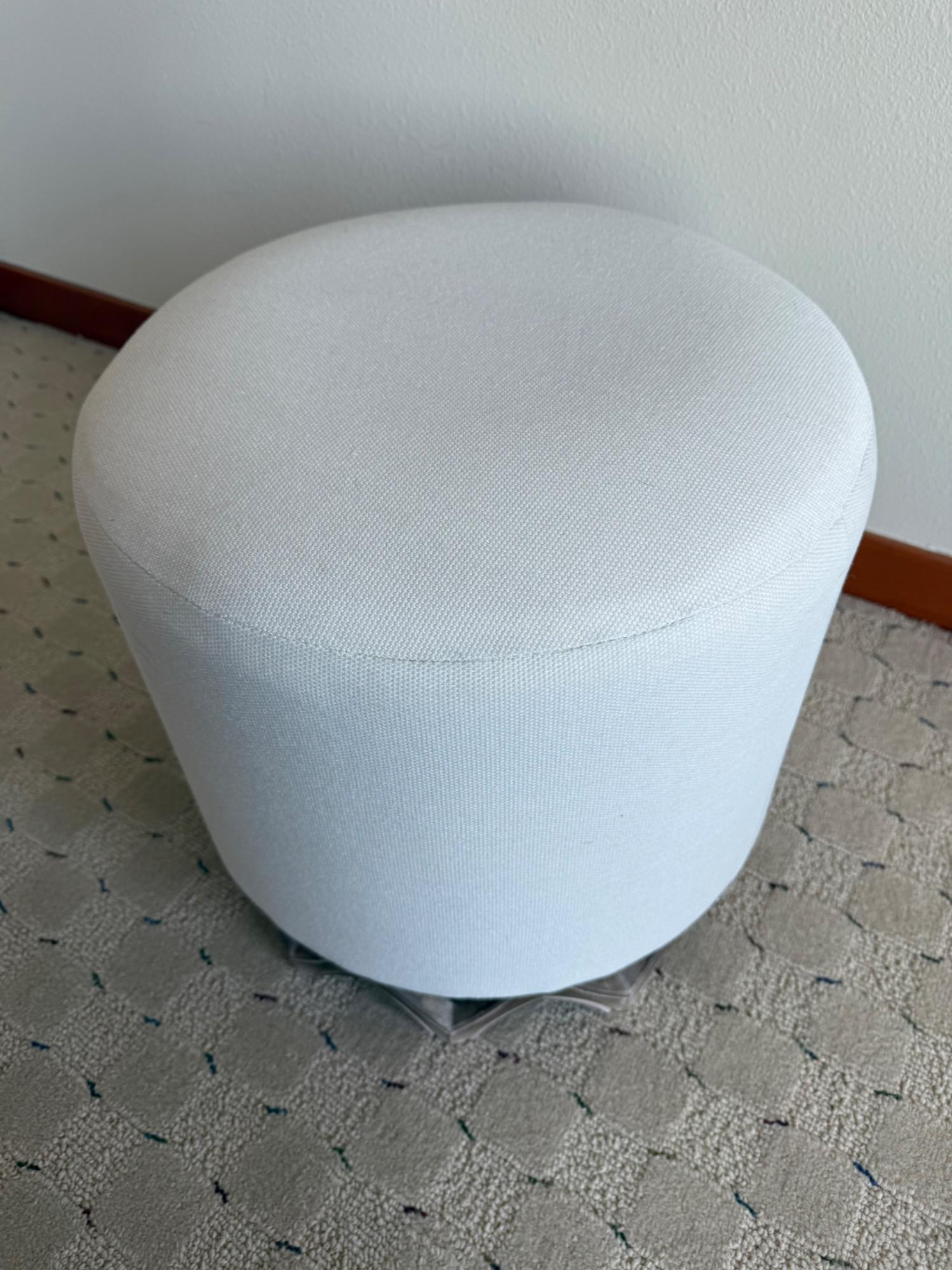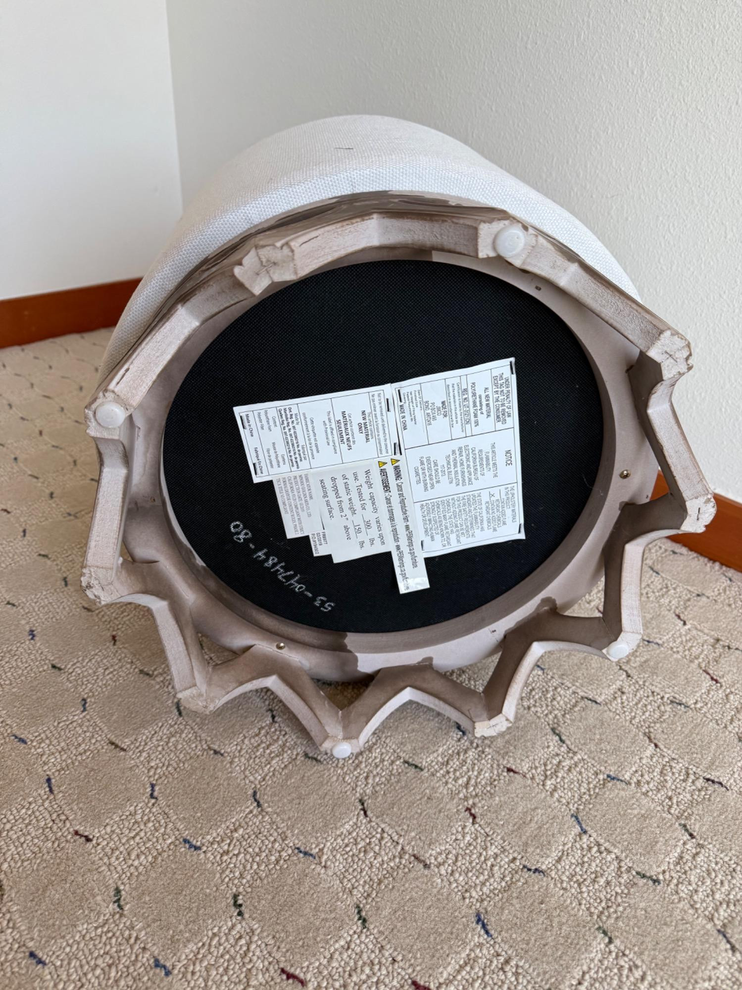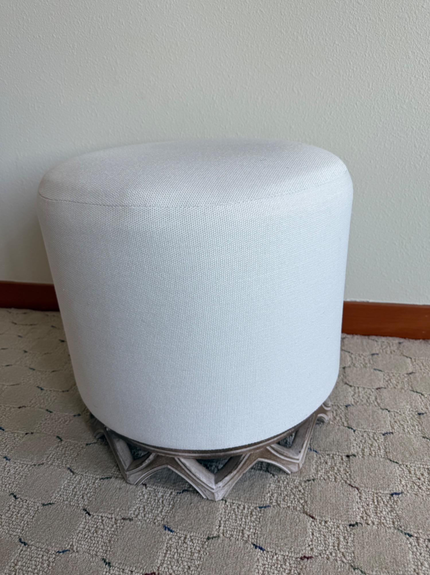 This modern upholstered round stool features a sleek, neutral fabric that complements any décor style. Measuring 17 inches tall and 17 inches in diameter, it’s the perfect size for use as extra seating, a footrest, or an accent piece. The stool is supported by a unique decorative base with intricate detailing, adding an elegant touch to its minimalist design. Functional and stylish, this piece is a versatile addition to your living room, bedroom, or office. Bidding on this lot is an agreement that: (1.) You will have 2 capable, able-bodied persons to lift and load at a minimum. (2.) You will bring a hand truck and/or any other tools needed to remove this item. If these steps are not followed your item will be forfeited and no refund given.