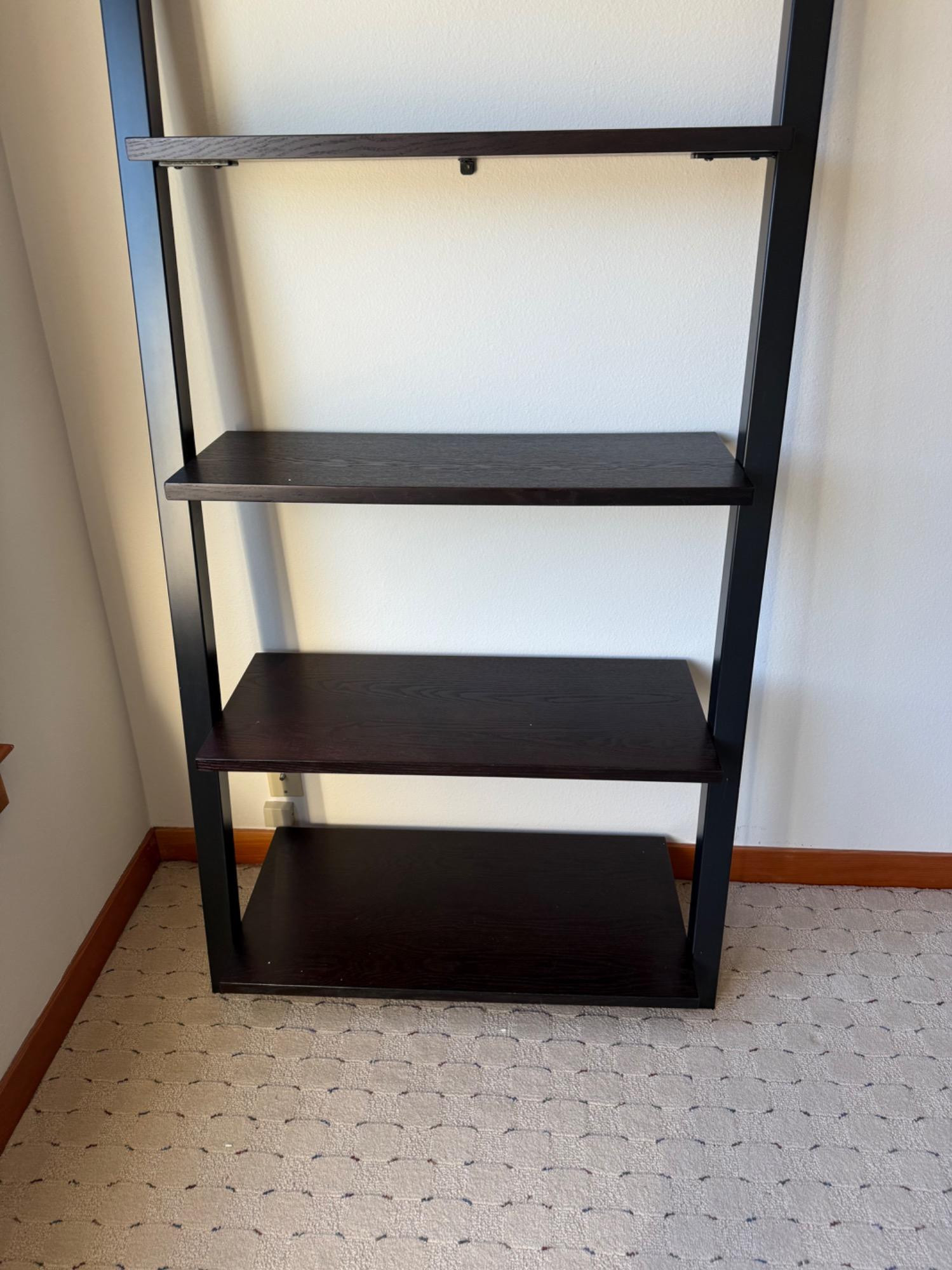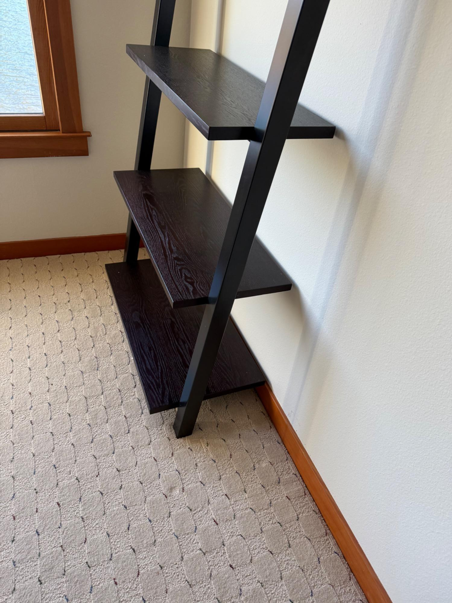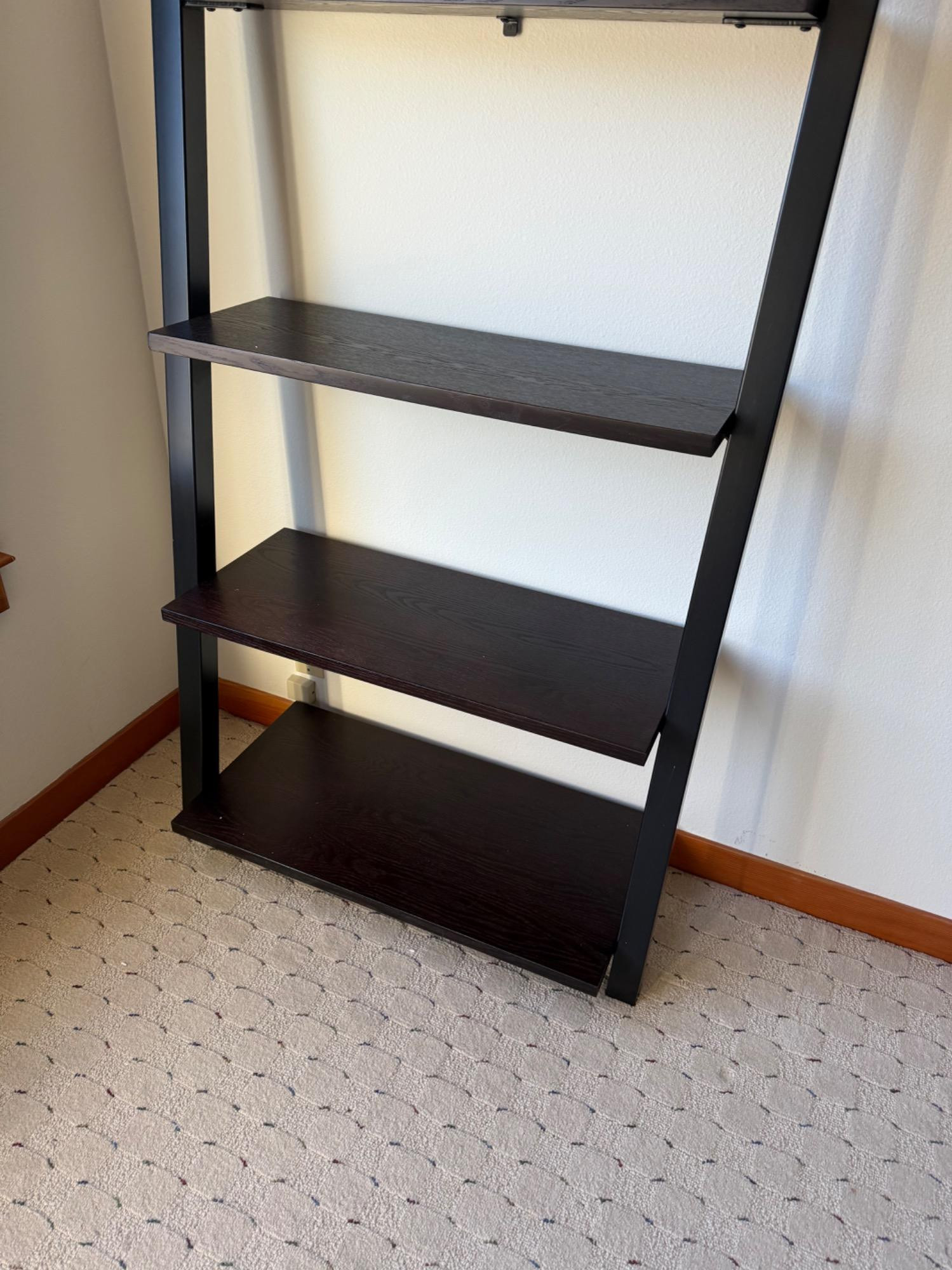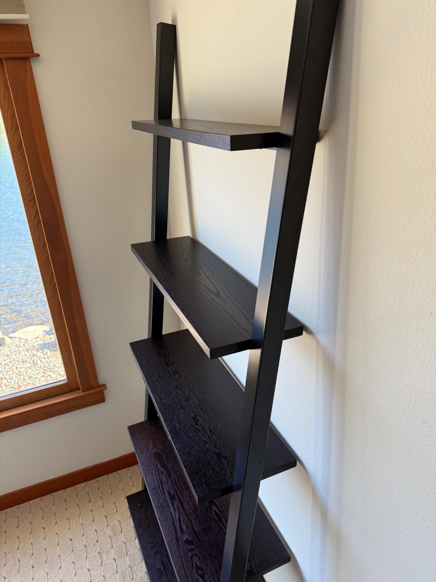 This sleek and modern ladder bookshelf offers a stylish and functional storage solution. Measuring 81 inches tall, 35.75 inches wide, and 16 inches deep, it provides ample space across multiple shelves for books, décor, or collectibles. The contemporary design features clean lines and a sturdy frame, making it a perfect addition to any living room, office, or bedroom. Its minimalist style easily complements a variety of interior designs while maximizing vertical space. A versatile and chic piece for any home! Bidding on this lot is an agreement that: (1.) You will have 2 capable, able-bodied persons to lift and load at a minimum. (2.) You will bring a hand truck and/or any other tools needed to remove this item. If these steps are not followed your item will be forfeited and no refund given.