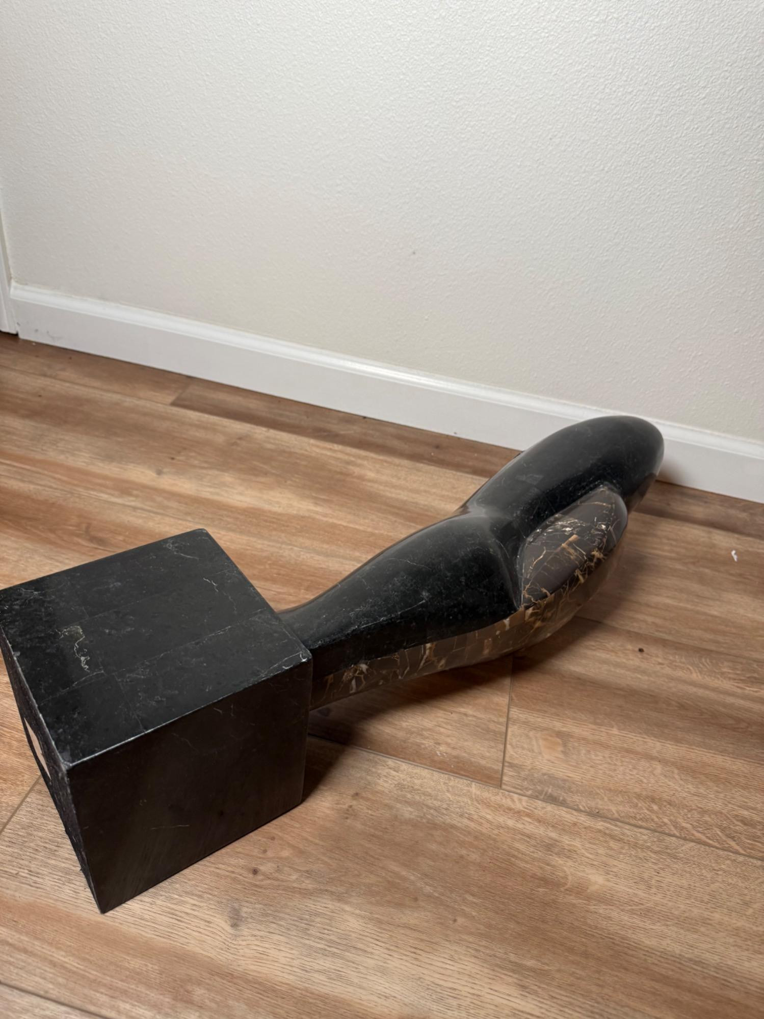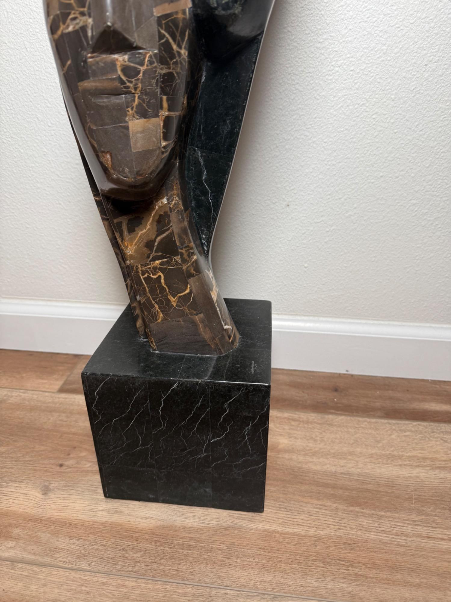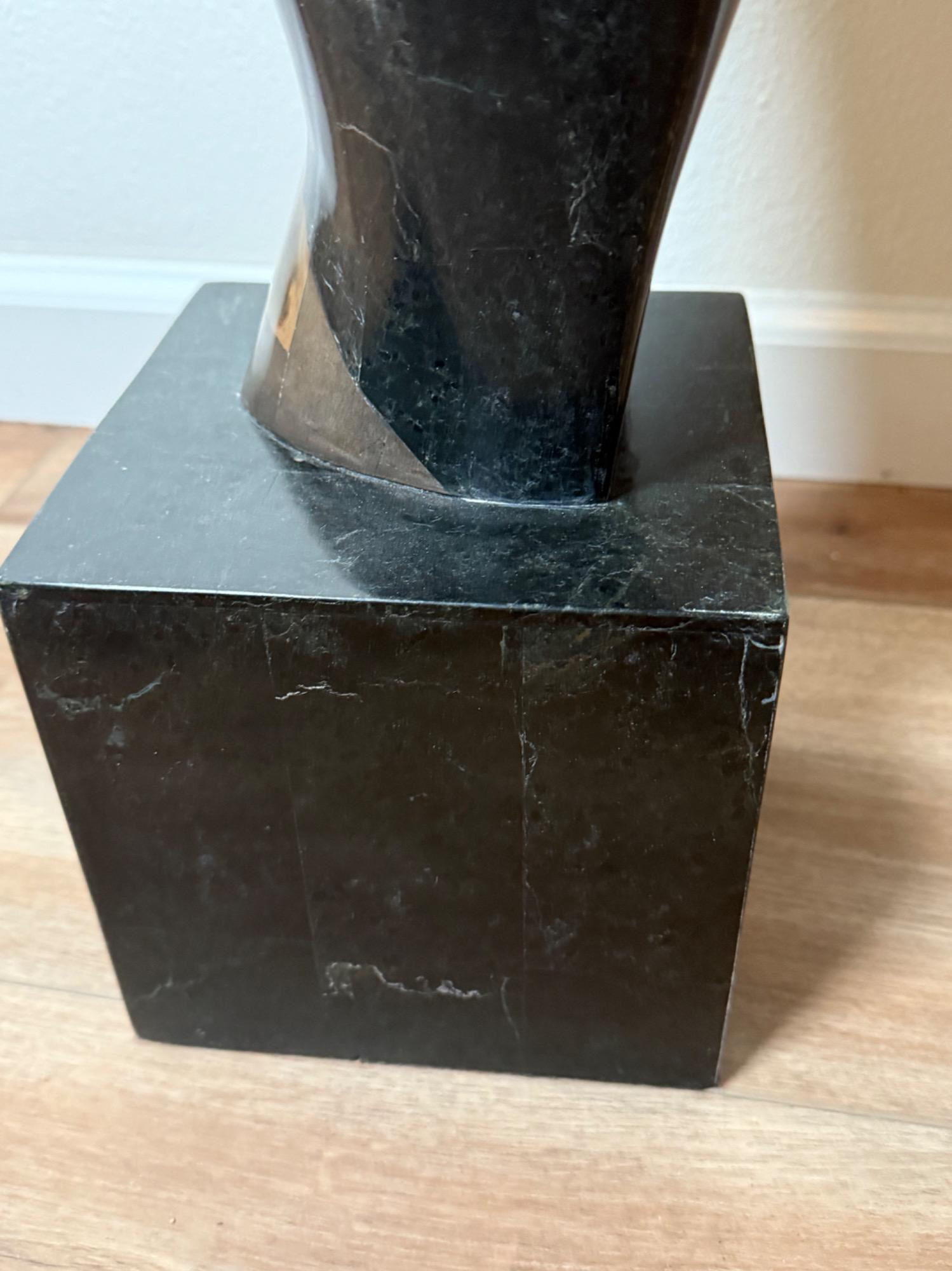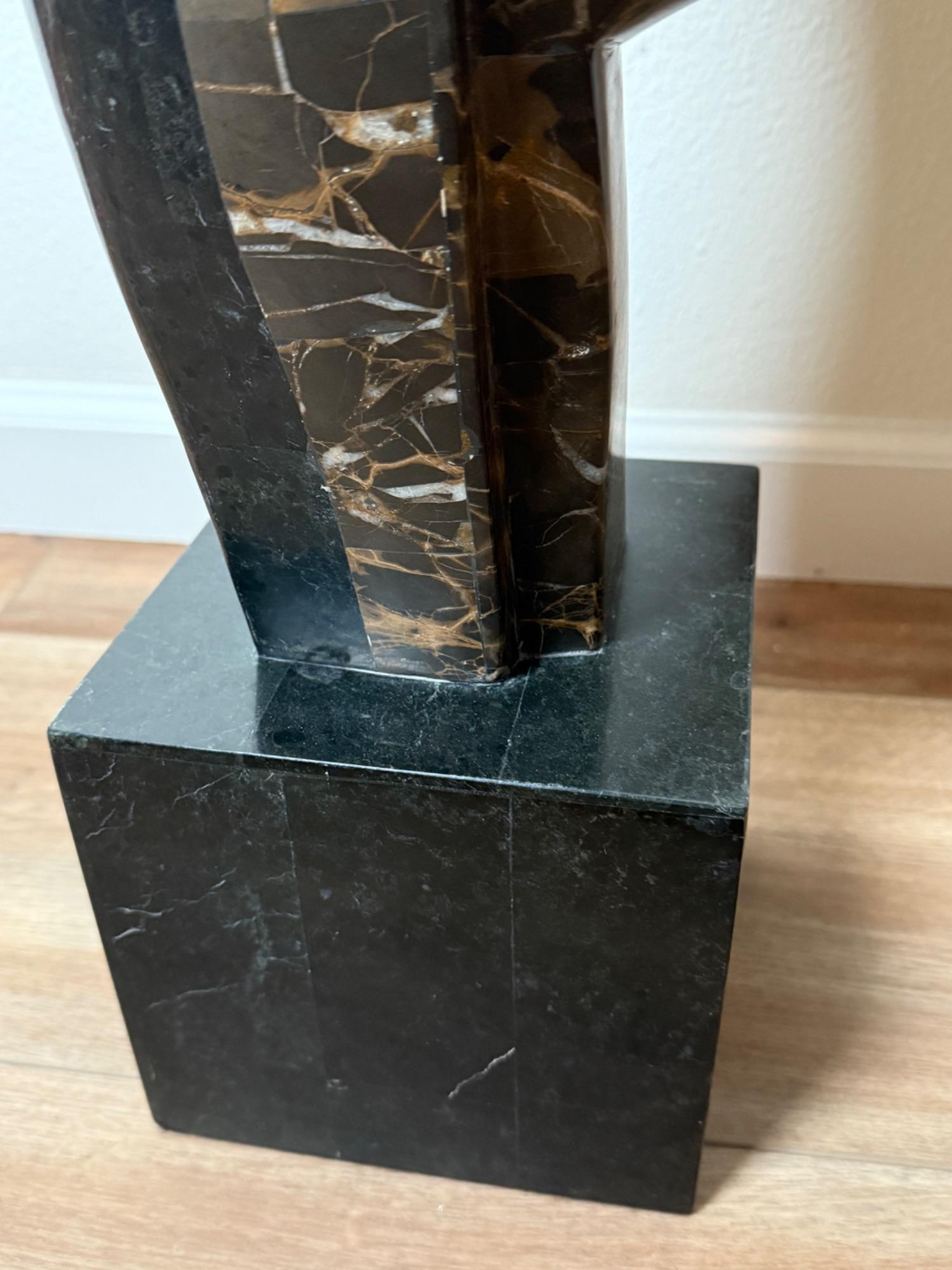 Stunning African-inspired abstract sculpture measuring 28” tall and 6” wide. Crafted from a blend of polished stone materials, this piece adds a touch of sophistication and cultural depth to any space. Perfect for art enthusiasts or collectors seeking a unique statement piece.