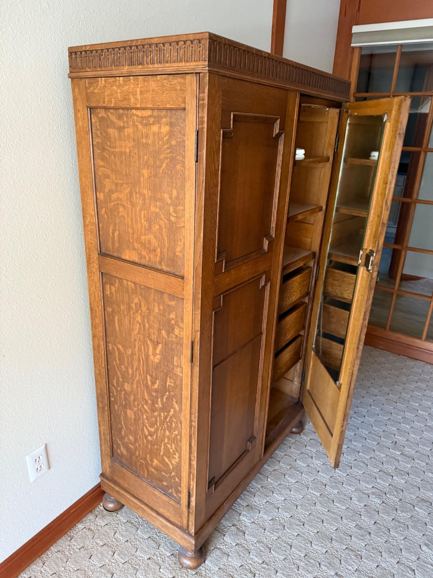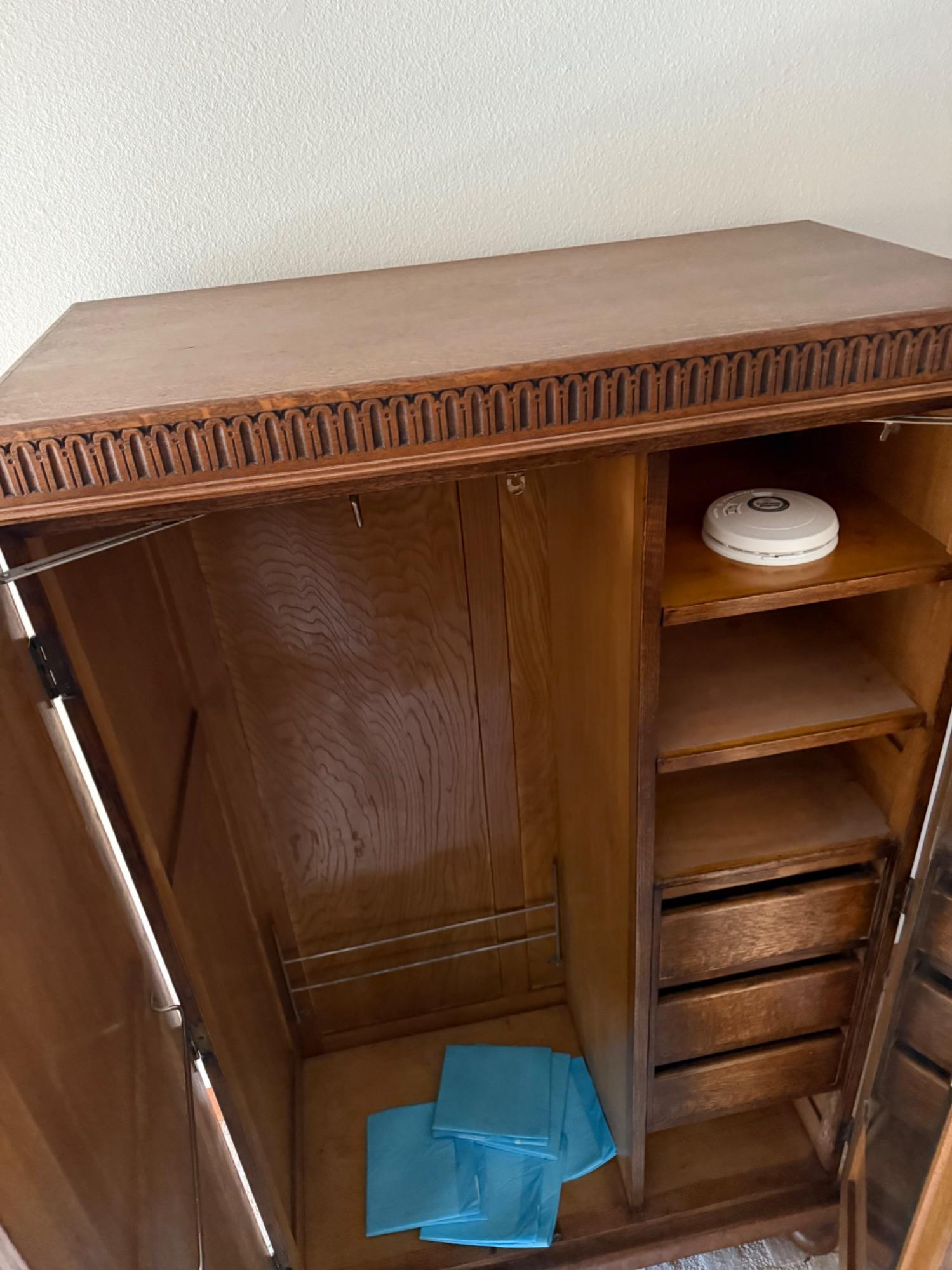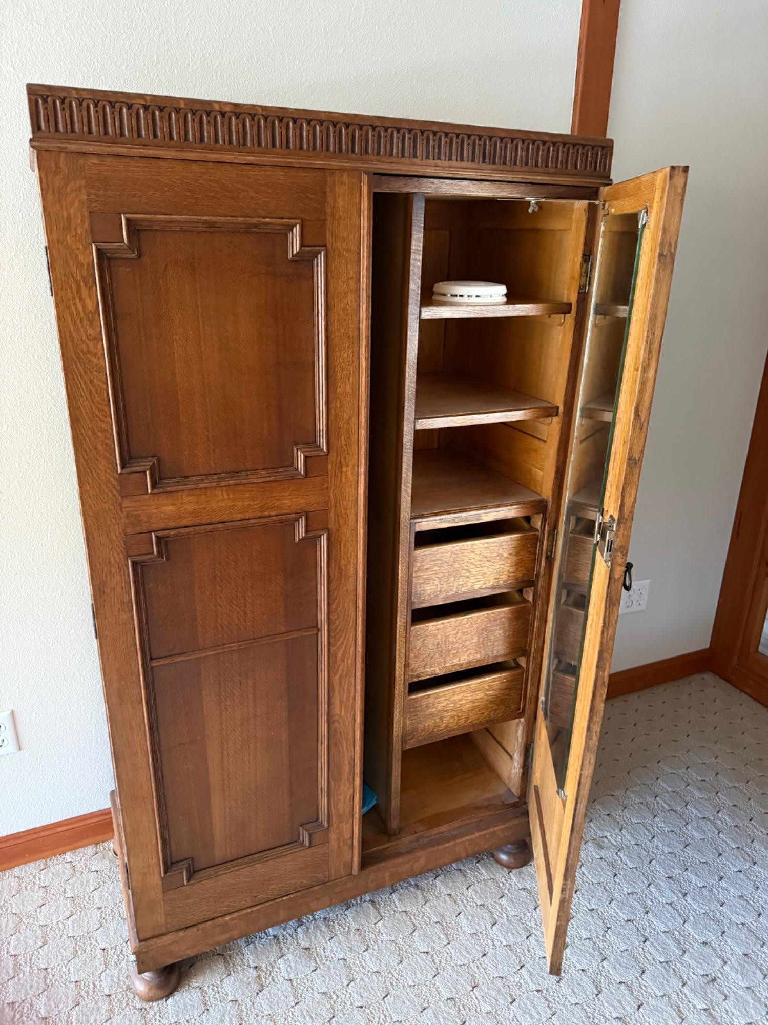 Lot # 33 - Antique Wooden Wardrobe Closet w/ Built-In Drawers