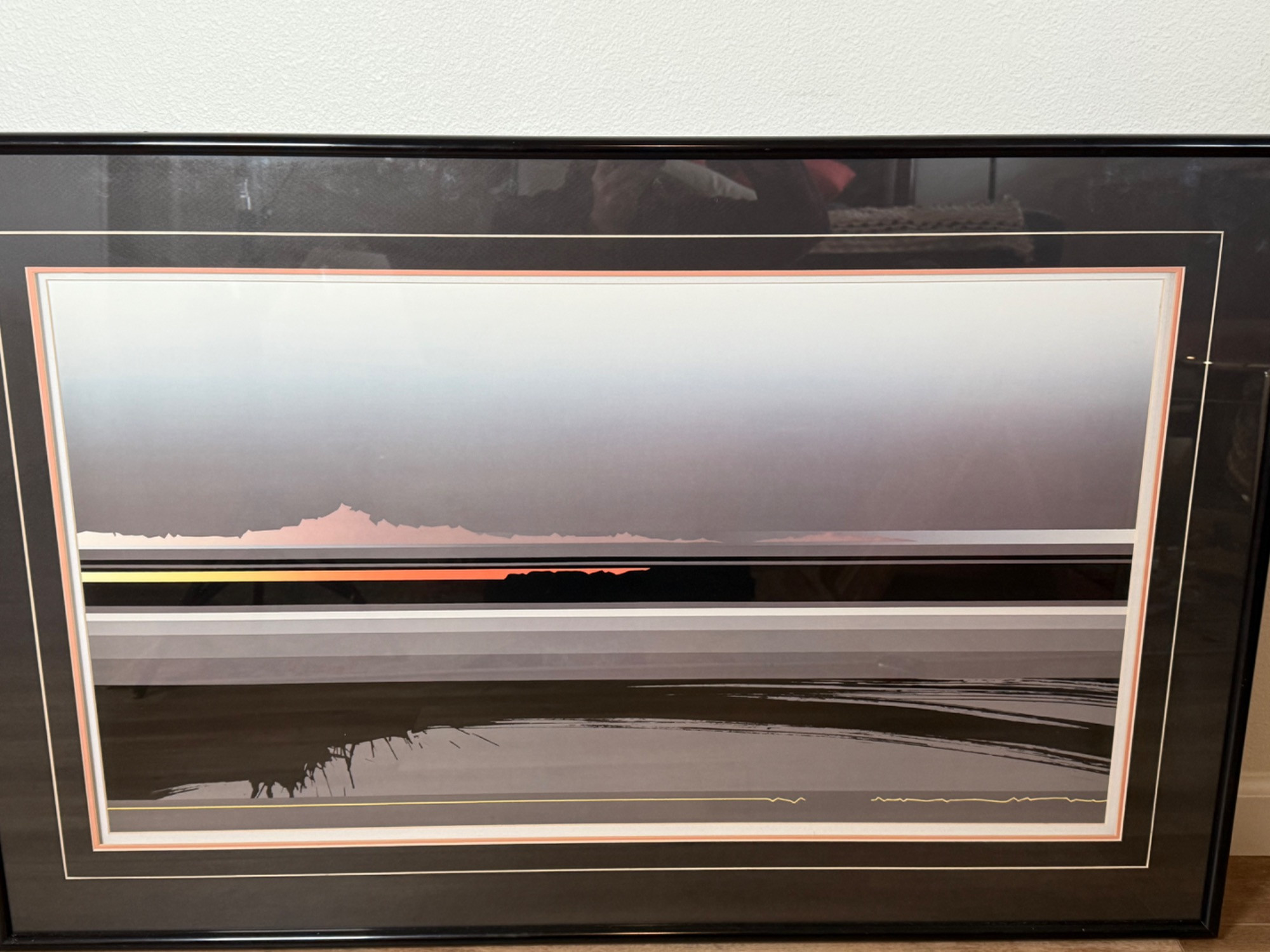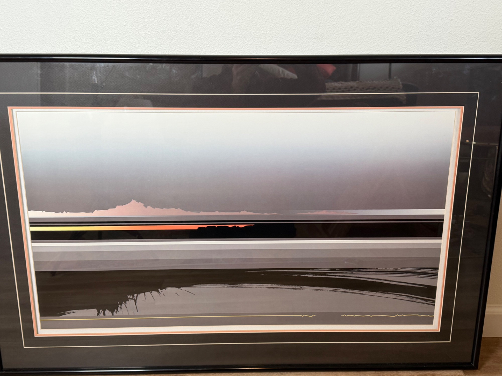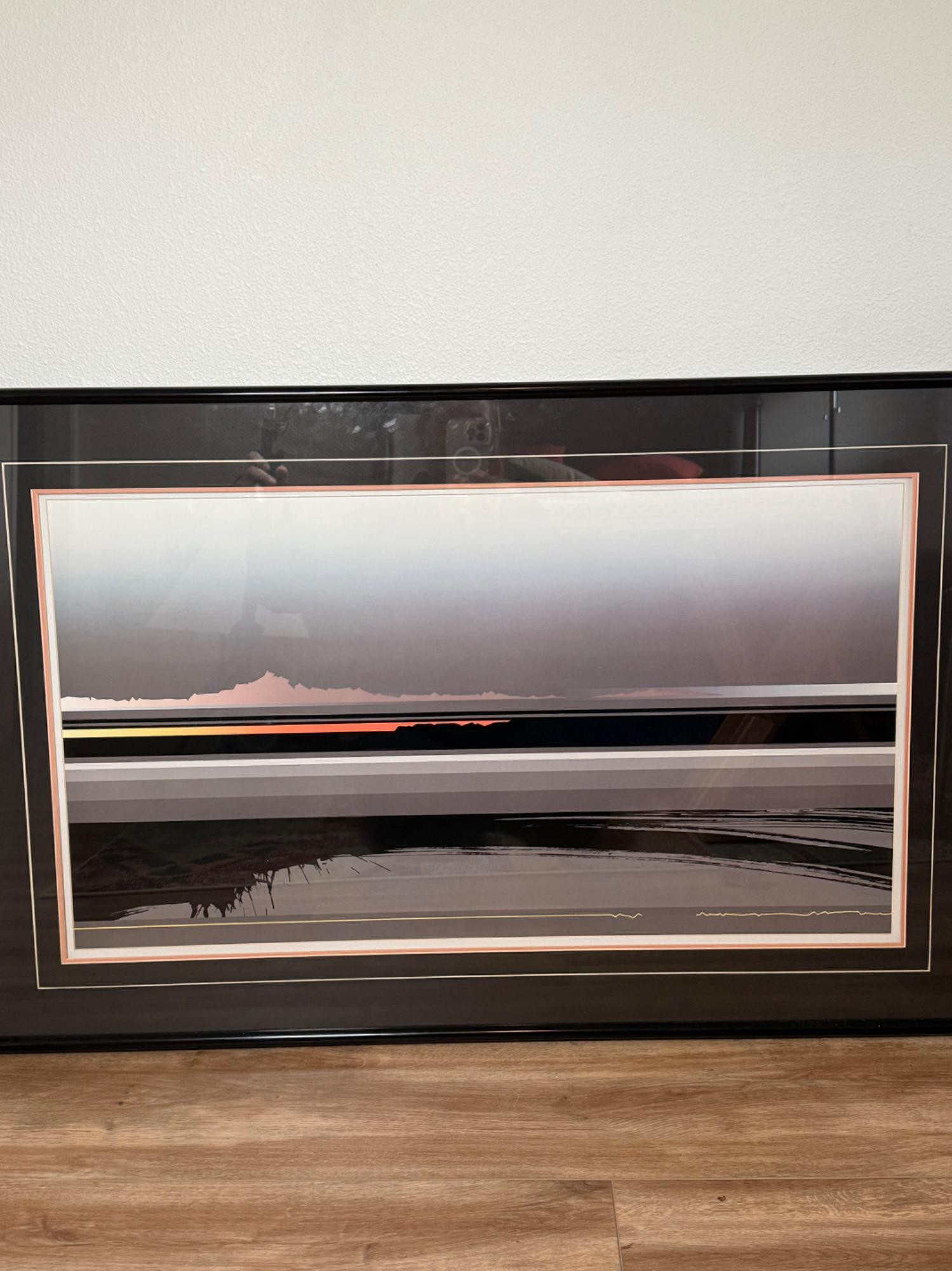 Tetsuro Sawada Silkscreen Print – "Morning Light Seascape" – MCM NO COA. Stunning silkscreen print titled "Morning Light Seascape" by renowned skyscape artist Tetsuro Sawada, measuring 40” wide by 26” tall. This captivating Mid-Century Modern piece features Sawada's signature minimalist style and atmospheric gradients, perfect for collectors or as a striking addition to any modern interior. All bids start at $5.00, we do our best to describe art but we are not licensed appraisers. The information given about this piece was provided by the owner.