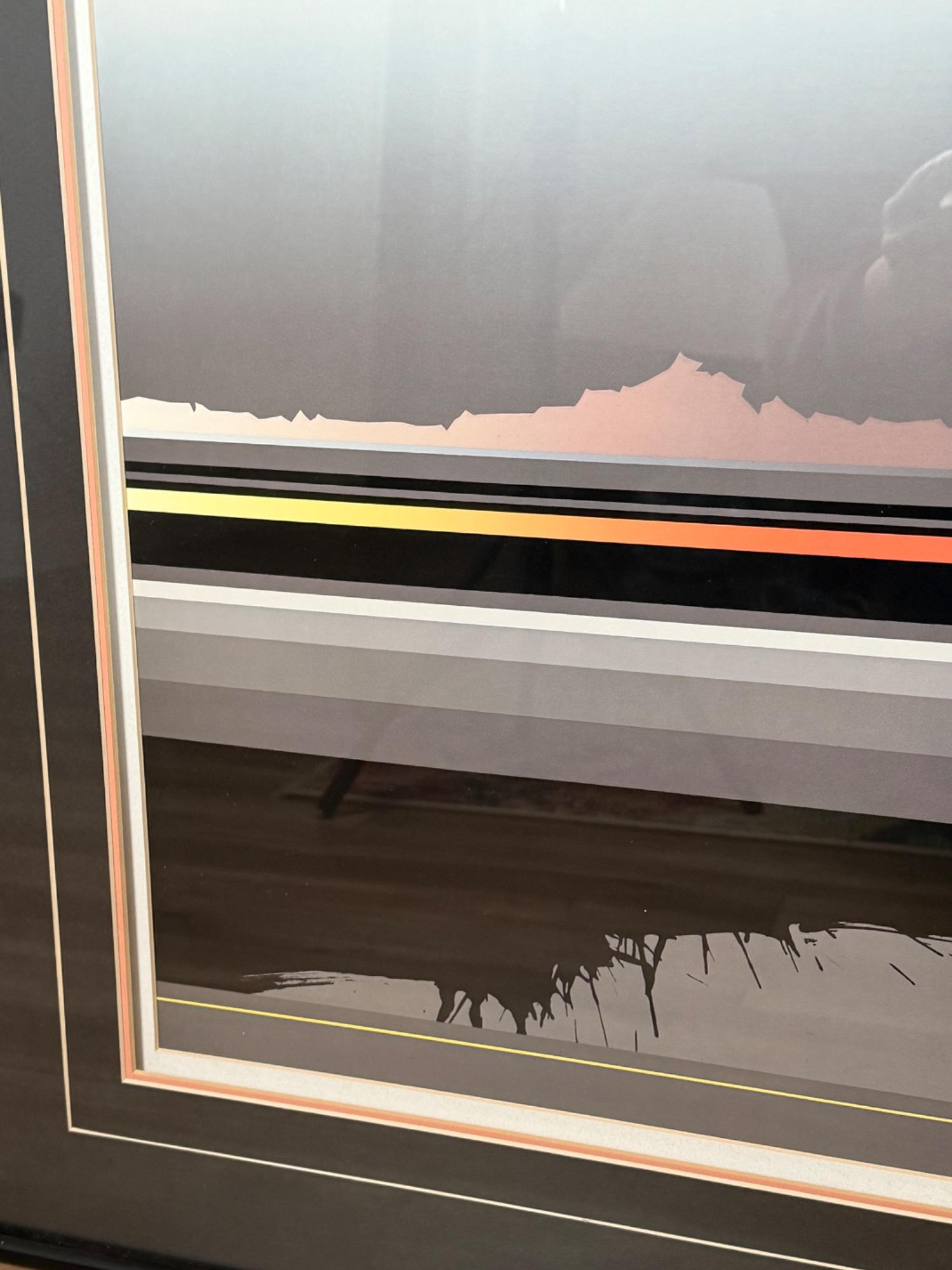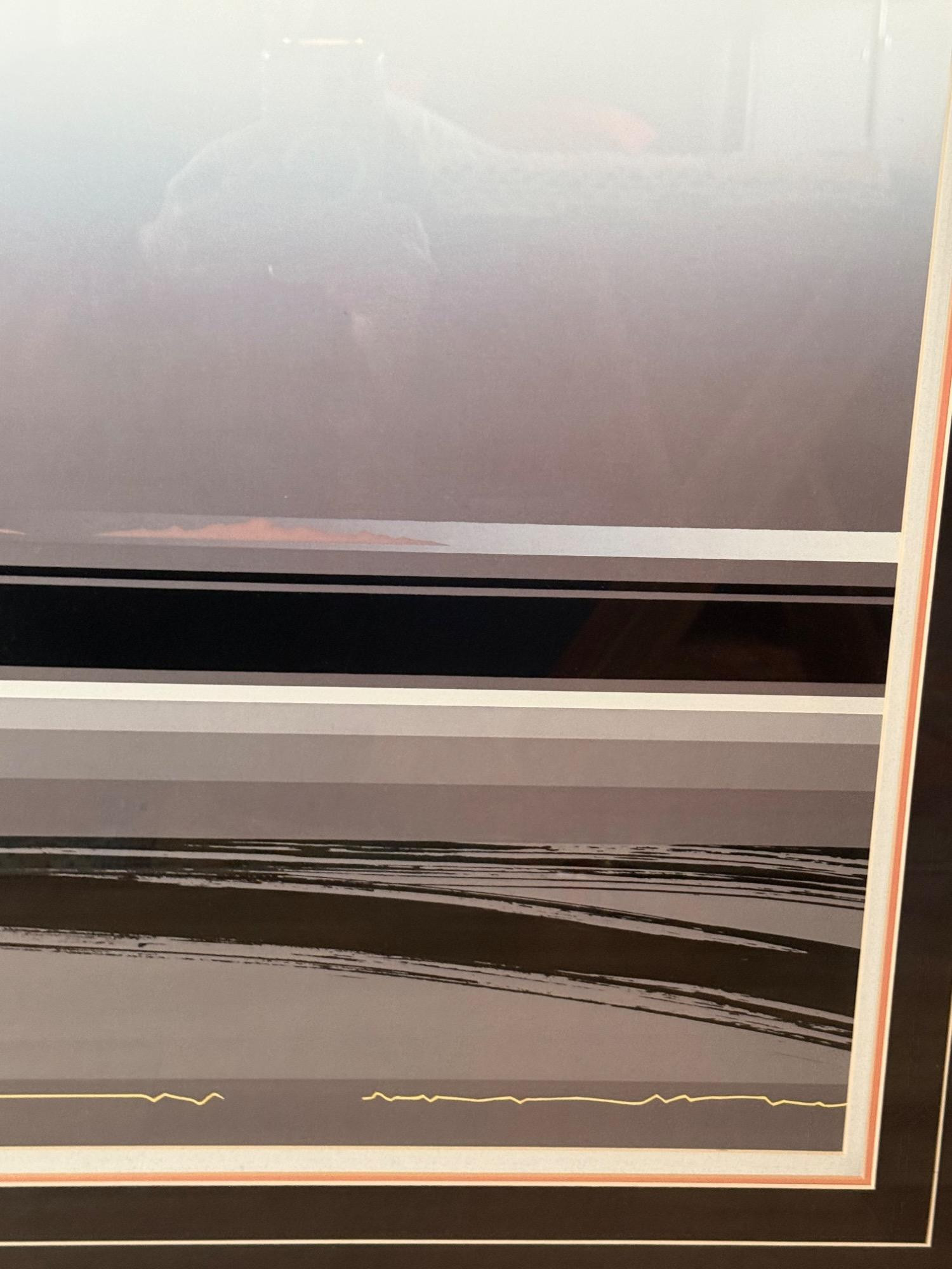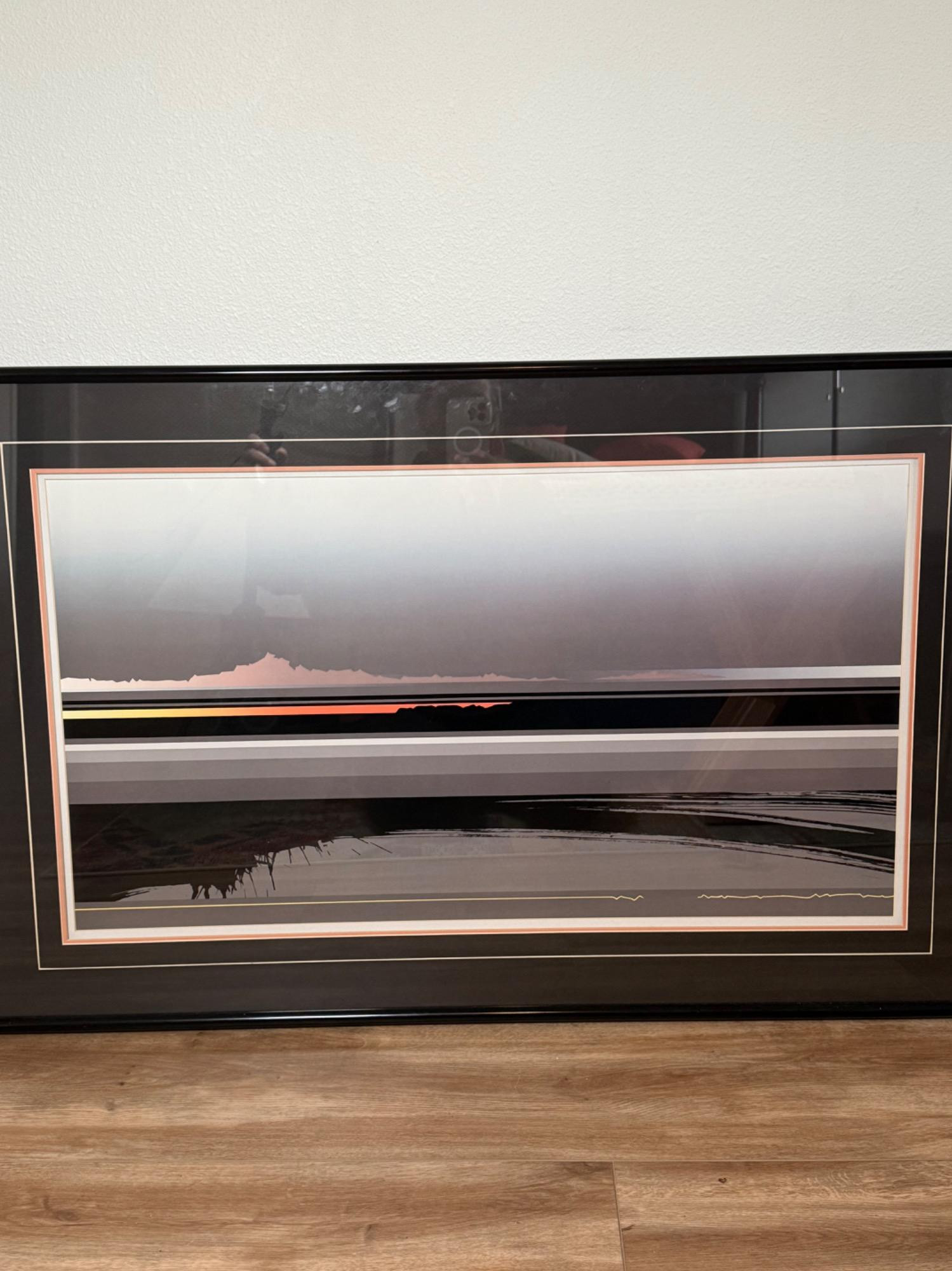 Tetsuro Sawada Silkscreen Print – "Morning Light Seascape" – MCM NO COA. Stunning silkscreen print titled "Morning Light Seascape" by renowned skyscape artist Tetsuro Sawada, measuring 40” wide by 26” tall. This captivating Mid-Century Modern piece features Sawada's signature minimalist style and atmospheric gradients, perfect for collectors or as a striking addition to any modern interior. All bids start at $5.00, we do our best to describe art but we are not licensed appraisers. The information given about this piece was provided by the owner.