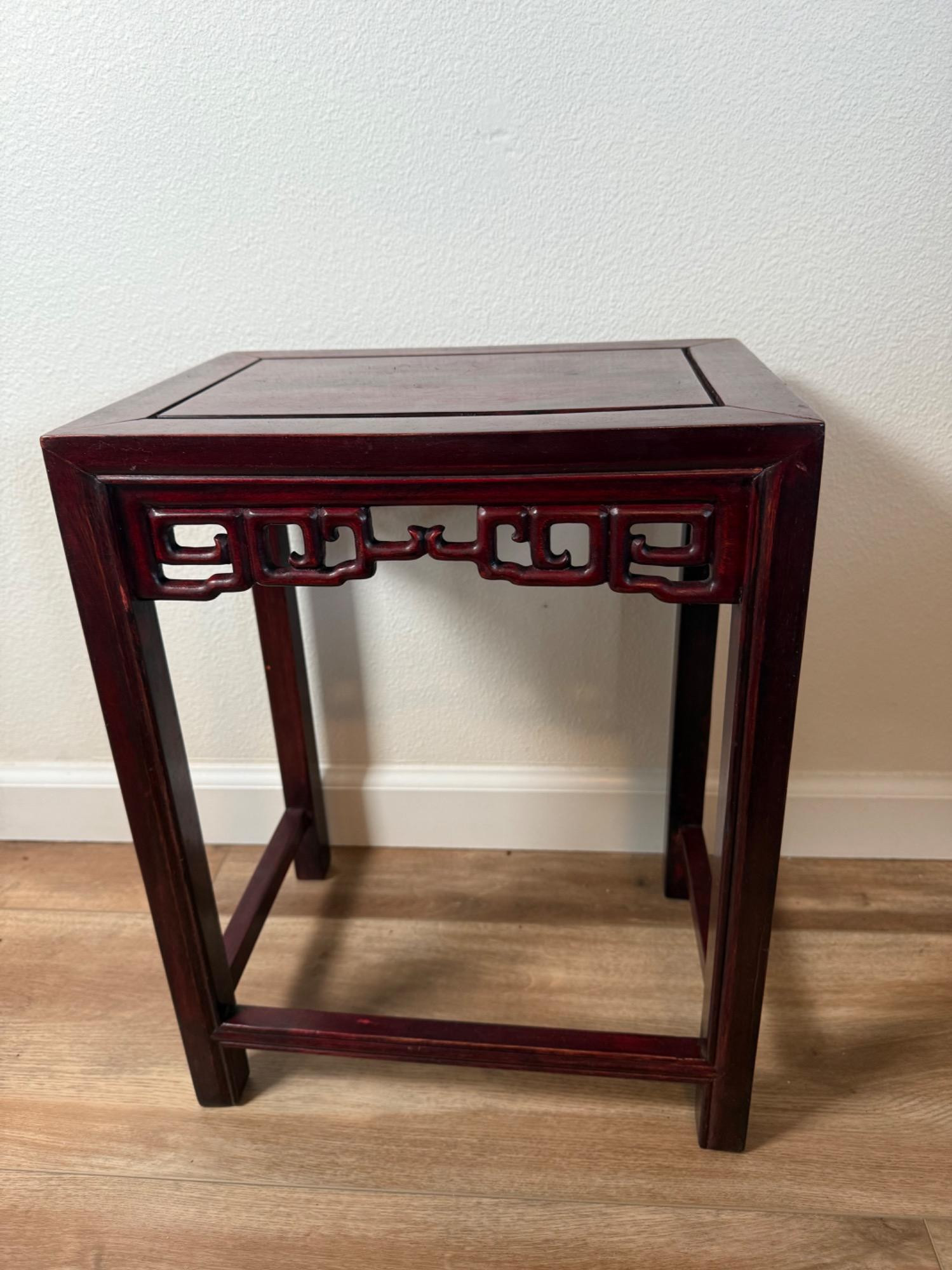 Beautifully crafted ornate Asian accent table measuring 18” tall, 14” wide, and 10” deep. Features intricate carved details and a rich rosewood-style finish, making it a striking decorative piece for any room. Bidding on this lot is an agreement that: (1.) You will have 2 capable, able-bodied persons to lift and load at a minimum. (2.) You will bring a hand truck and/or any other tools needed to remove this item. If these steps are not followed your item will be forfeited and no refund given.