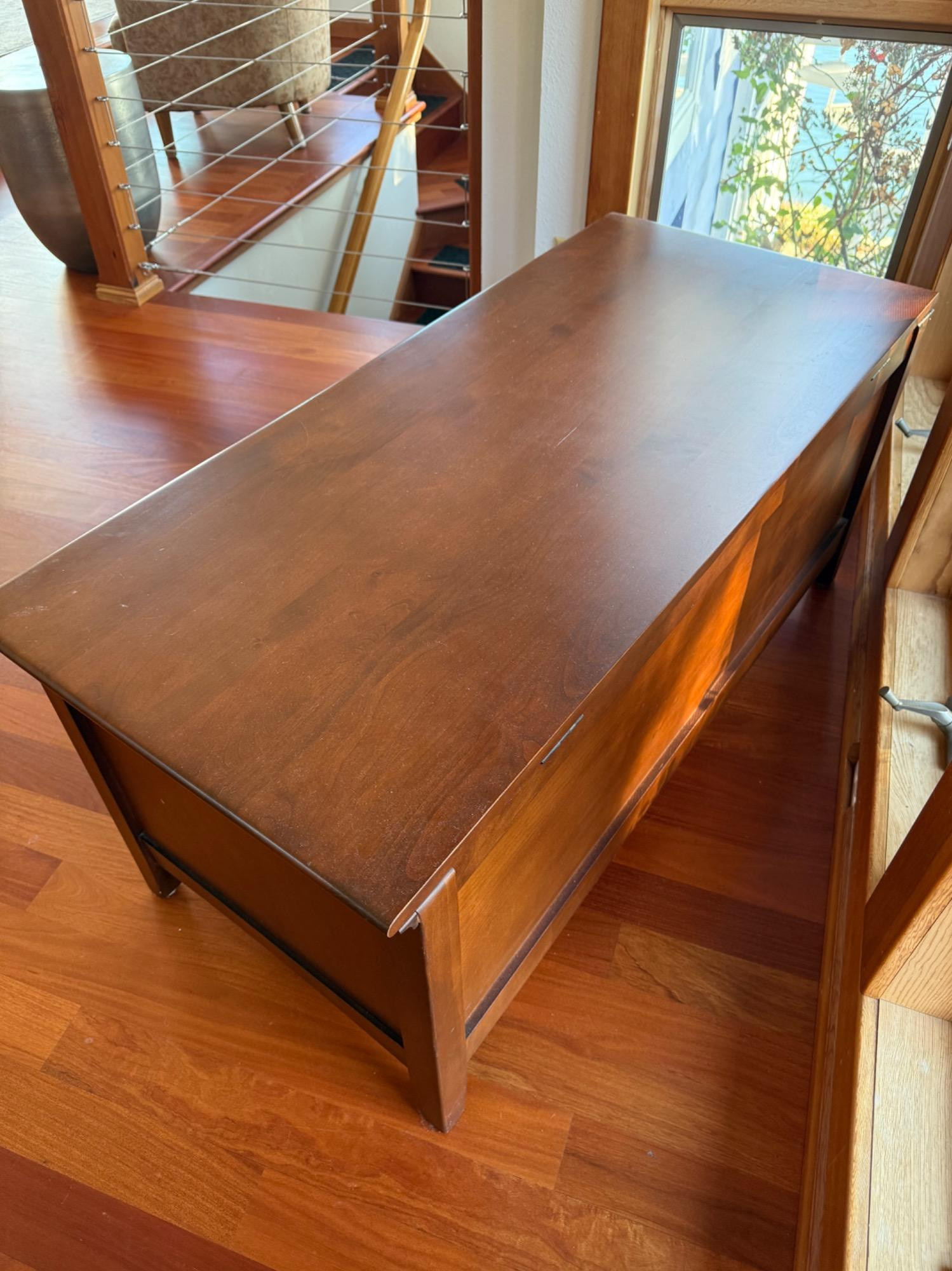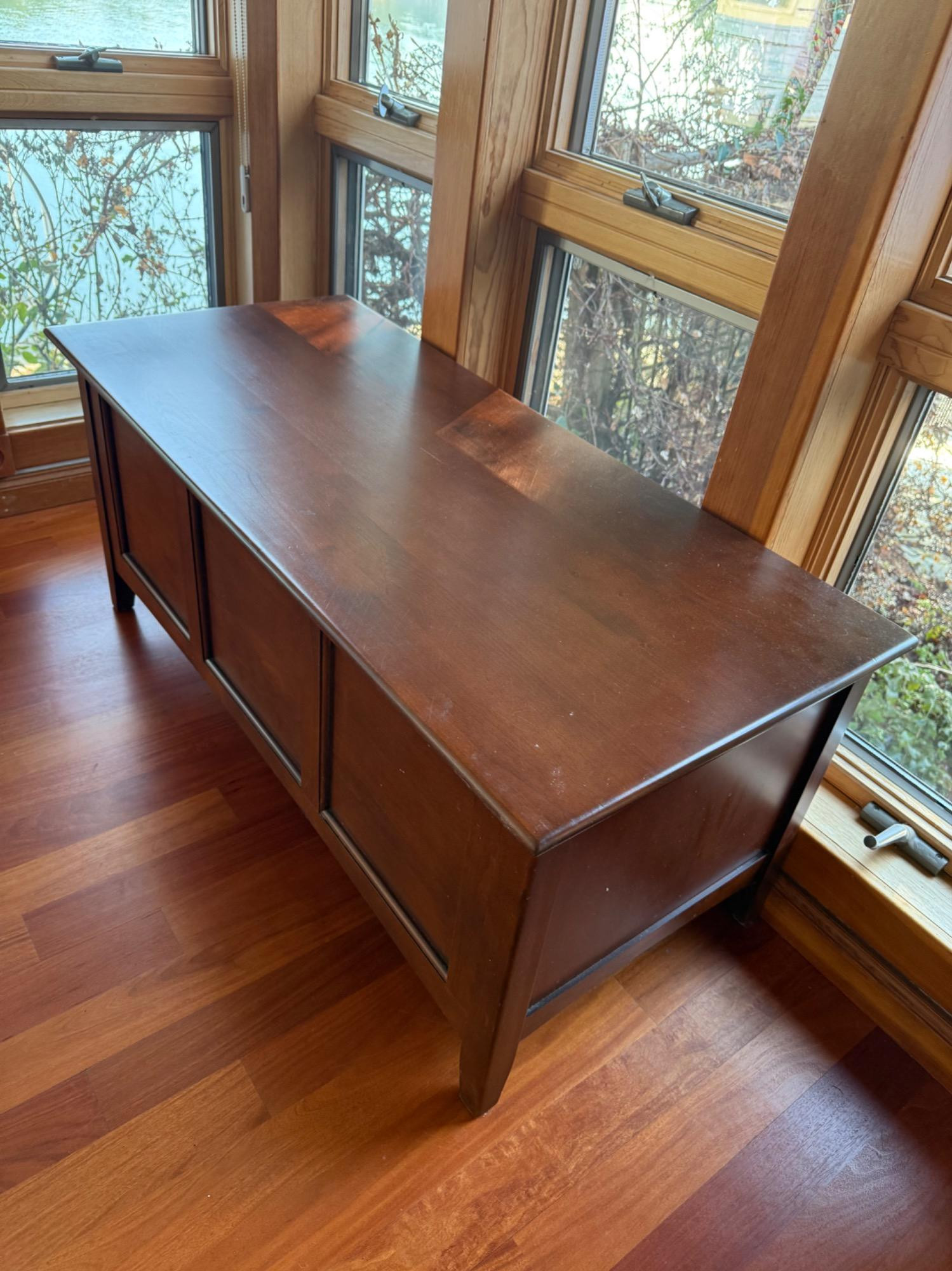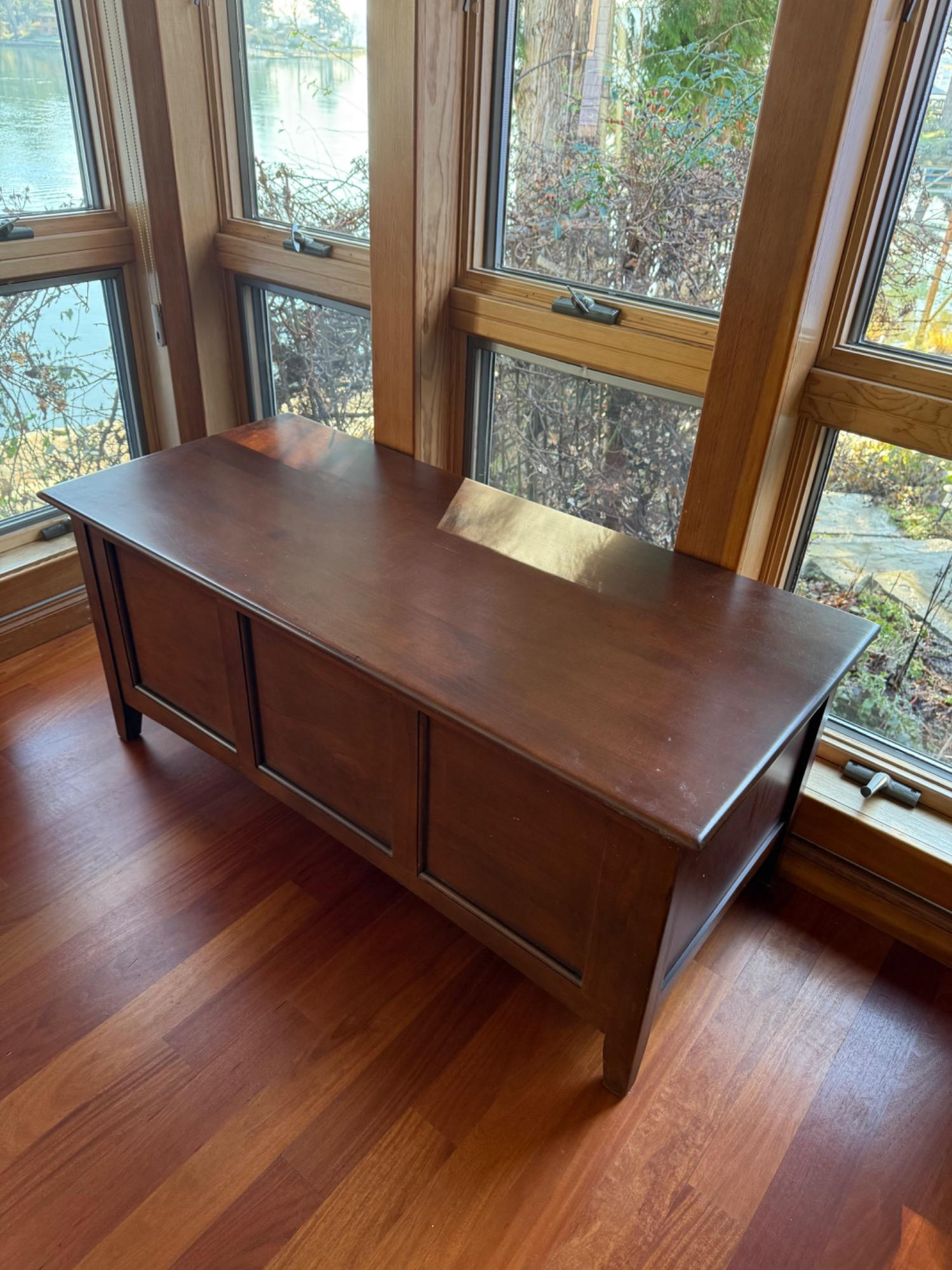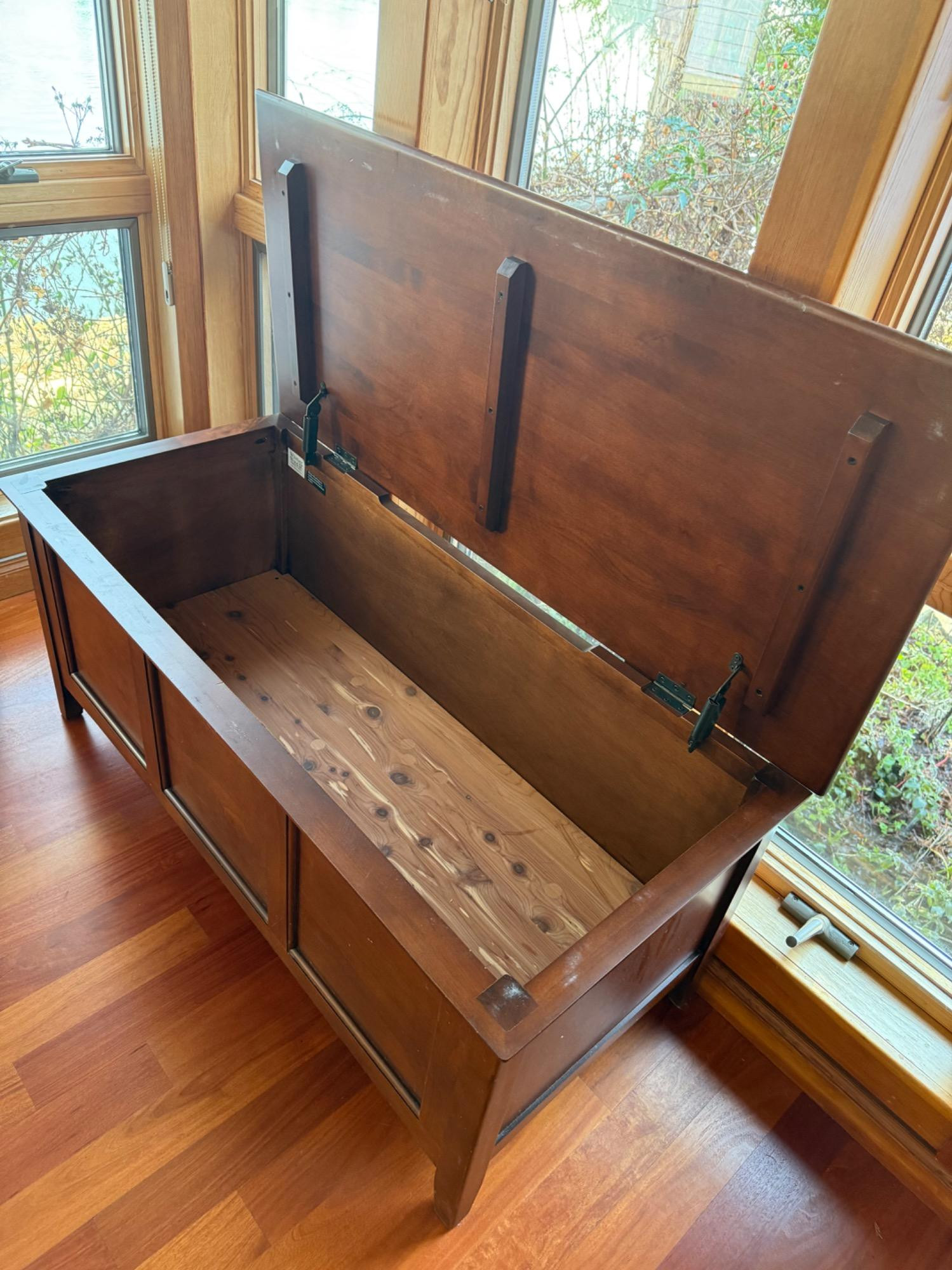 The Whittier Wood McKenzie storage chest offers a charming blend of homey traditional design and efficient keepsake storage. Measuring 21” tall, 21.5” wide, and 48” long, it features a cedar-lined bottom, a lift lid, and a spacious interior ideal for storing family heirlooms, bedding, or extra clothing. The reinforced lid doubles as a sturdy seating option, making this chest both functional and elegant—a perfect addition to any home. Bidding on this lot is an agreement that: (1.) You will have 2 capable, able-bodied persons to lift and load at a minimum. (2.) You will bring a hand truck and/or any other tools needed to remove this item. If these steps are not followed your item will be forfeited and no refund given.