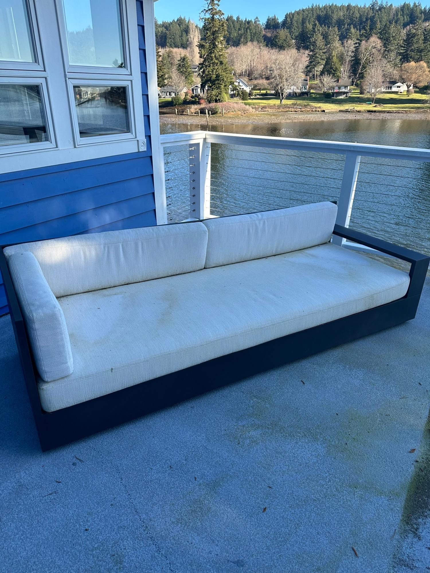 Lot # 75 - Restoration Hardware Outdoor Patio Long Sofa w/ Cushions-Cover Includ.