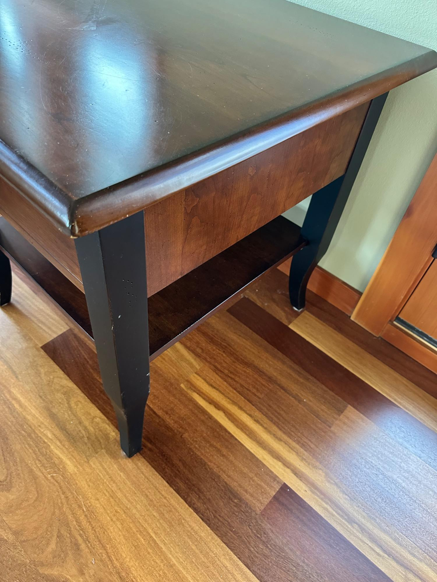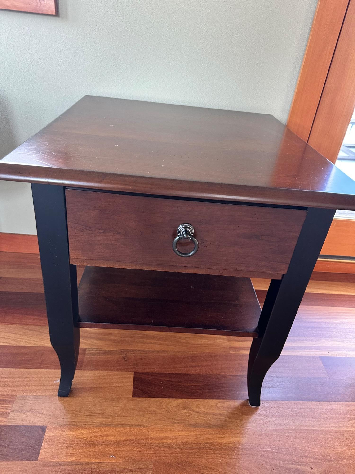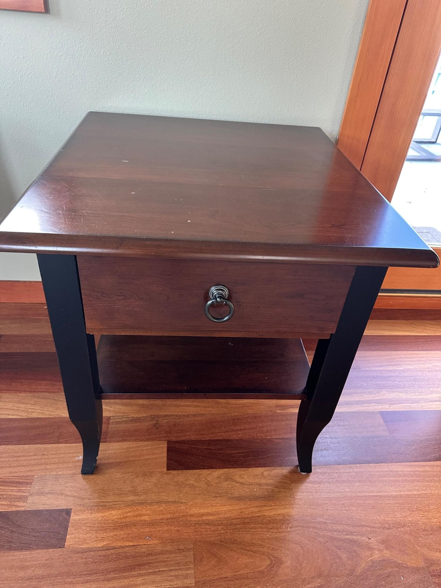 This traditional wood side table adds a touch of classic elegance to any space. Measurements: 27.5" D x 26" W x 26.5" Tall Features: Includes a single drawer with a stylish ring pull and a lower shelf for added storage or display. Condition: Excellent A timeless piece for your living room, bedroom, or office! Bidding on this lot is an agreement that: (1.) You will have 2 capable, able-bodied persons to lift and load at a minimum. (2.) You will bring a hand truck and/or any other tools needed to remove this item. If these steps are not followed your item will be forfeited and no refund given.