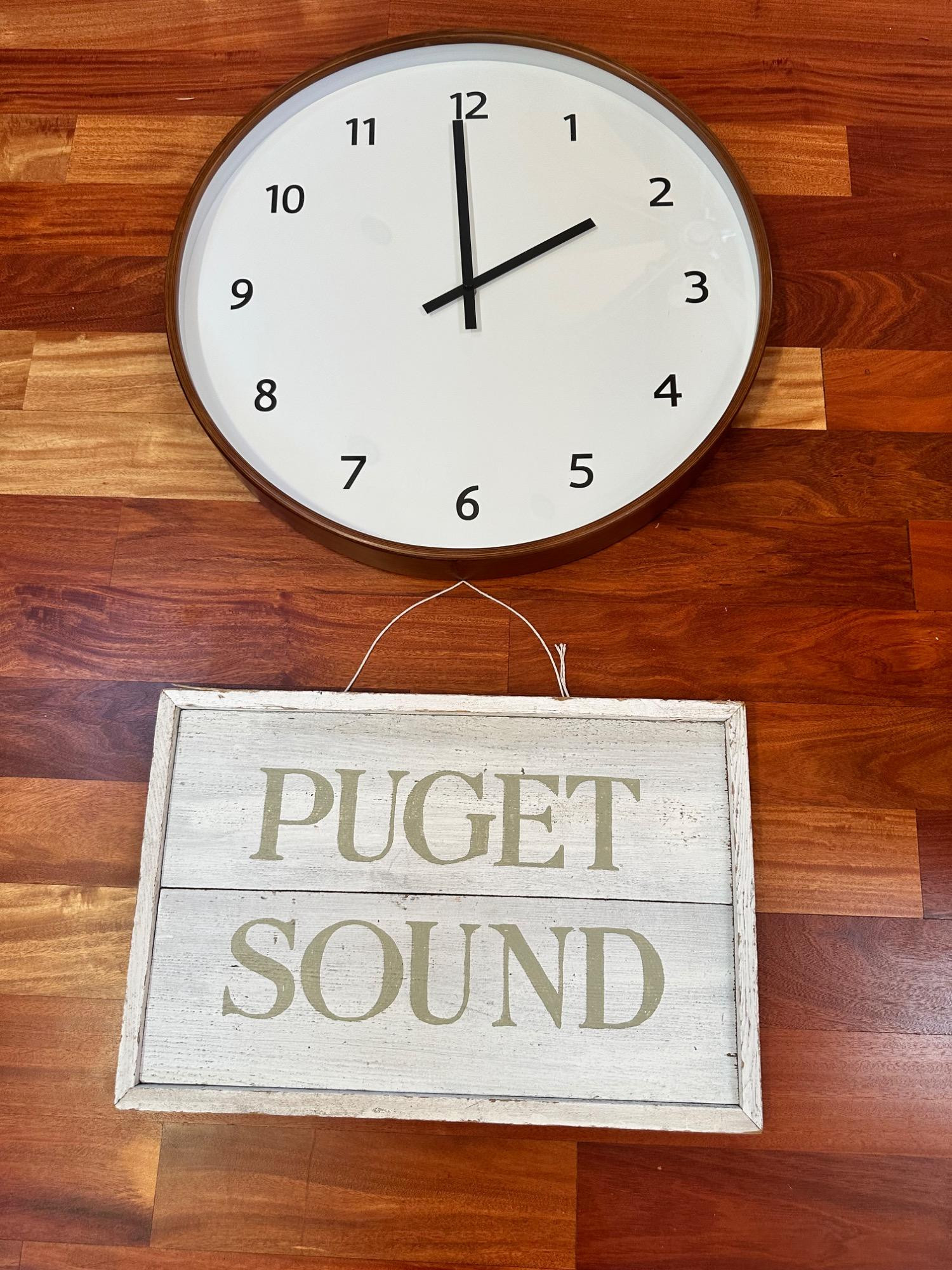 Lot # 82 - Wall Decor-Large Clock & Puget Sound Sign Set