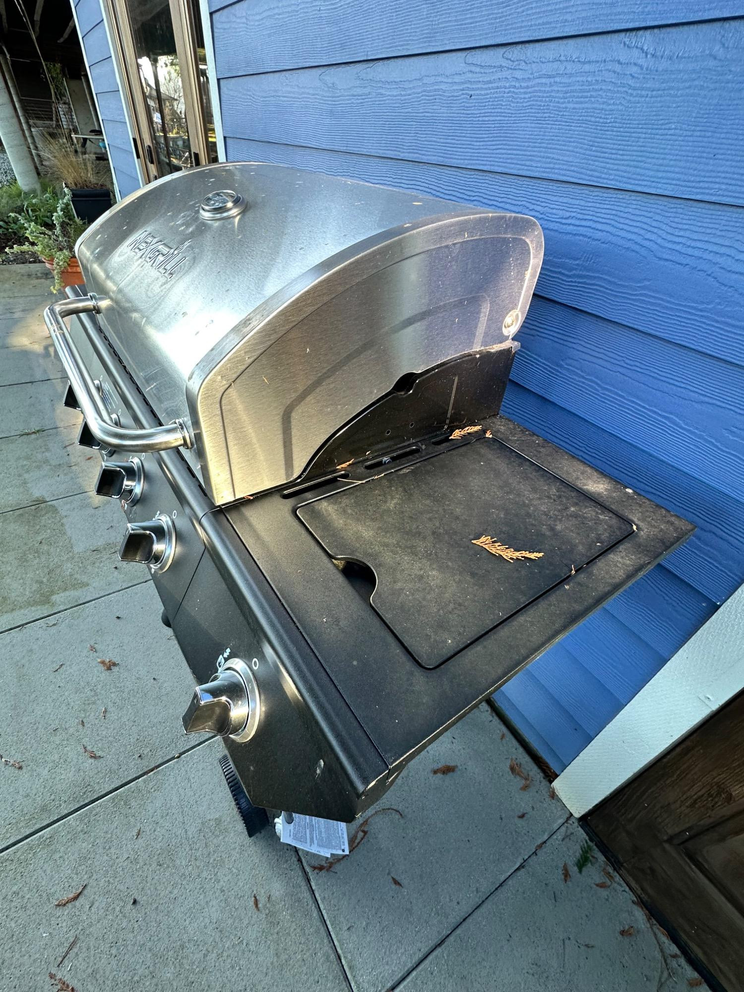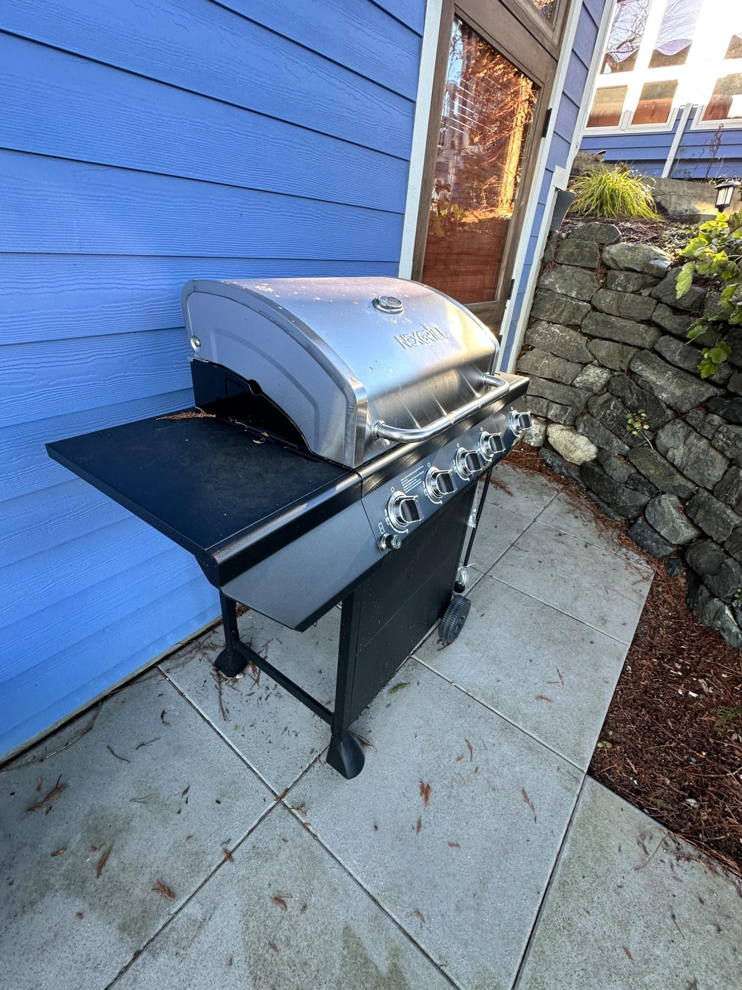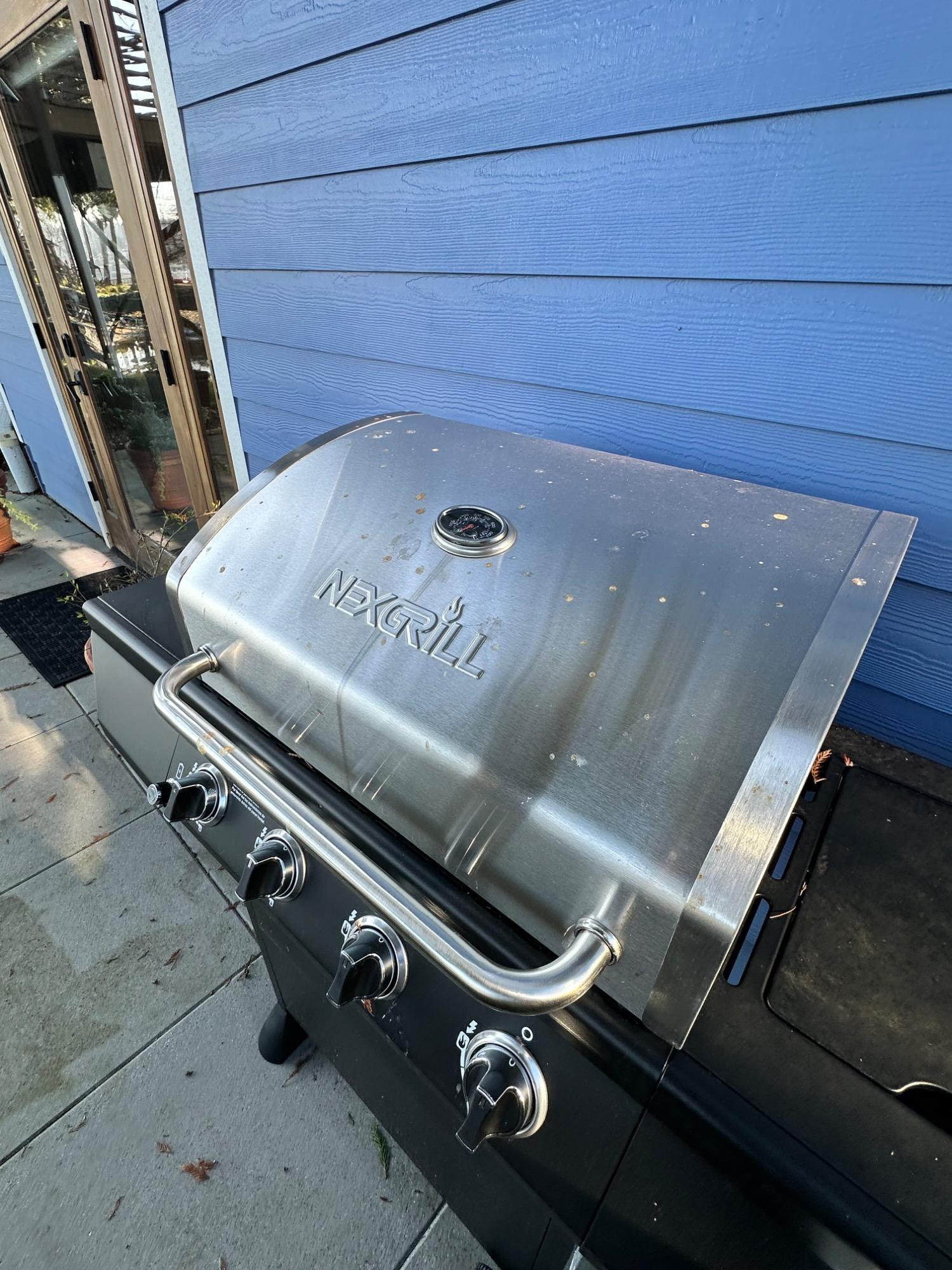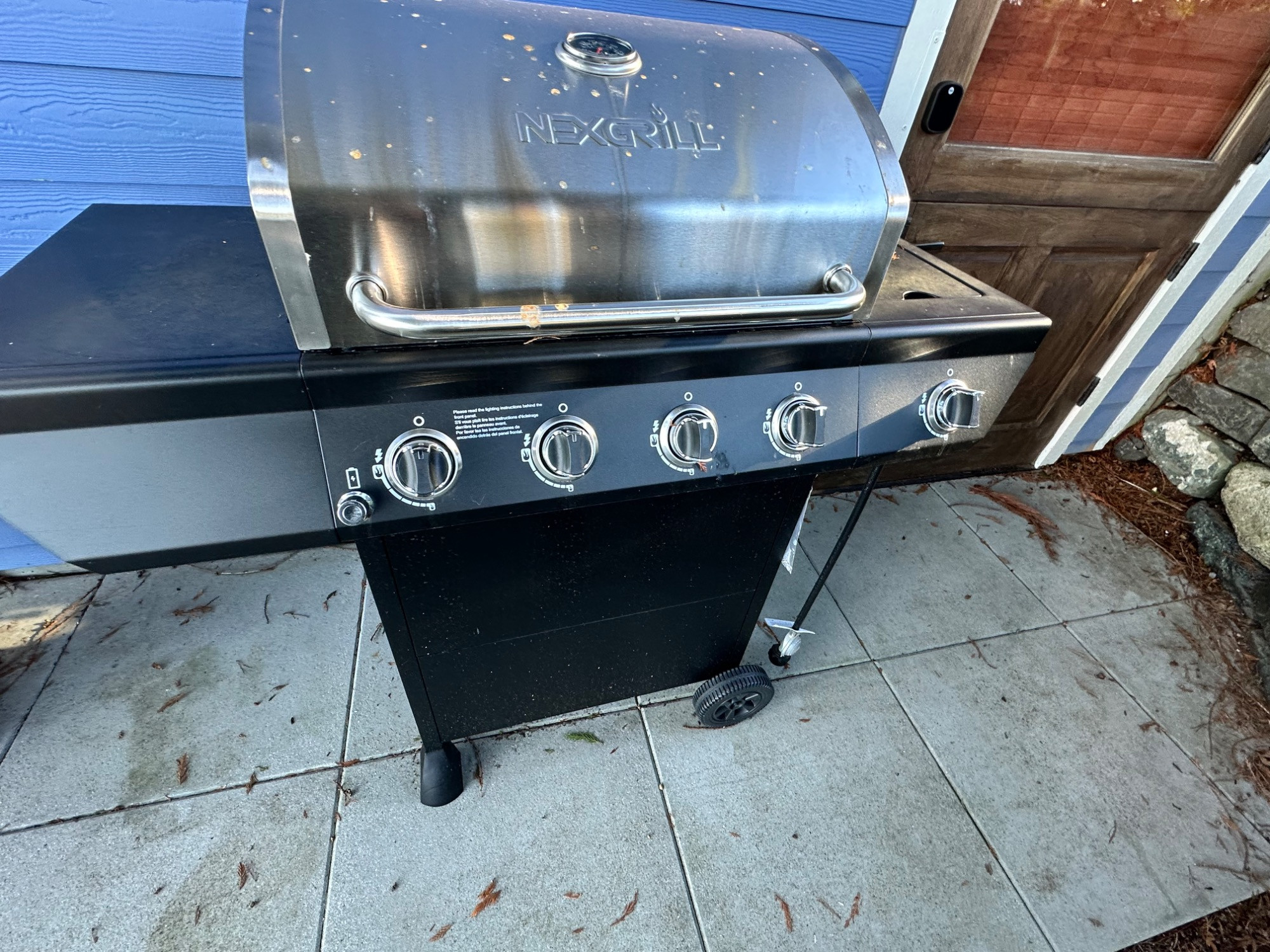 Brand-new Nexgrill 4-burner propane gas grill with a stainless steel lid for enhanced heat circulation. Features a stainless steel side burner for sauces, angled flame tamers to prevent flare-ups, and porcelain cast-iron grids for excellent heat retention and sear marks. Comes with barbecue tools and propane gas. Bidding on this lot is an agreement that: (1.) You will have 2 capable, able-bodied persons to lift and load at a minimum. (2.) You will bring a hand truck and/or any other tools needed to remove this item. If these steps are not followed your item will be forfeited and no refund given.