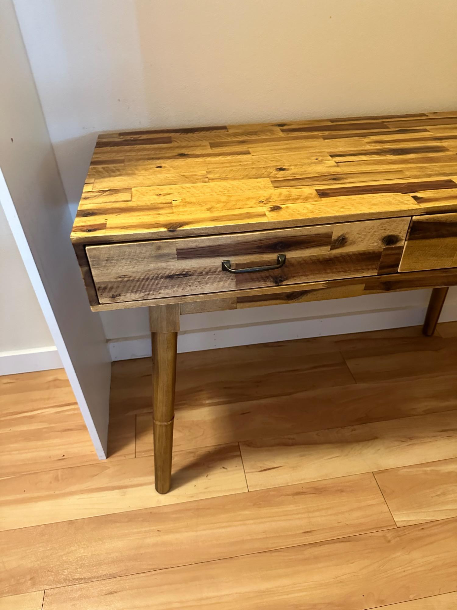 Lot # 90 - Mid Century Style Natural Wood Plank Look Entry Table/Desk