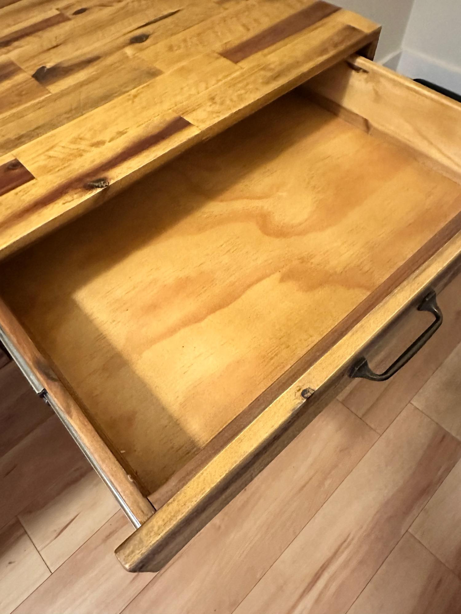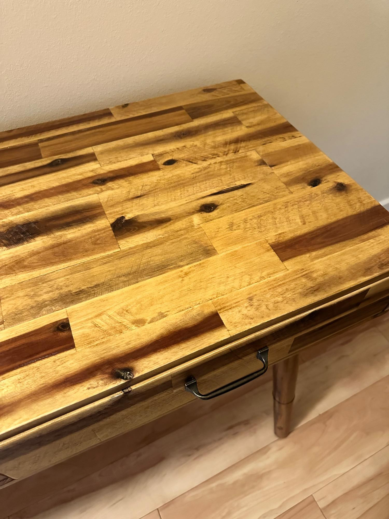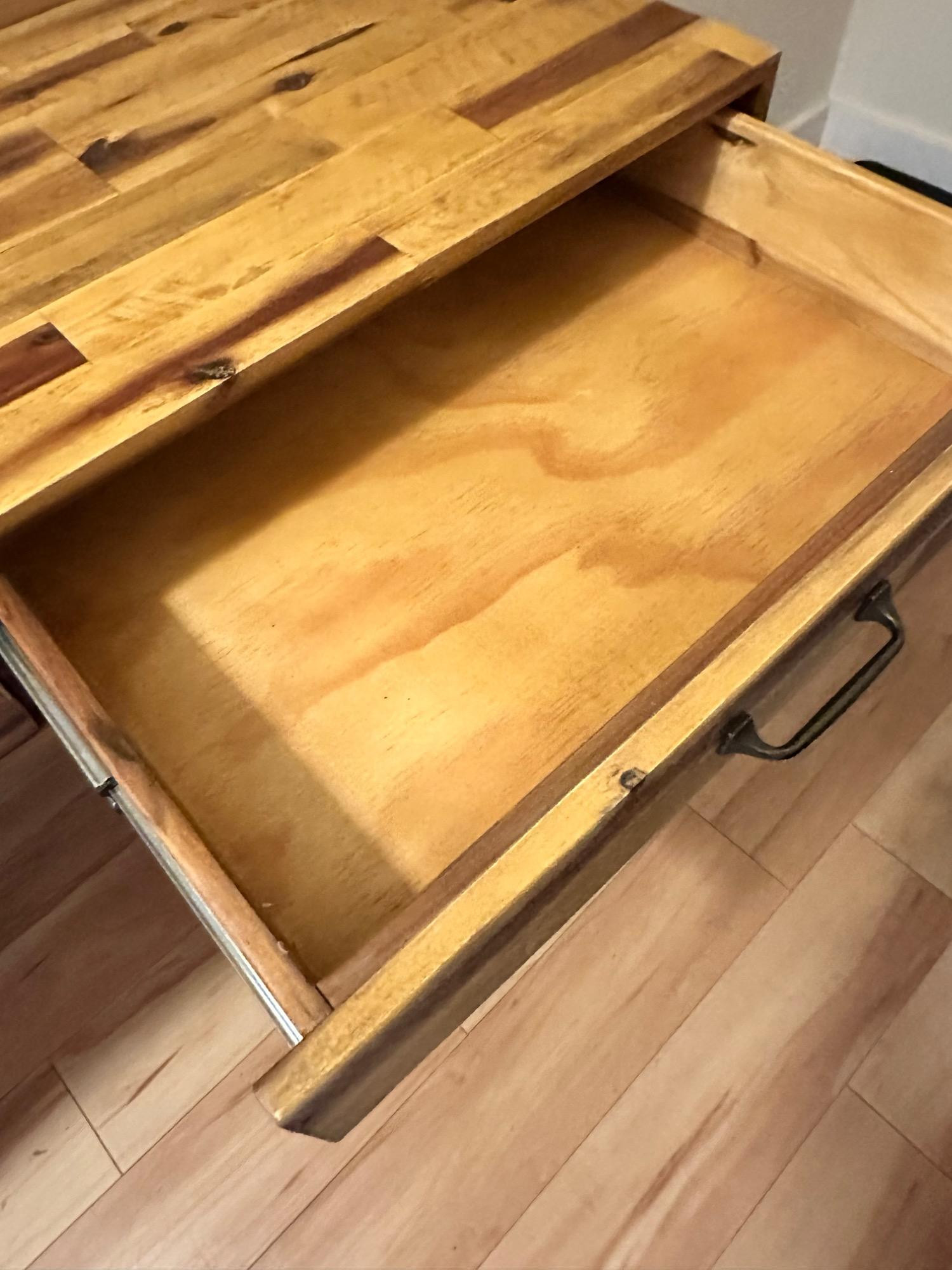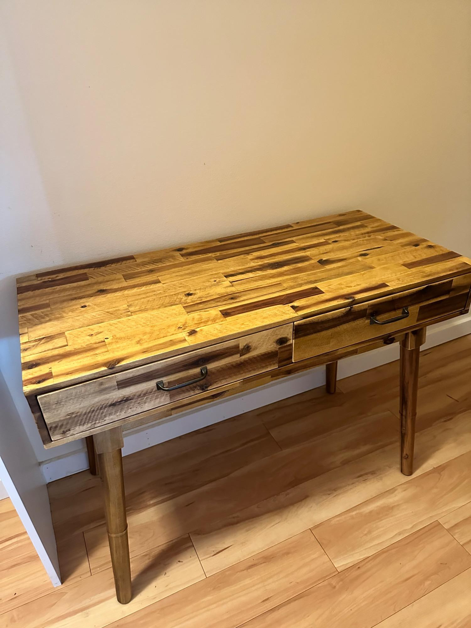 This beautiful mid-century style table features a natural wood plank look and legs with a bamboo-like aesthetic. Ideal as an entry table or desk, it complements a variety of interiors. Appears to be a newer piece with no visible manufacturer details. Measures 31" Tall x 44" W x 20" D. Perfect for adding a touch of style to any space. Bidding on this lot is an agreement that: (1.) You will have 2 capable, able-bodied persons to lift and load at a minimum. (2.) You will bring a hand truck and/or any other tools needed to remove this item. If these steps are not followed your item will be forfeited and no refund given.
