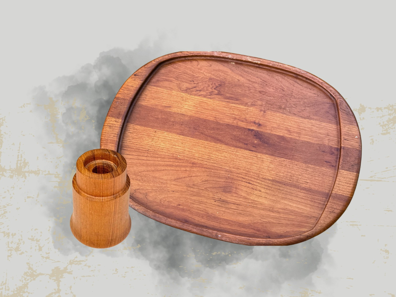 Vintage Digsmed Danish Teak Tray & Teak Candleholder