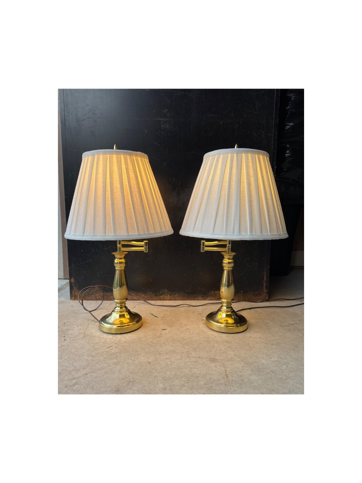 Pair Swing Arm Brass Lamps w/ Pleated Shades