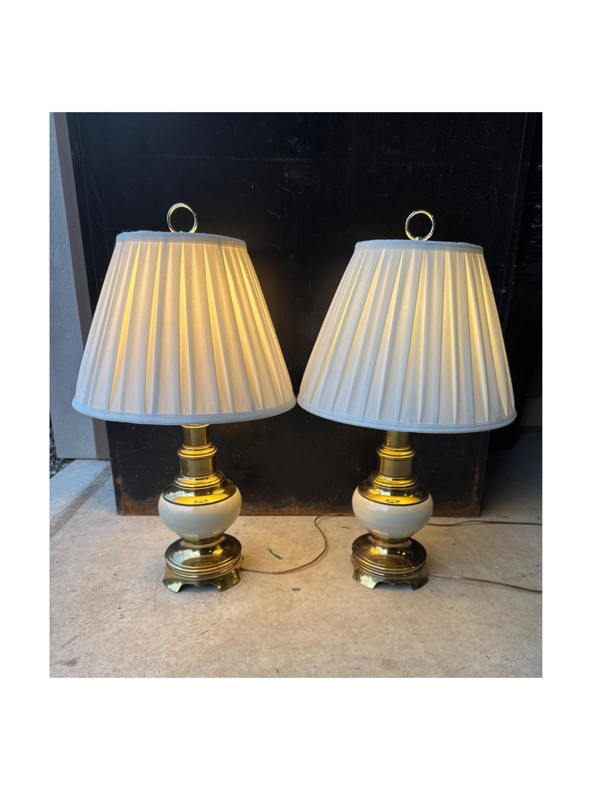 Pair Vintage Brass Lamps *finales are silver toned and don't appear original to the lamps