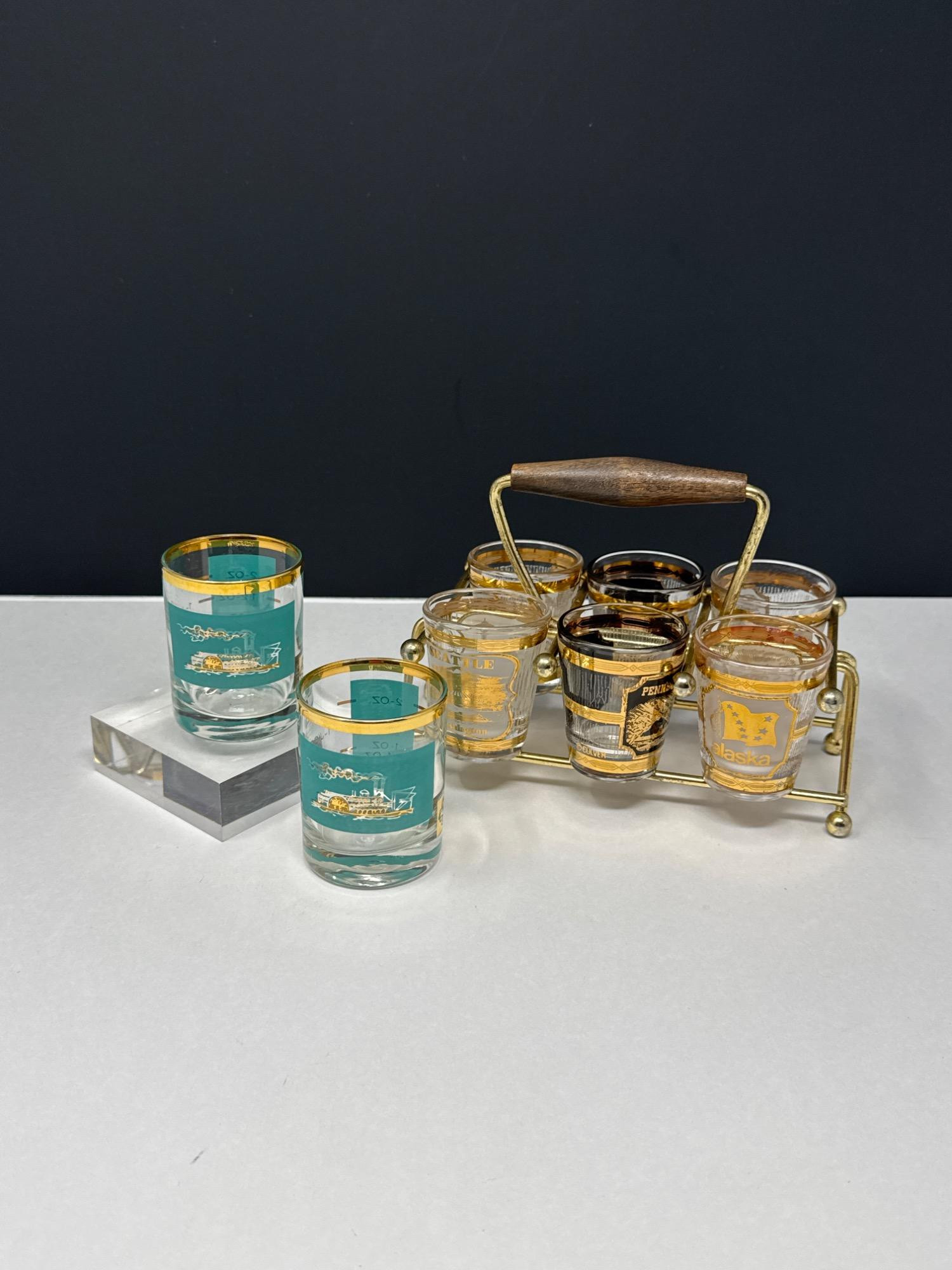 Lot # 195 - 22K (Culver & more) Souvenir Shot Glasses w/Caddy