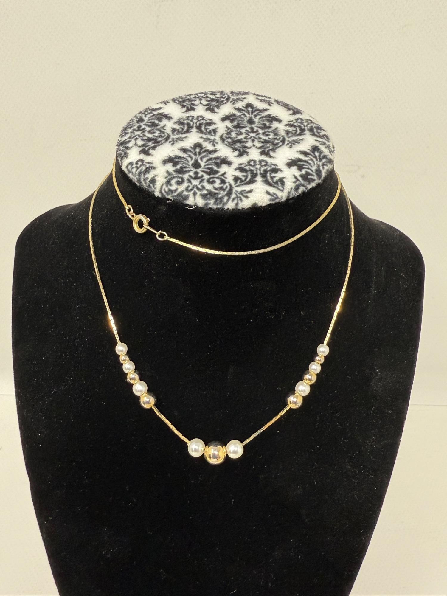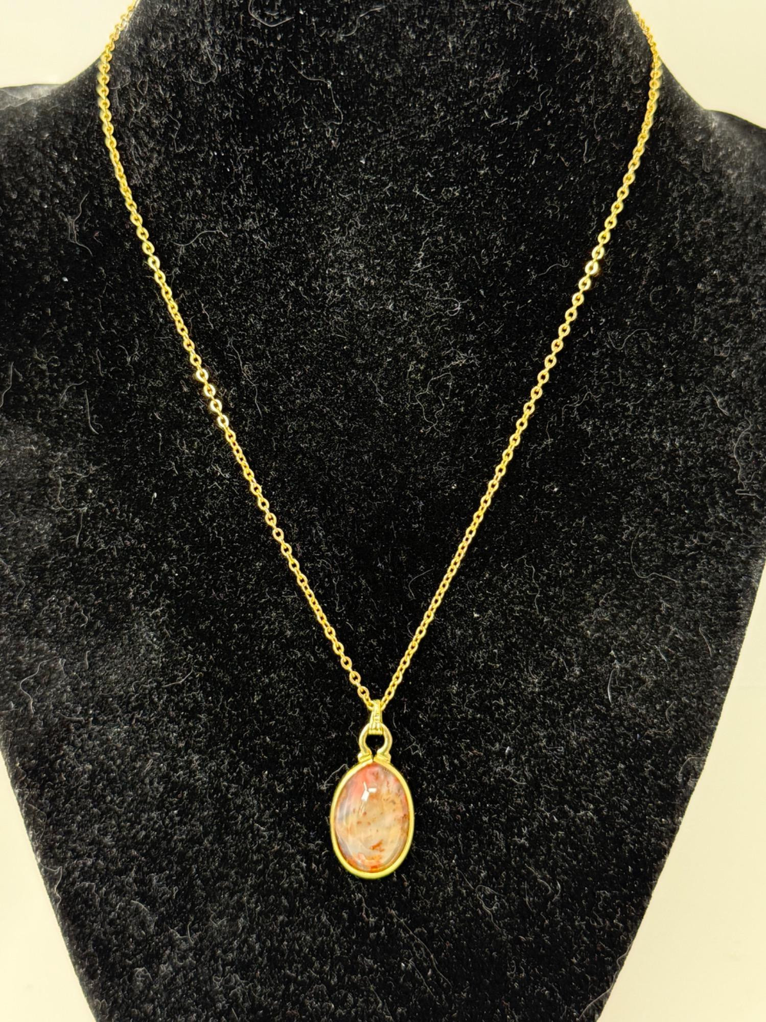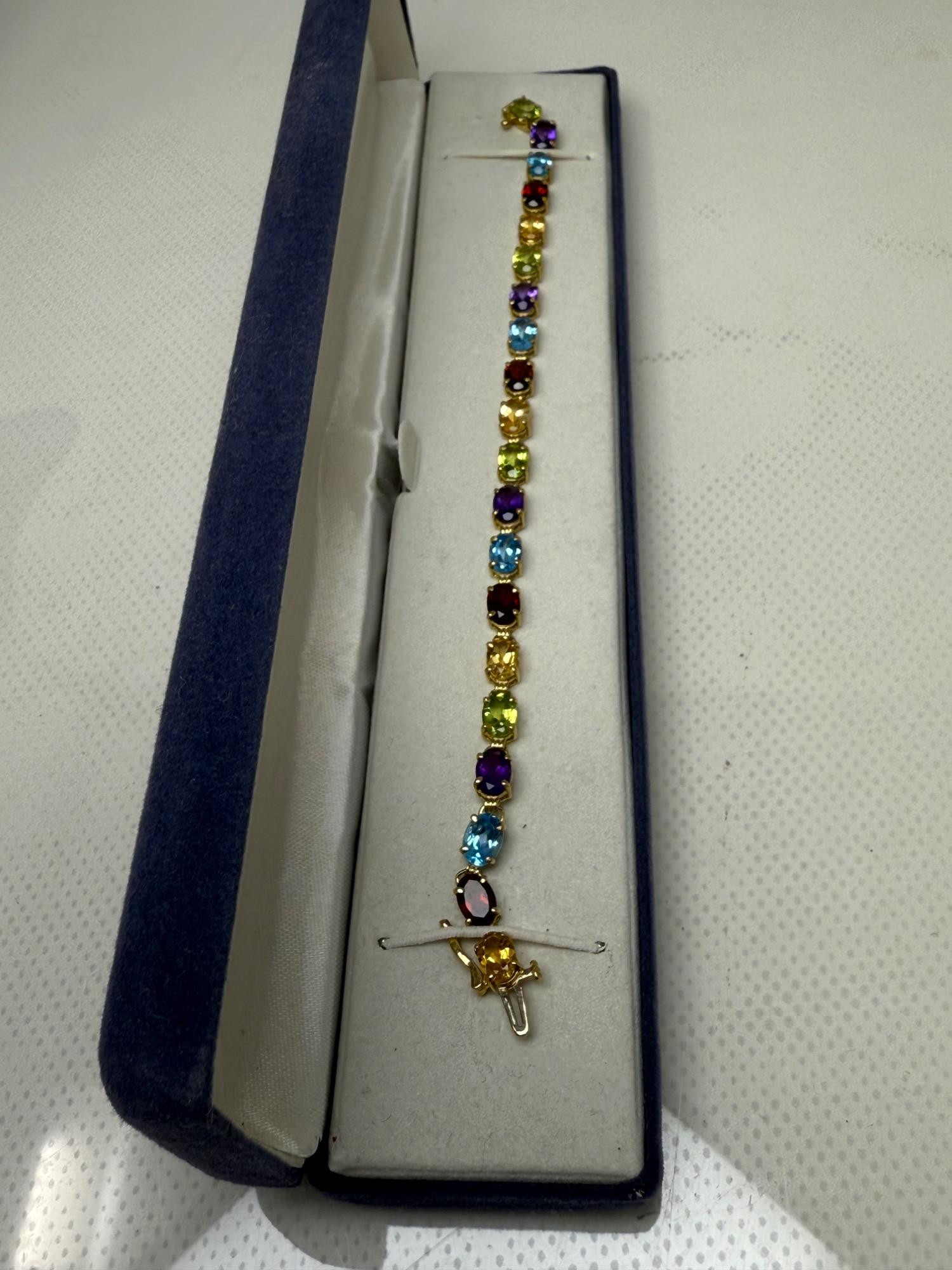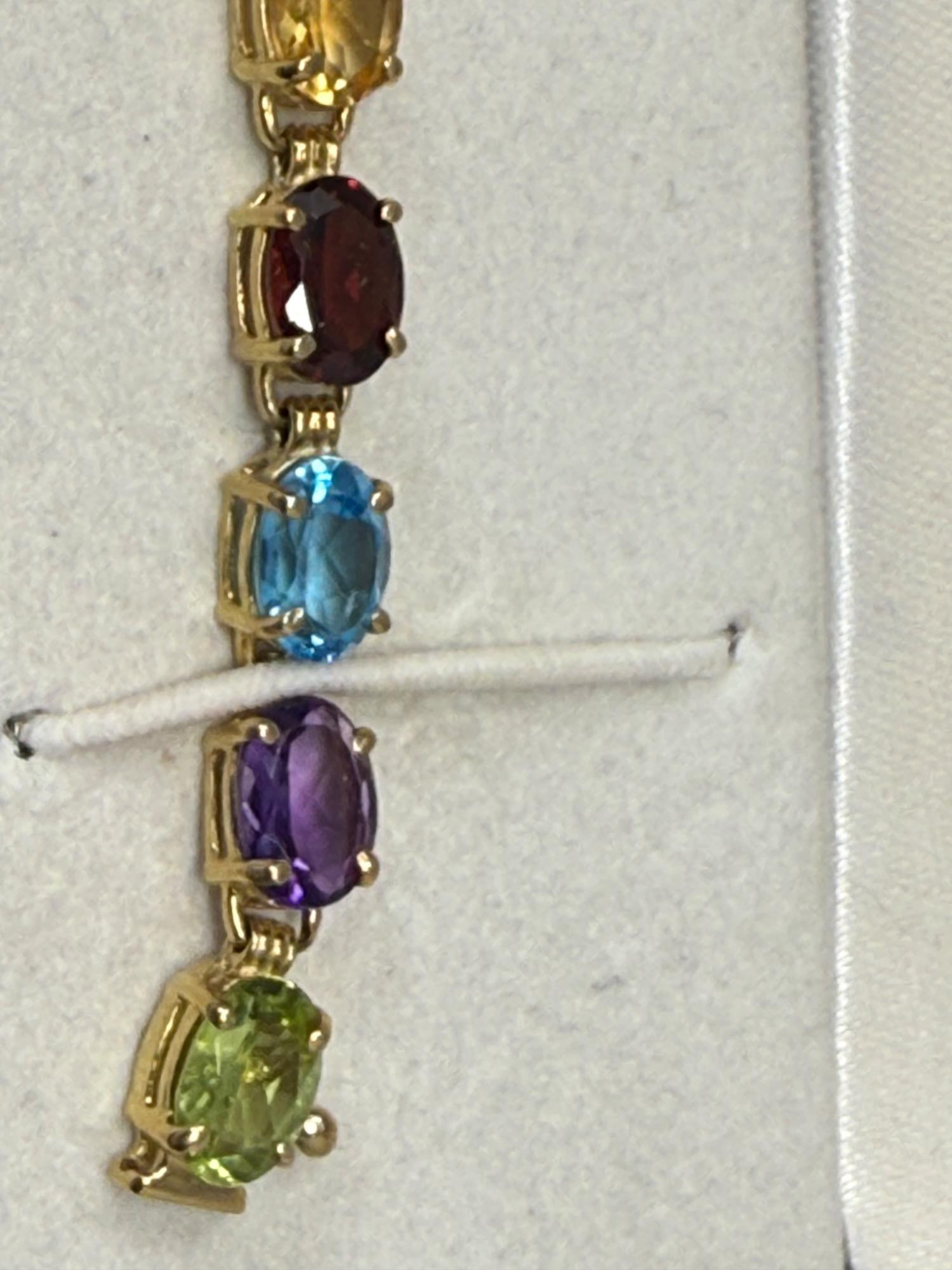 Mix of Jewelry that is 10k/12k. Two loose diamonds Multicolored bracelet has 10K gold clasp. 7.5in long Sunstone Necklace has 12K gold chain. Sandstone Necklace and pearl bead necklaces are not marked.