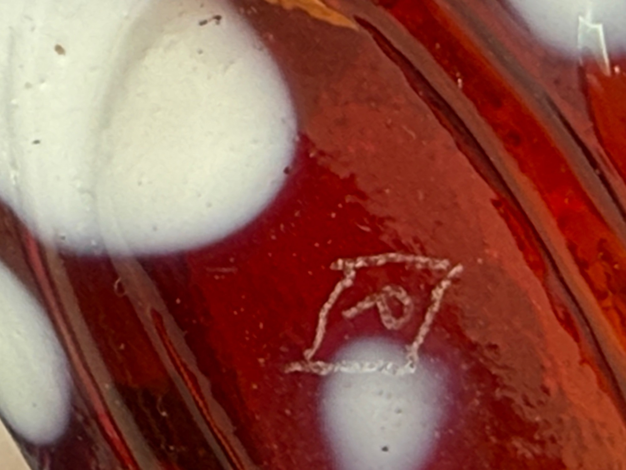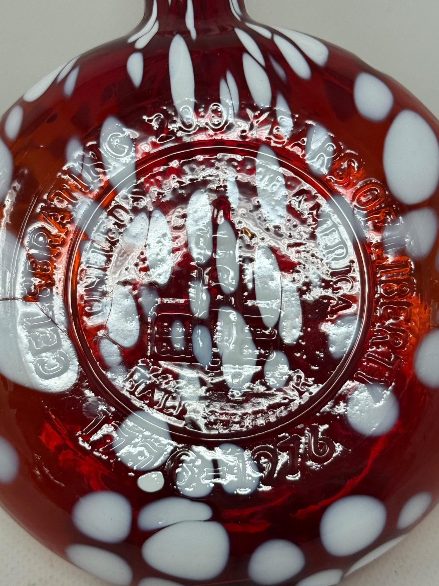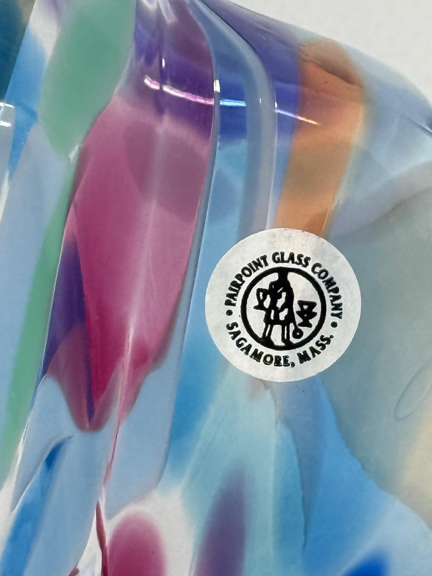 Vintage Pairpoint bottles. Violin and banjo styles. Anniversary embossed bottle. Multi-colored glass, trademark etched. One with mounting hook.