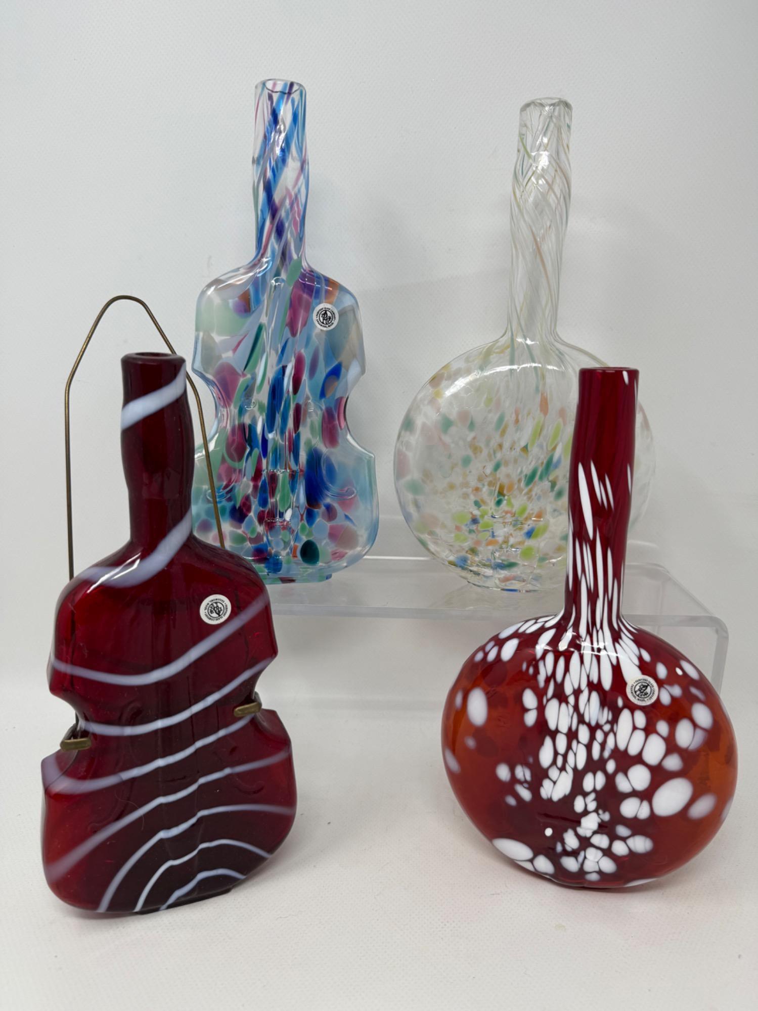 Lot # 10 - Art Glass Pairpoint Violin and Banjo Bottles
