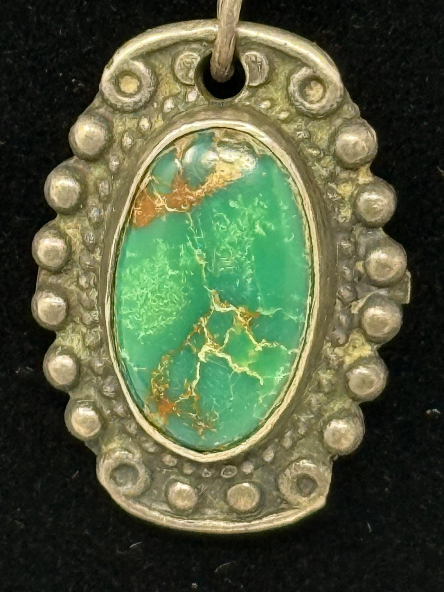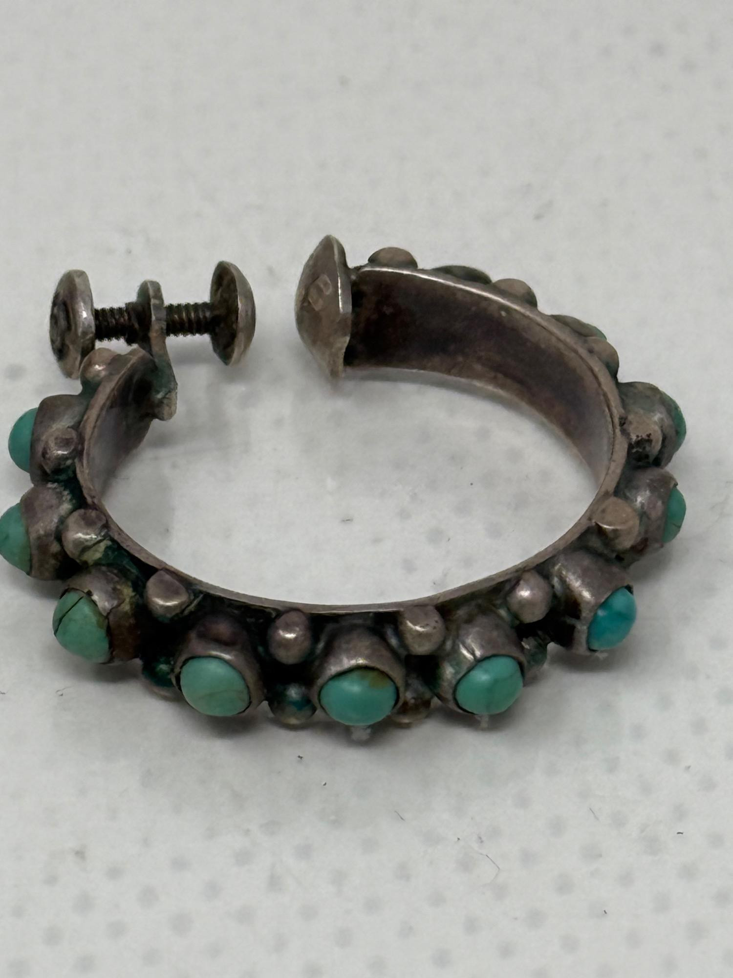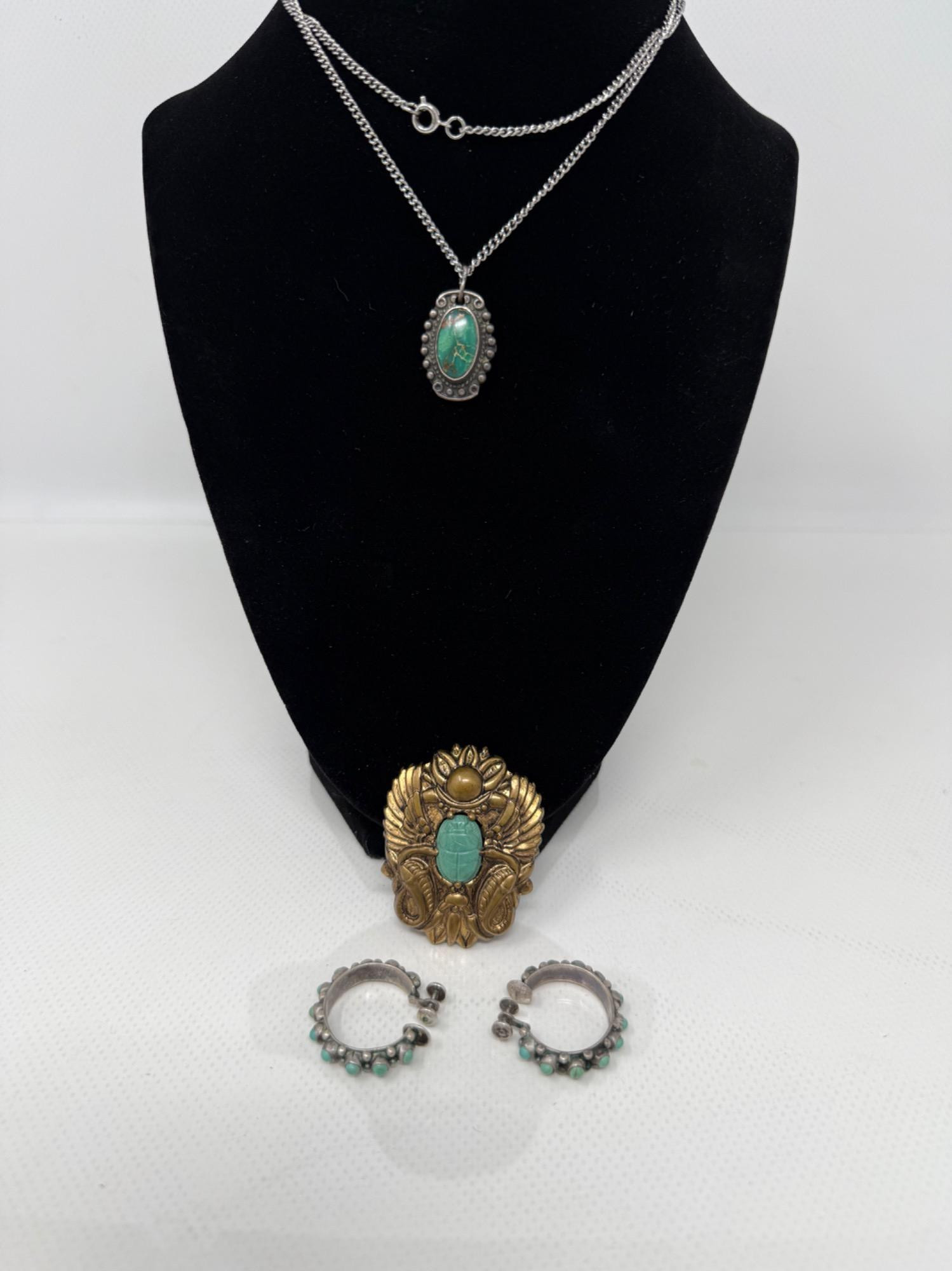 Sterling Silver, Turquoise and Green Stone Jewelry Sterling weight is 18ounces Brass pin with green scarab plastic center.