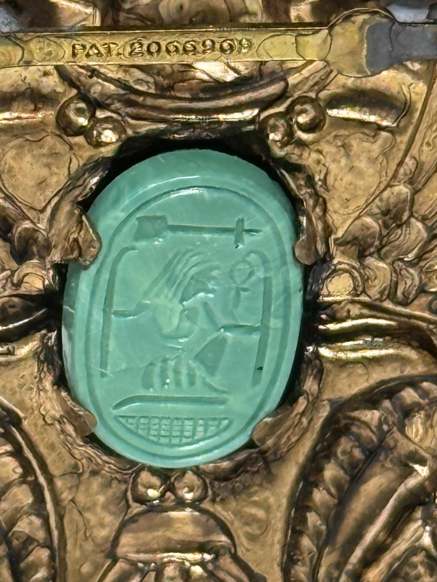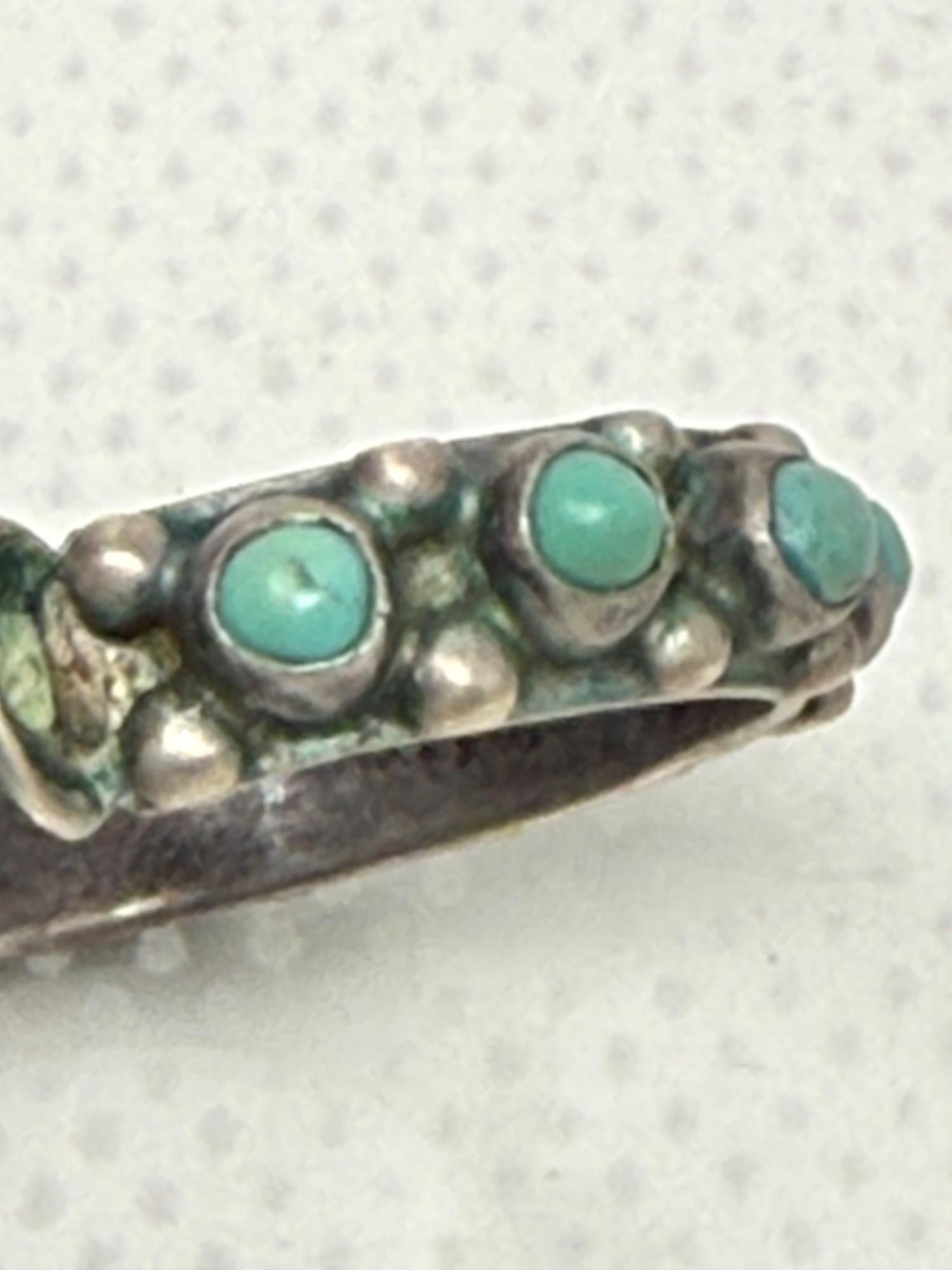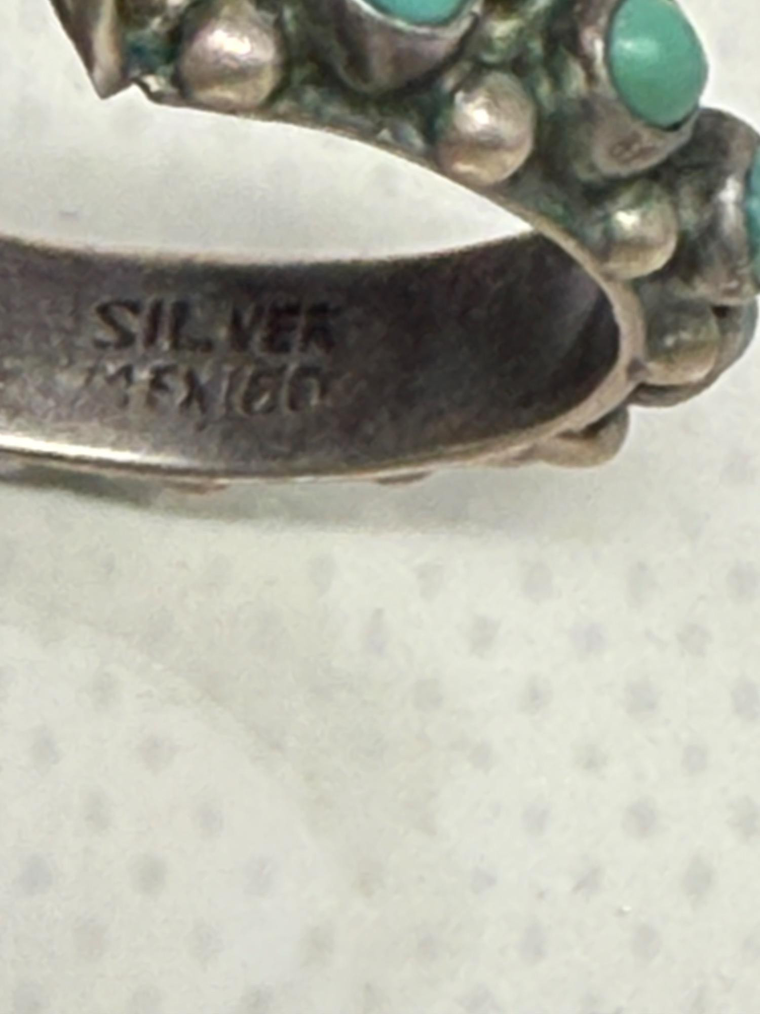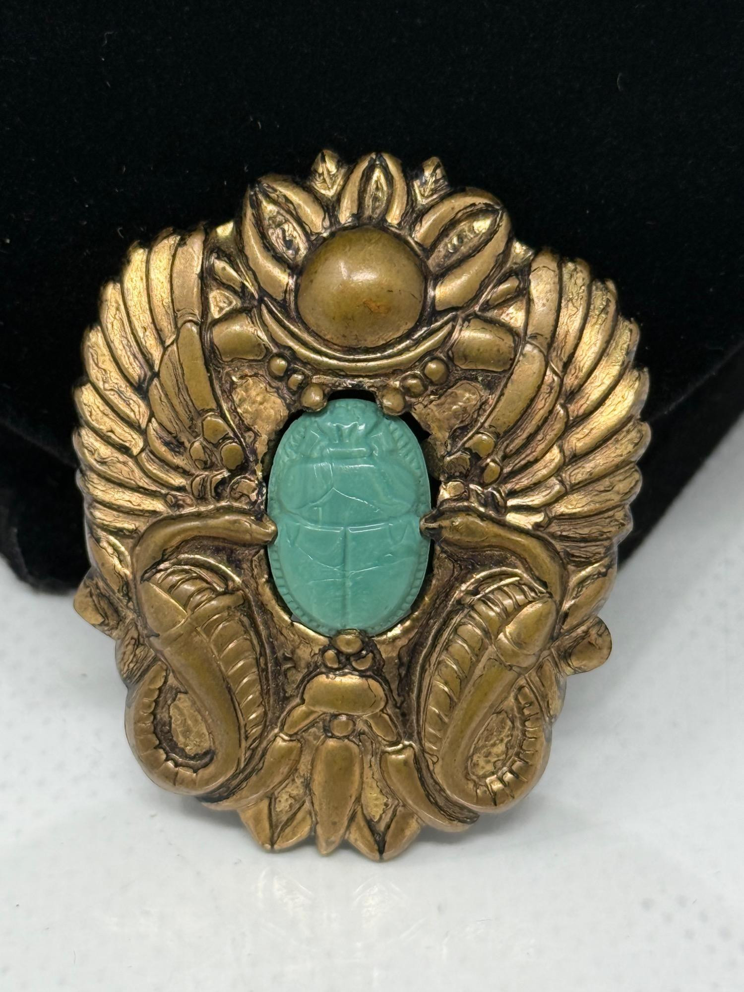 Sterling Silver, Turquoise and Green Stone Jewelry Sterling weight is 18ounces Brass pin with green scarab plastic center.