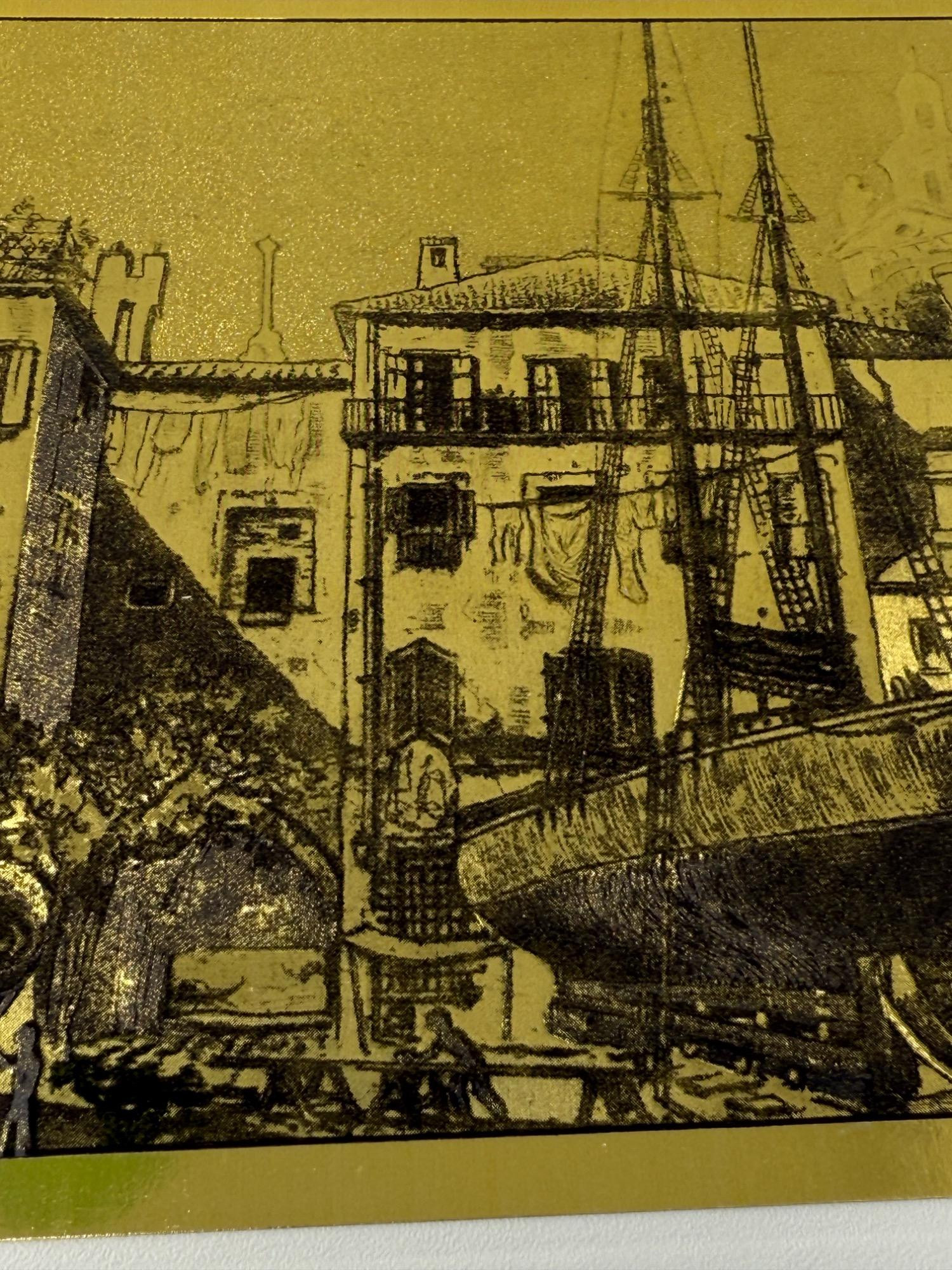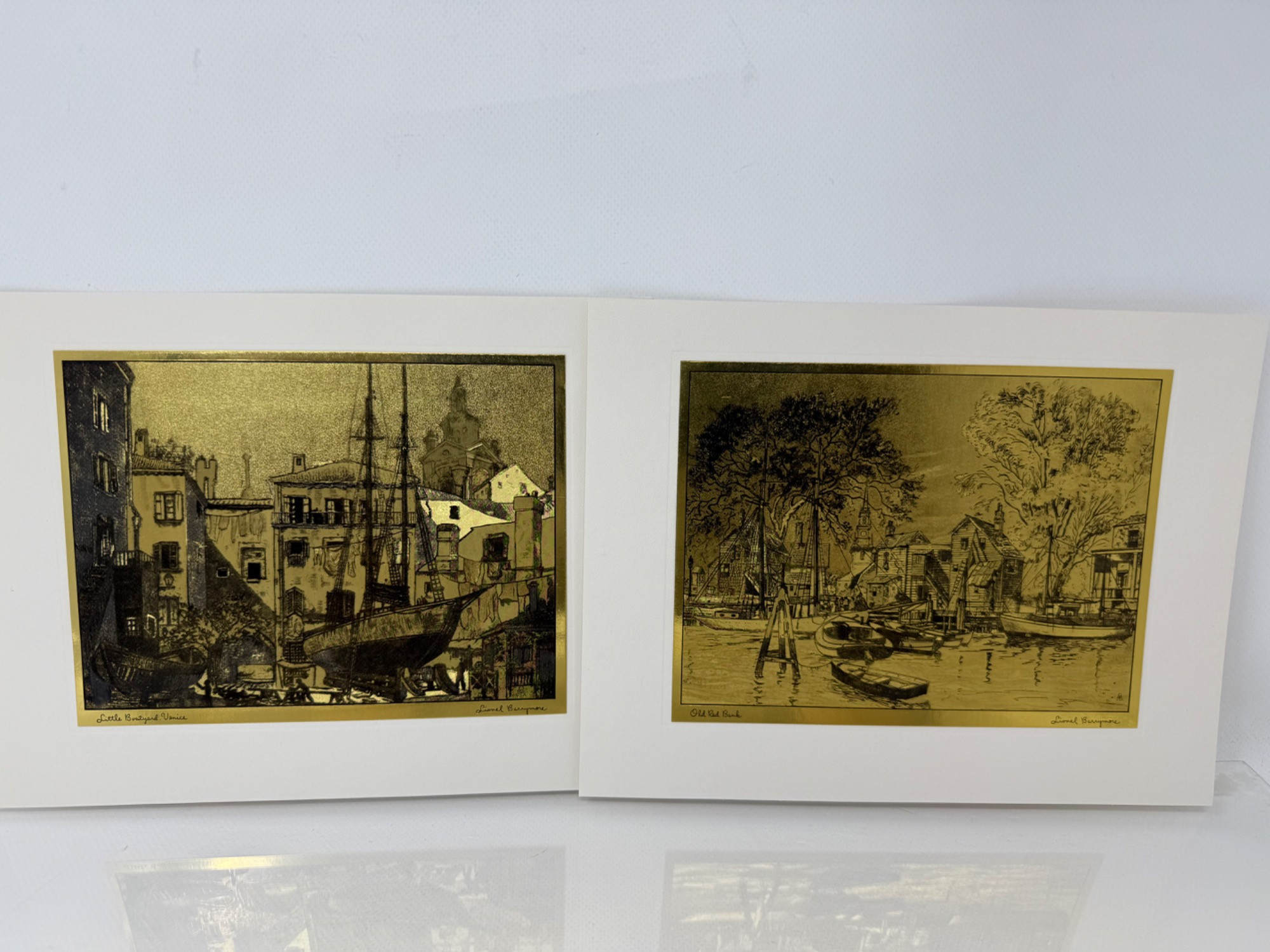 Lionel Barrymore Gold Etched Prints-Four Total Four Matted prints. Gold etched on paper. Urban scenes by Lionel Barrymore