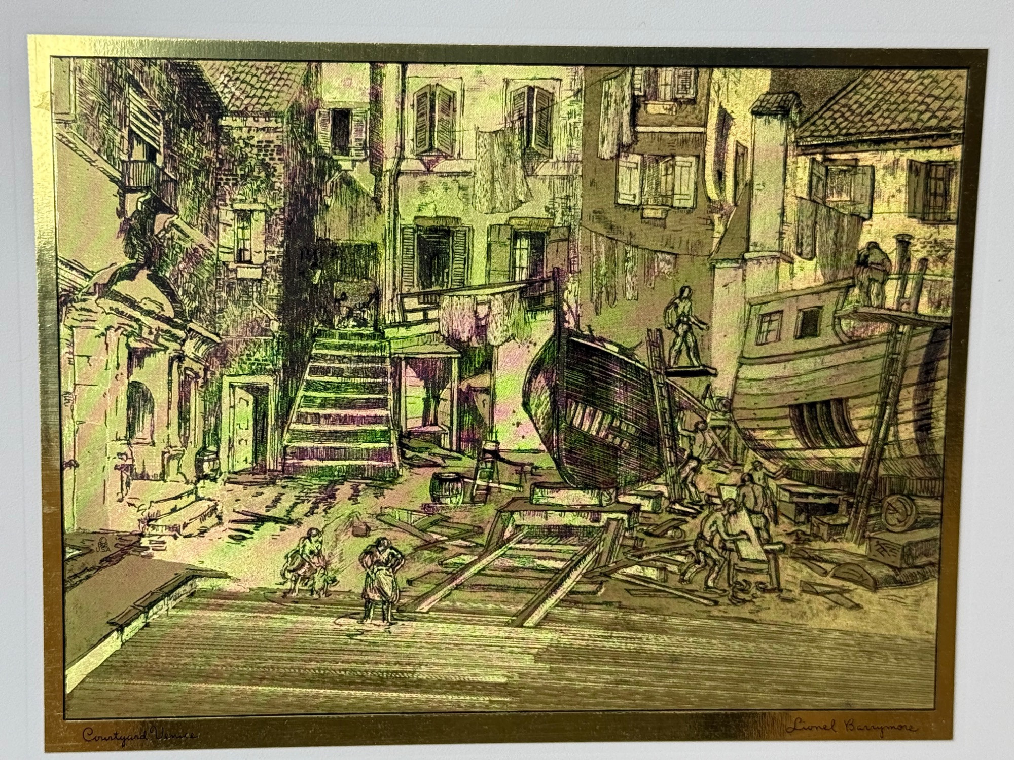 Lot # 30 - Vintage Lionel Barrymore Gold Etched Prints-Four Total
