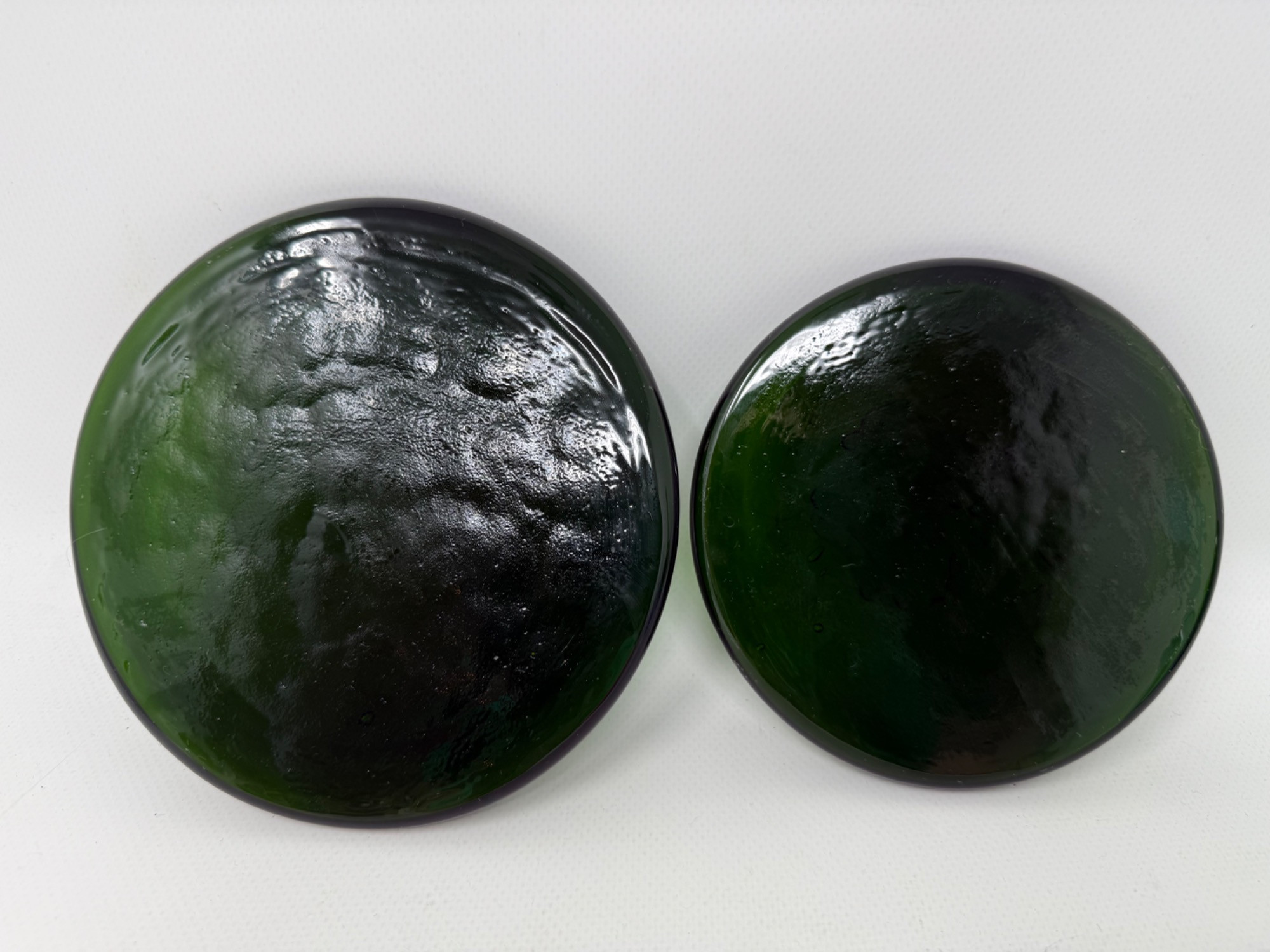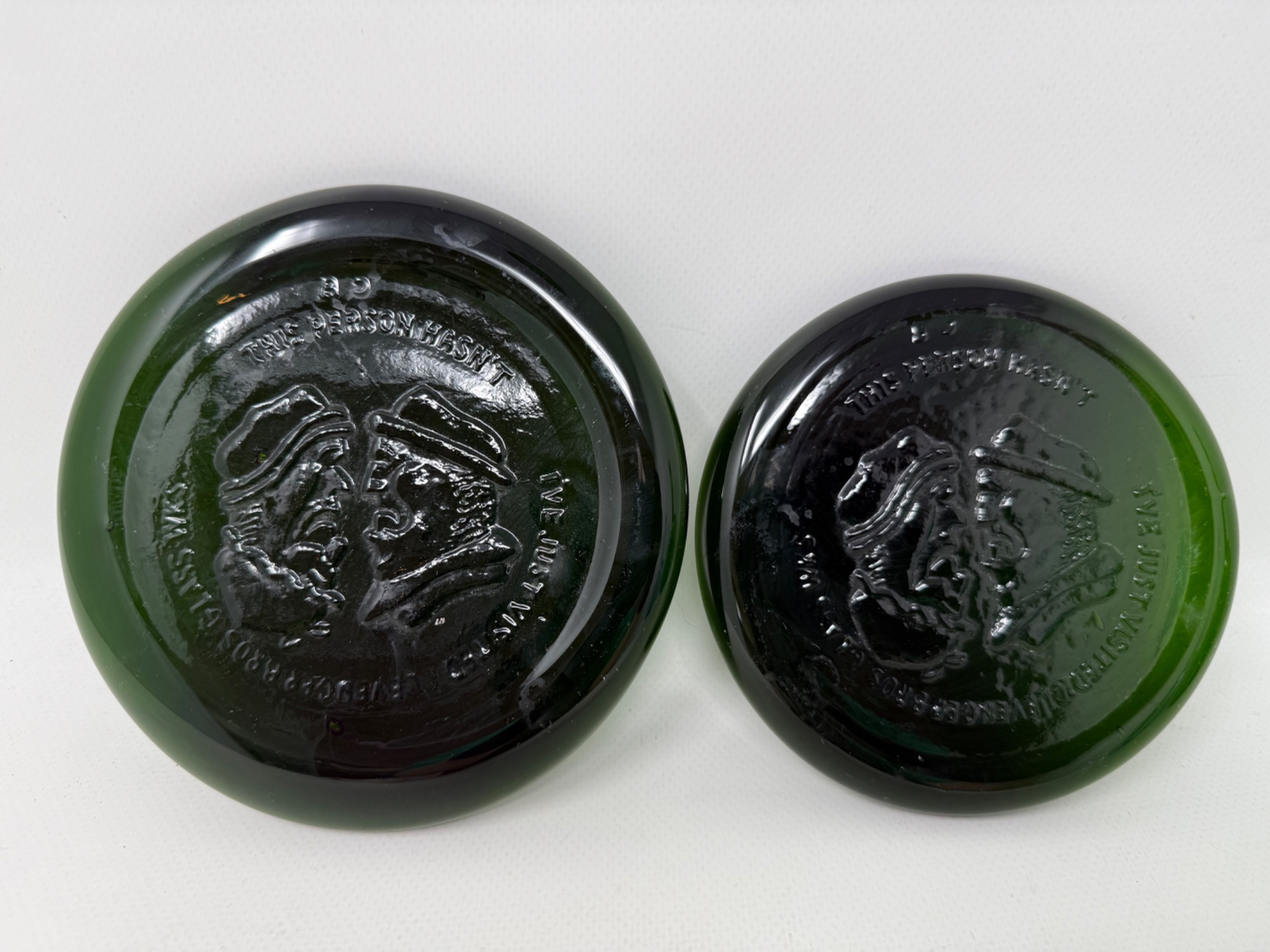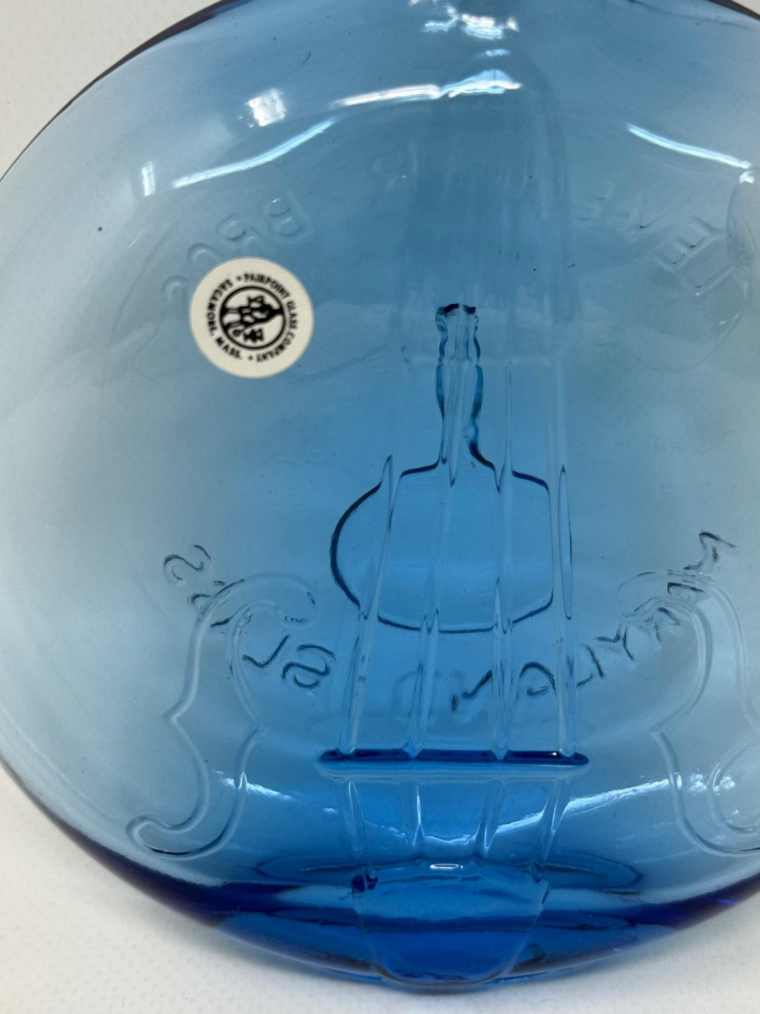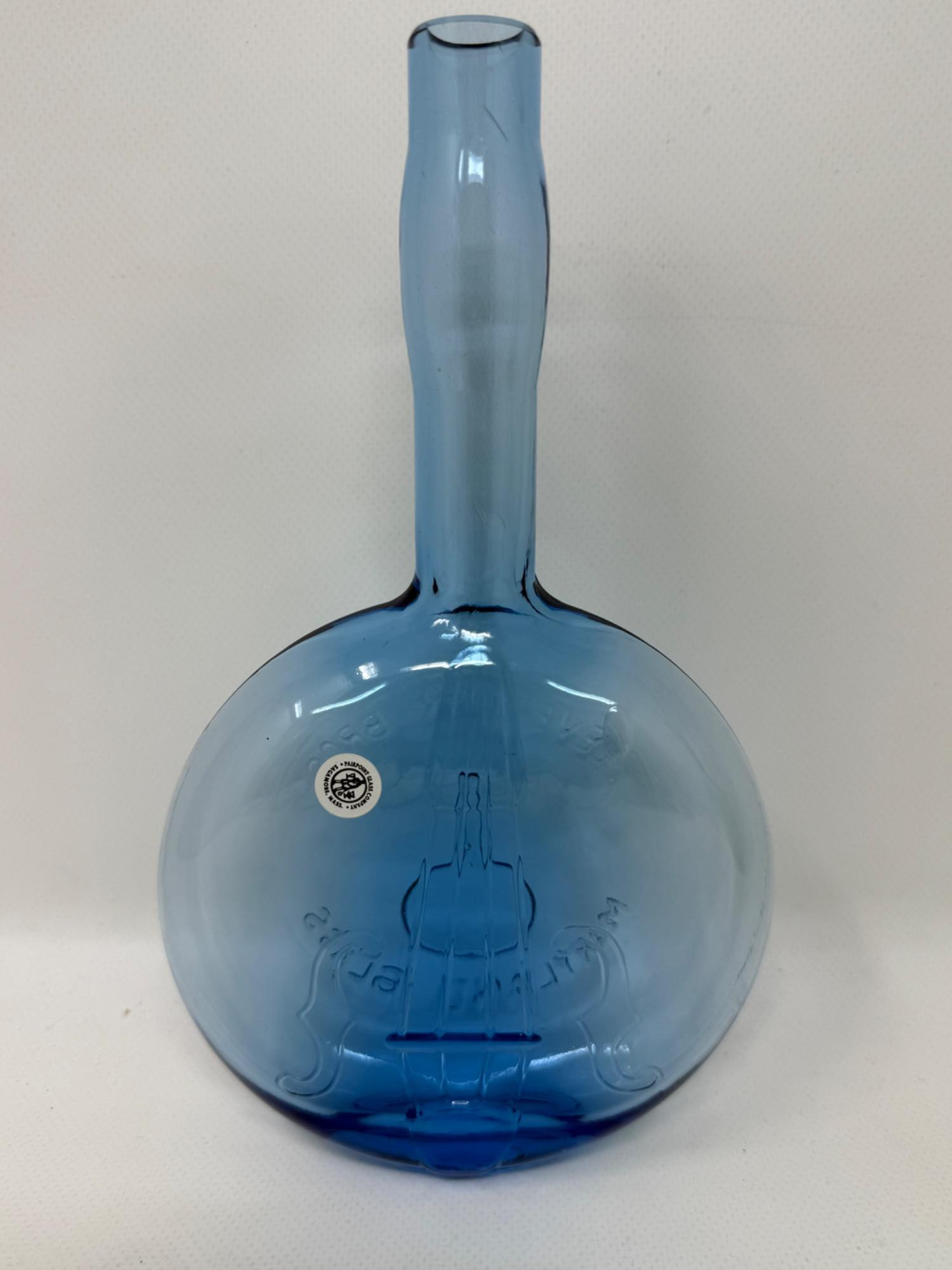 Vintage Cleavenger and Pairpoint glass banjo and violin bottles. Two glass discs with embossed faces. Souvenir discs. 5.5in wide Embossed bottle with USA Centennial