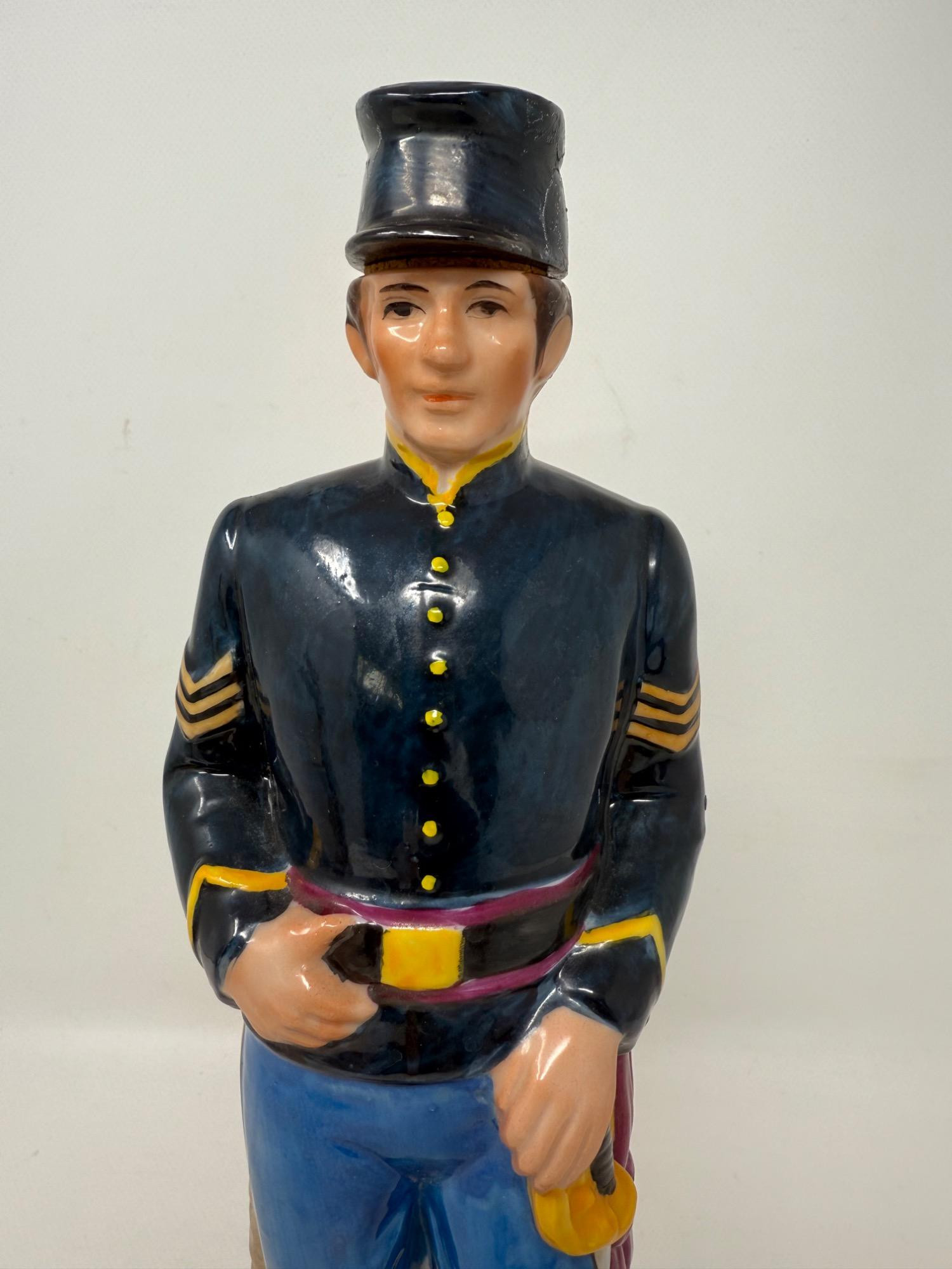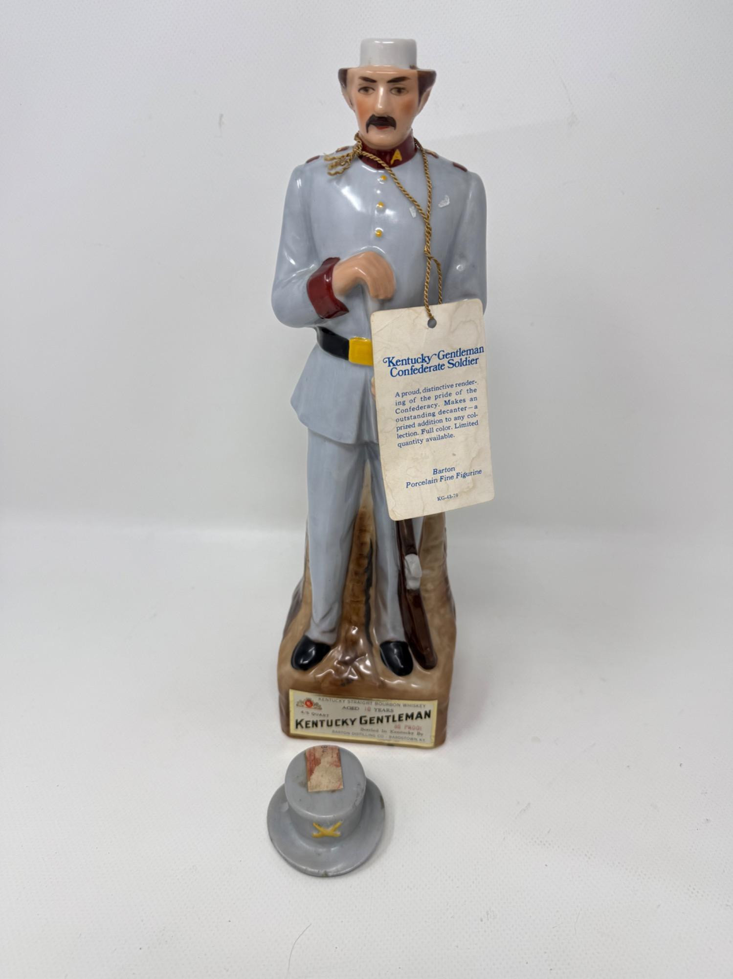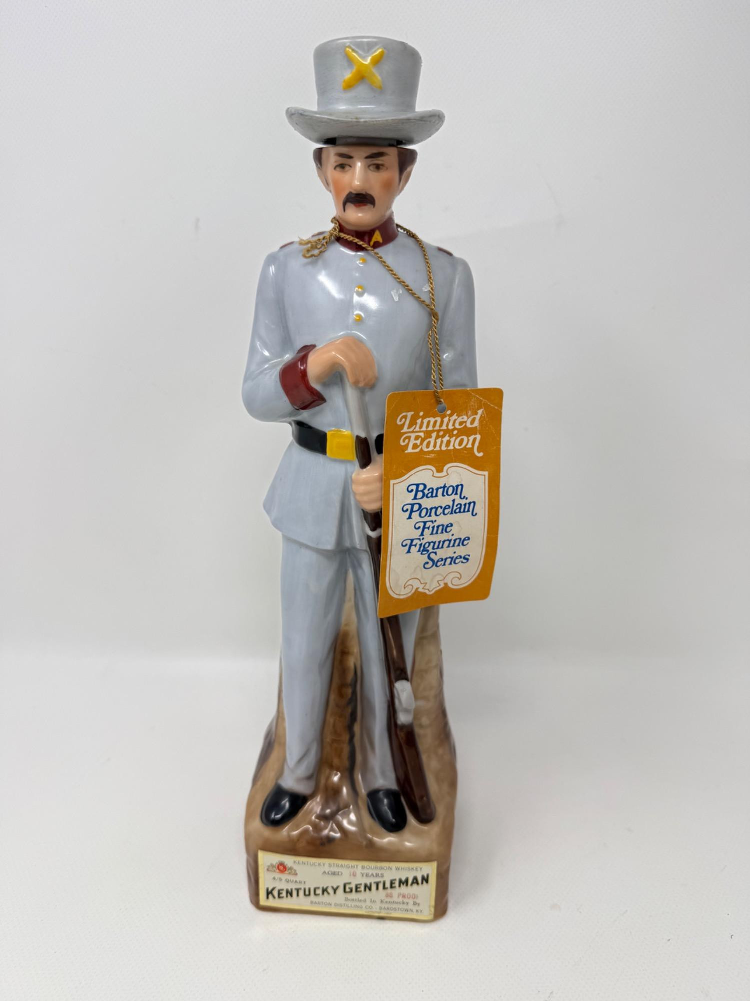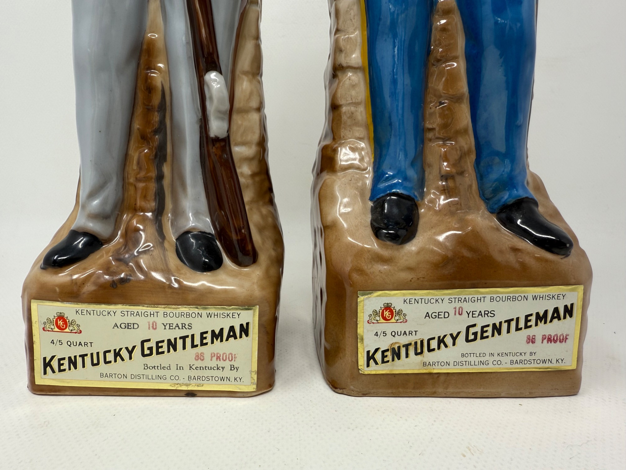 Jim Beam Decanters with Civil War Soldiers. Barton Ceramic bottles for Kentucky Gentleman Bourbon 13.5 and 14.25in tall