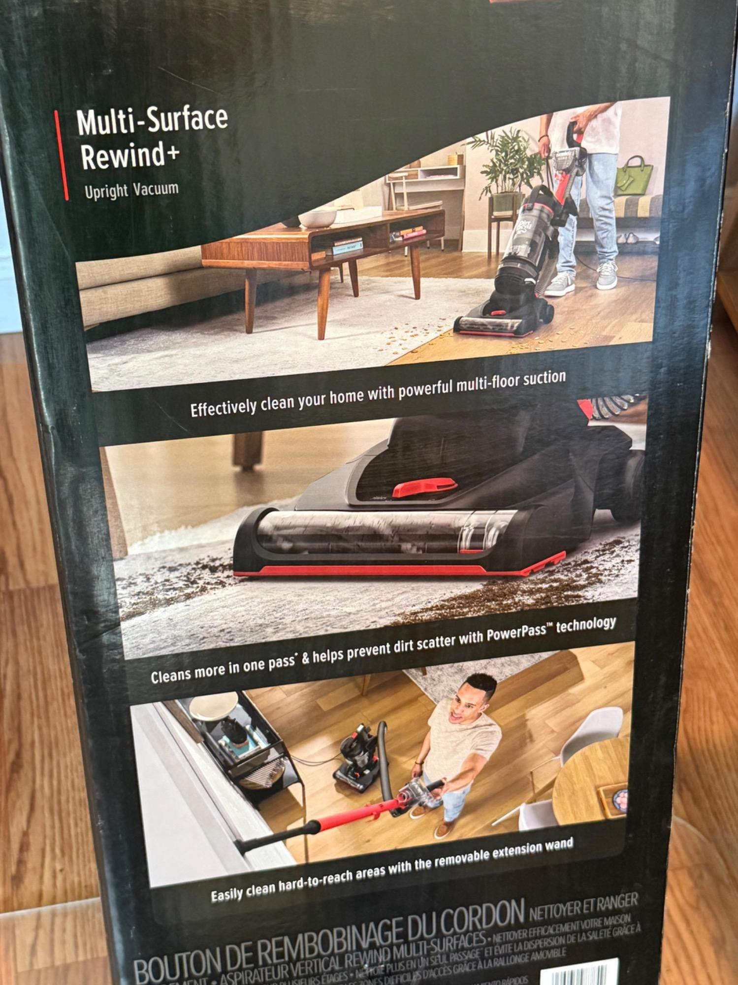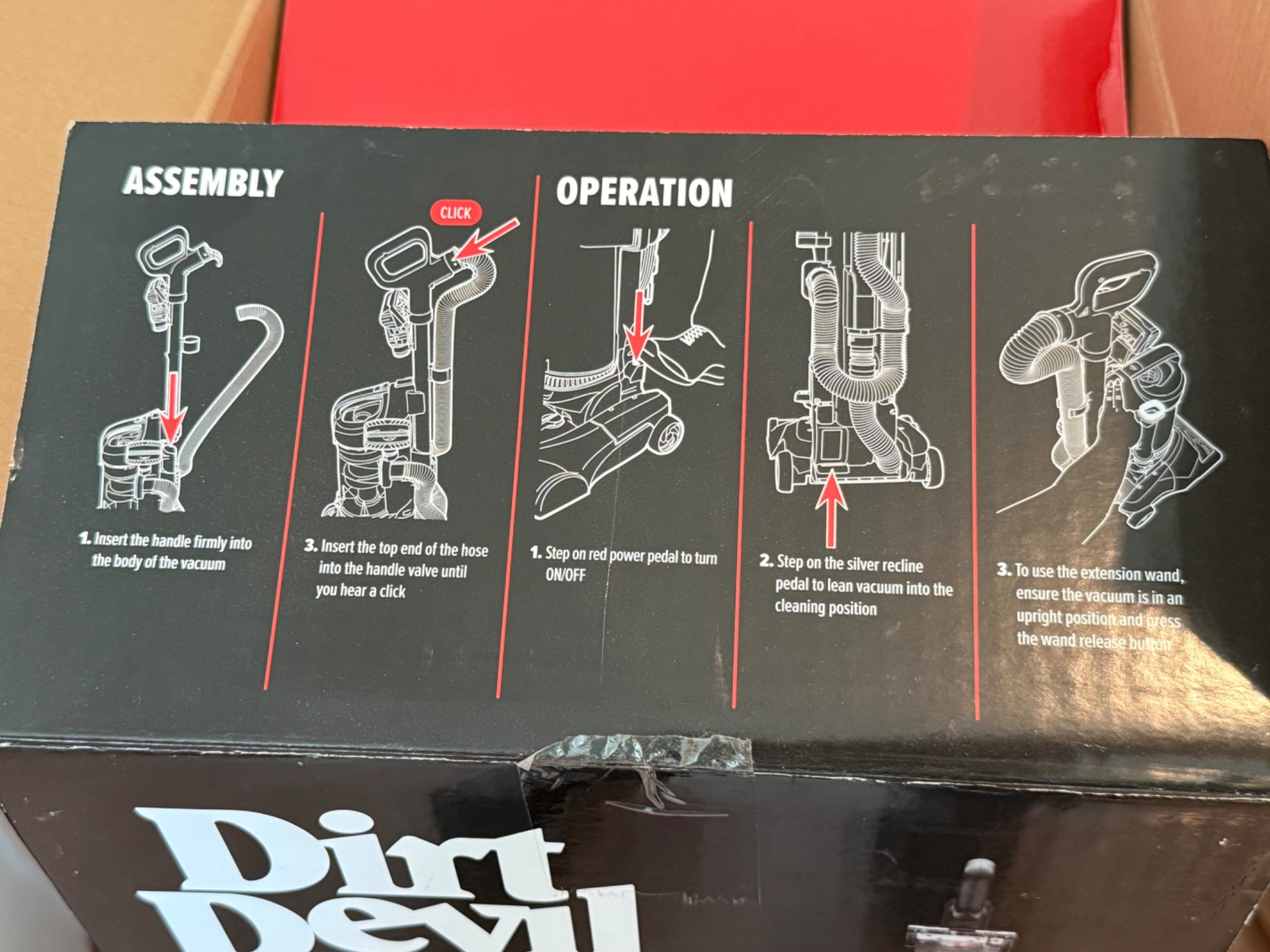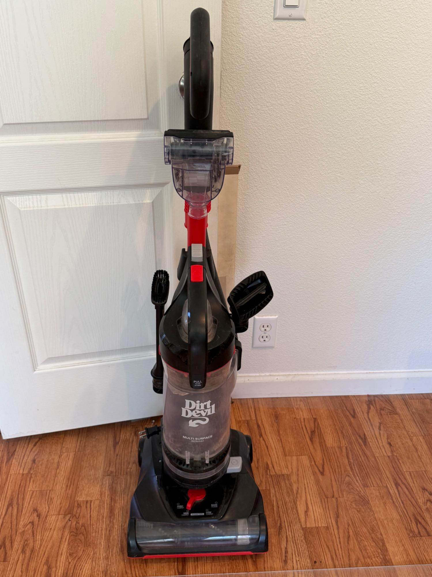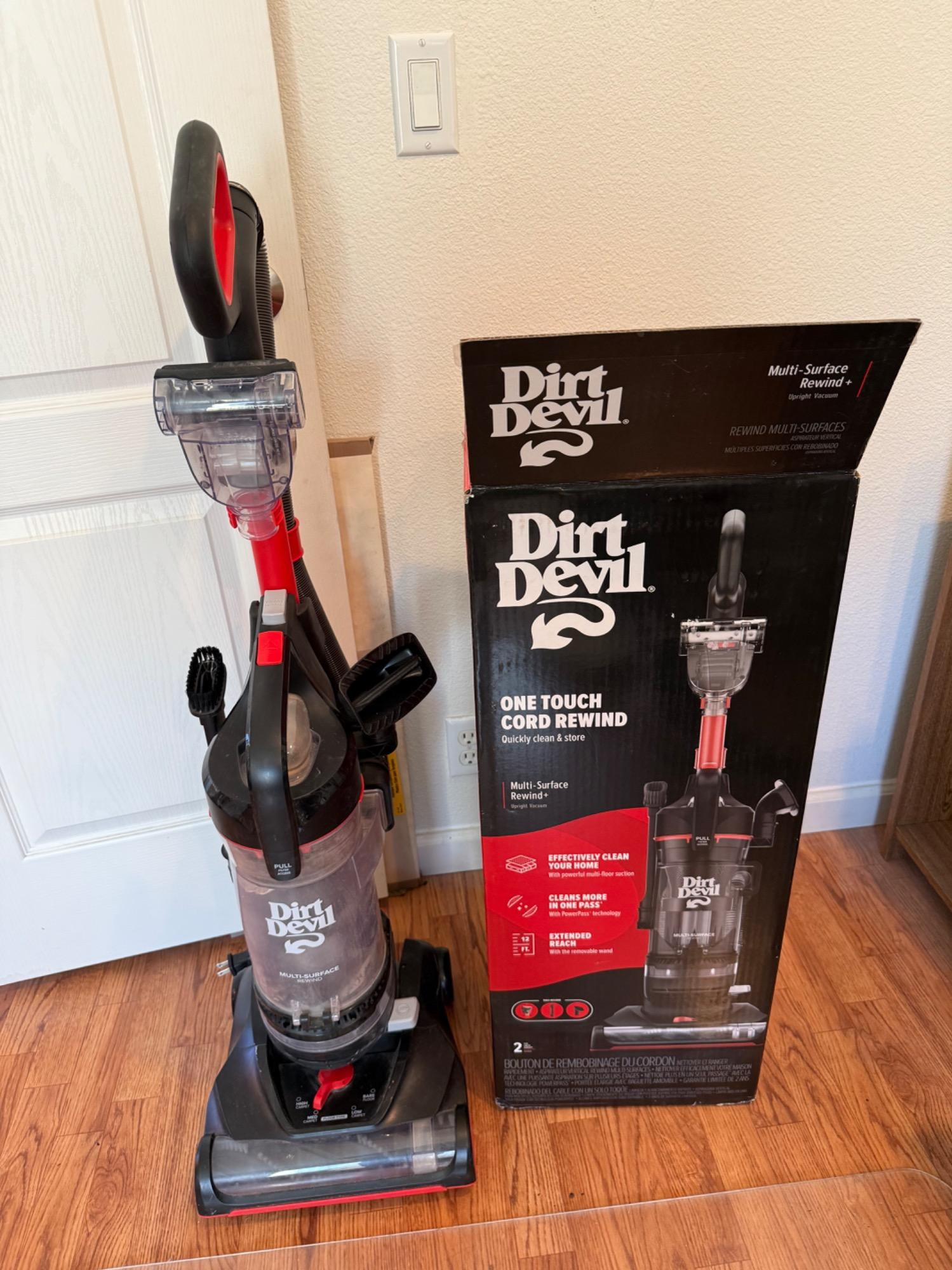 Newer Dirt Devil Vacuum With Original Box. One touch cord rewind. Multi surface feature. Hardly used. Stair and crevice attachments