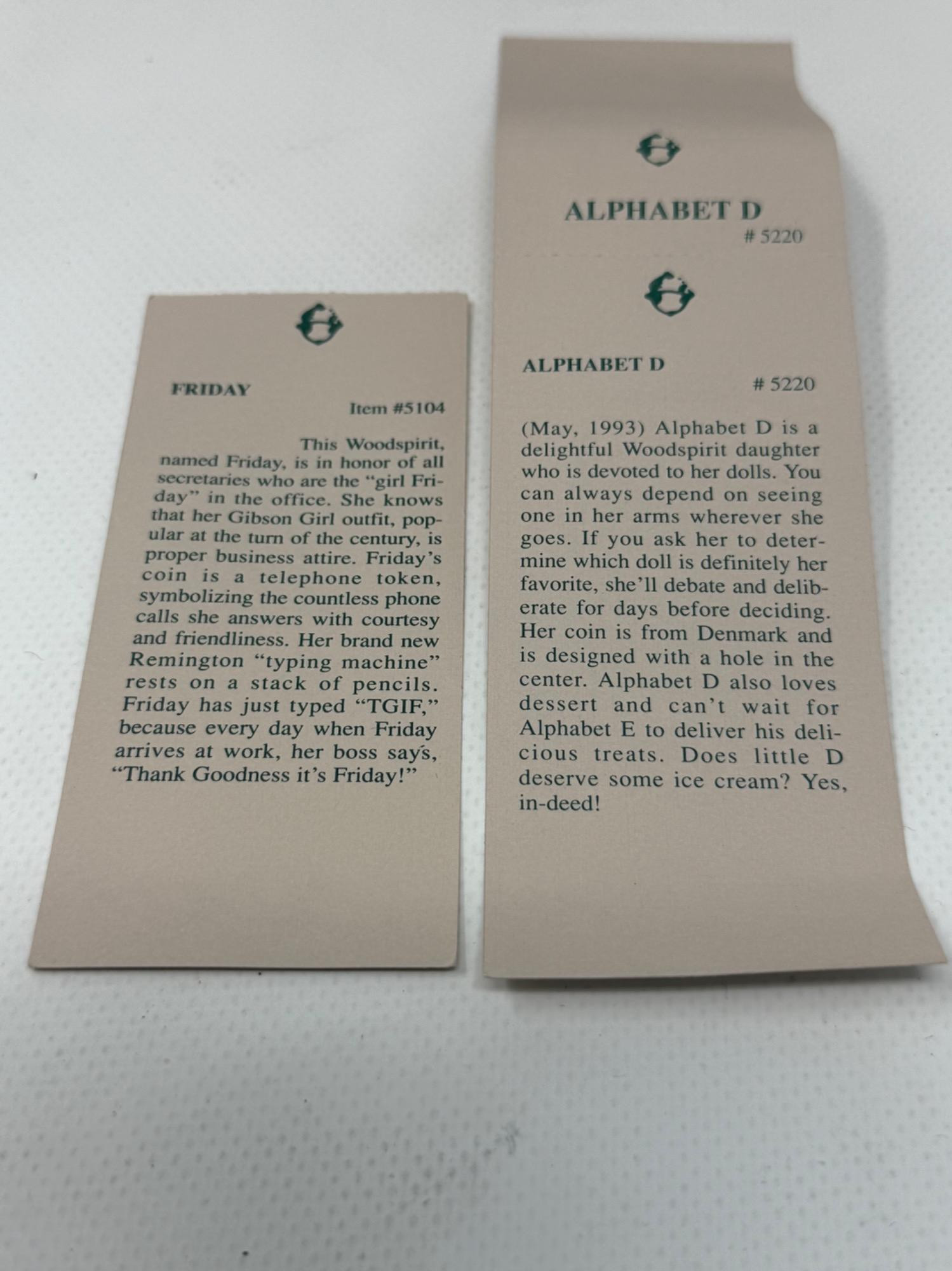 "Friday" and "Letter D" Figures by T. Clark-COA Included On Both Original boxes included. Friday is 6in tall, 3.5in wide Letter D is 5in tall