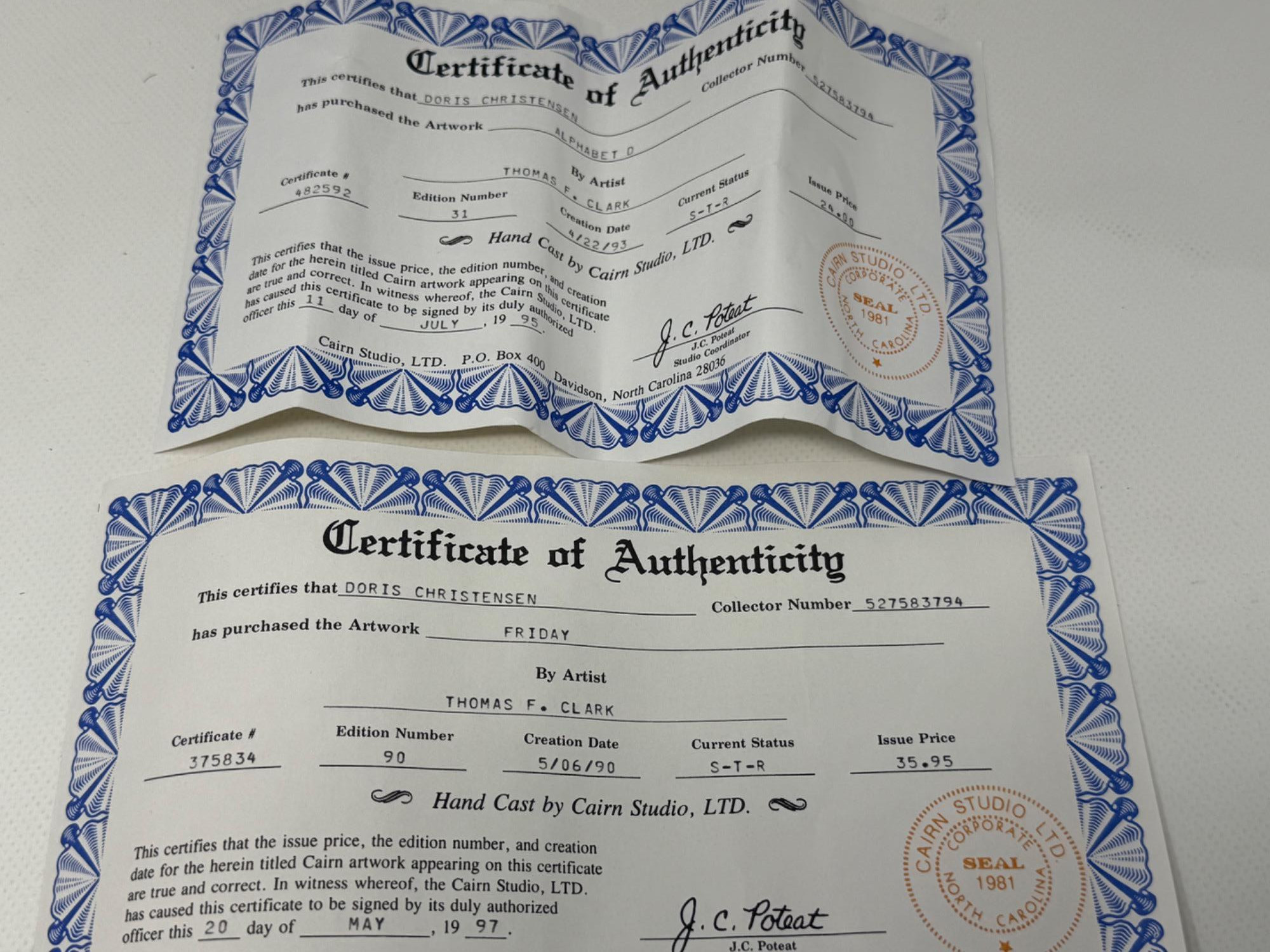 Lot # 42 - "Friday" and "Letter D" Figures by T. Clark-COA Included On Both