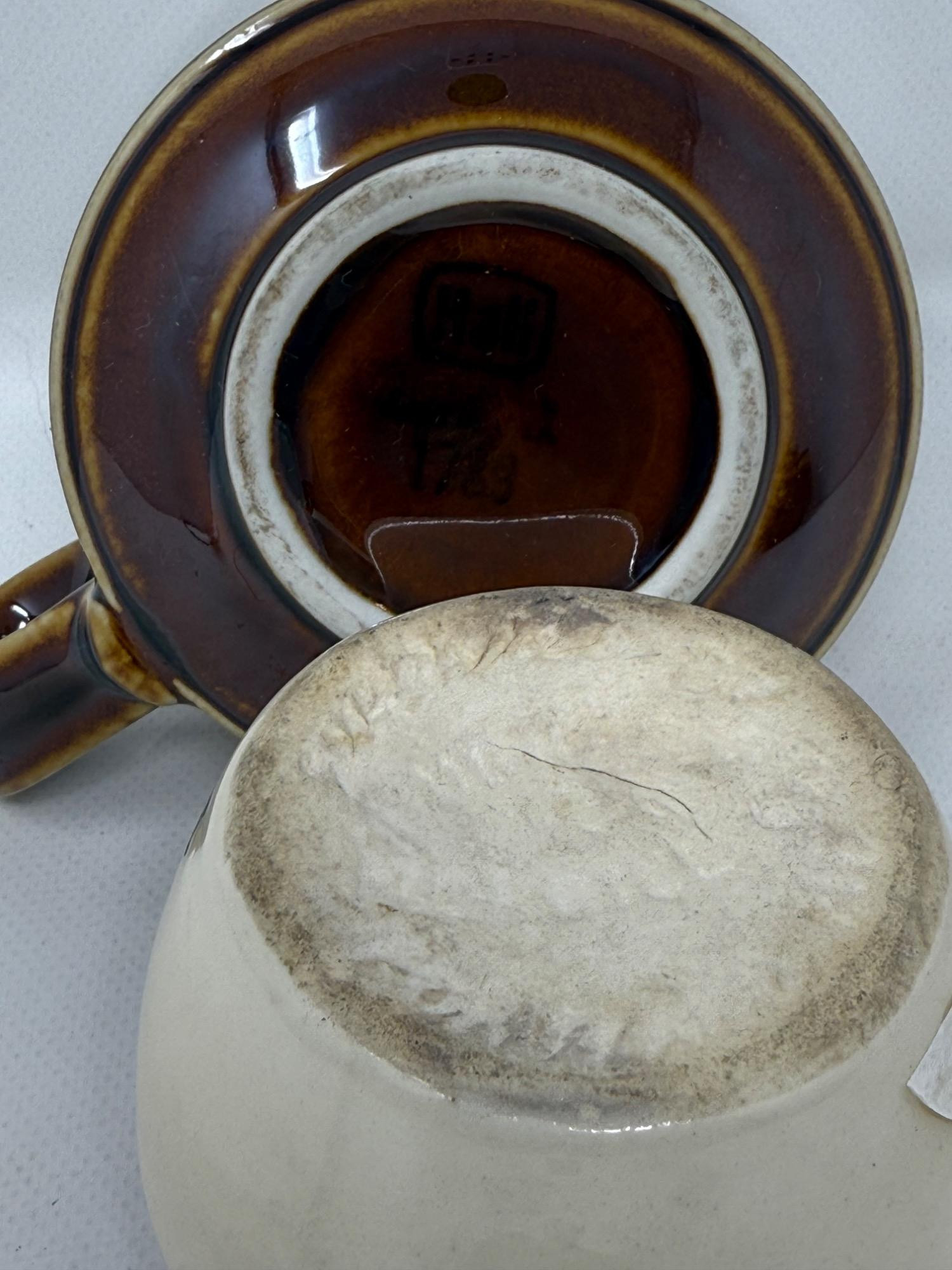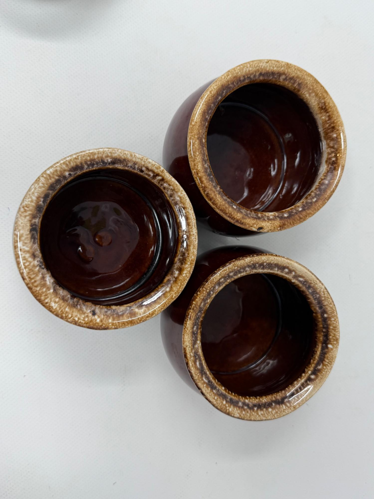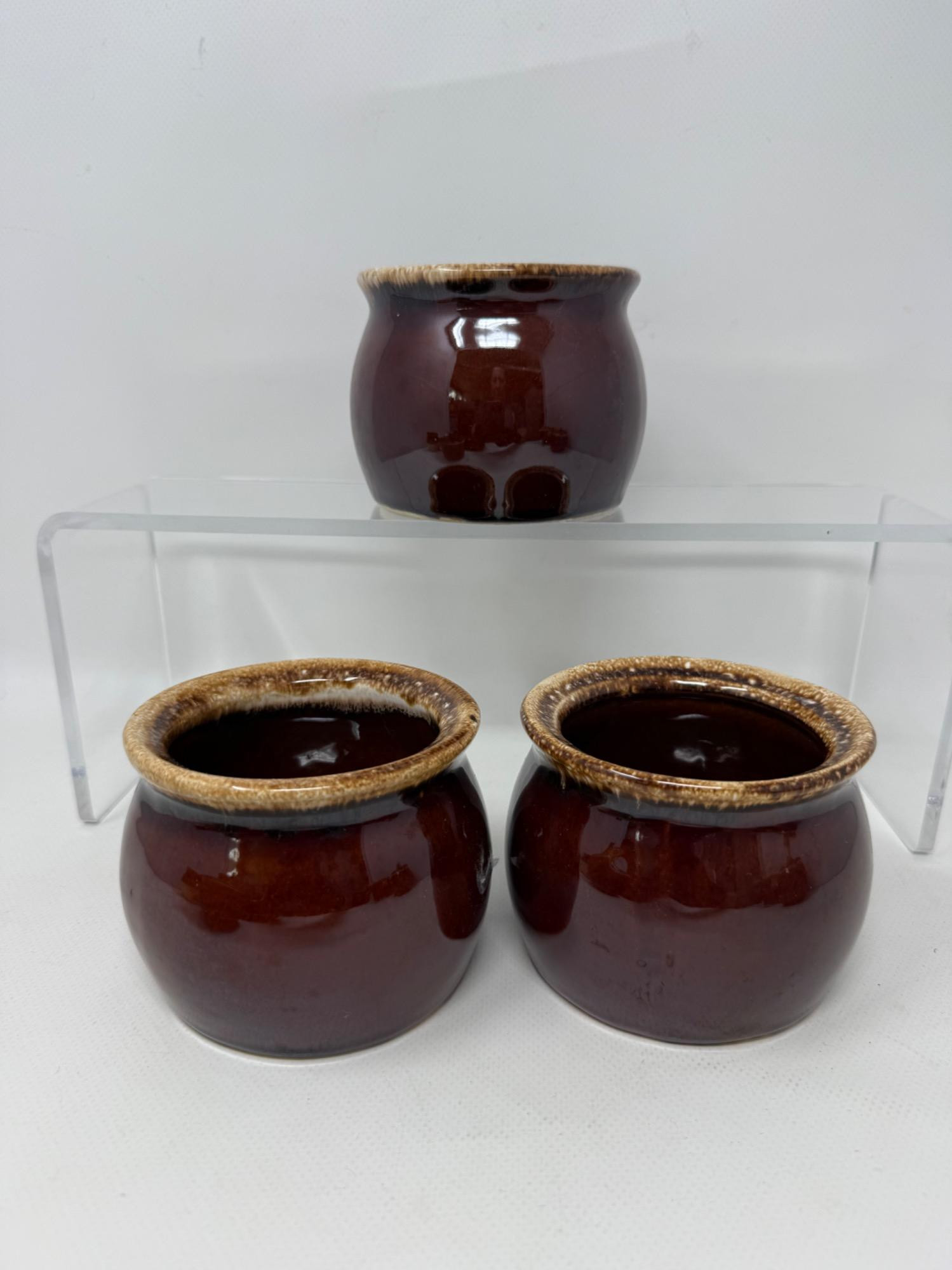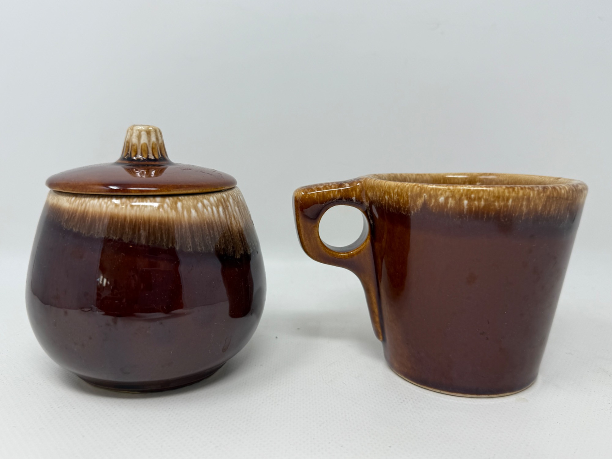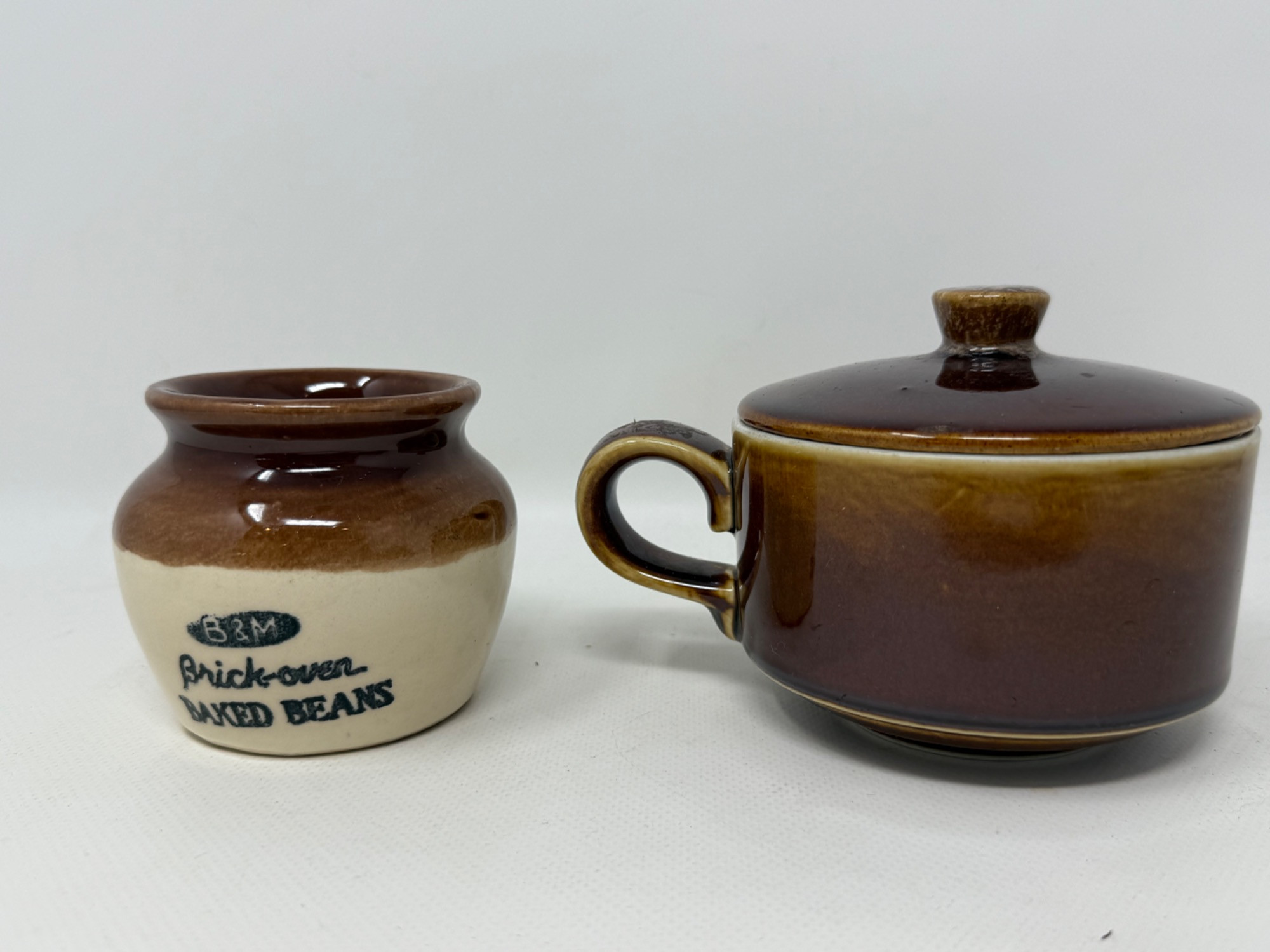 Hull and McCoy Vintage Pottery Dishes-Butter Dish, sugar bowl, mug, bean crock. Soup mug with lid. 3 matching crocks