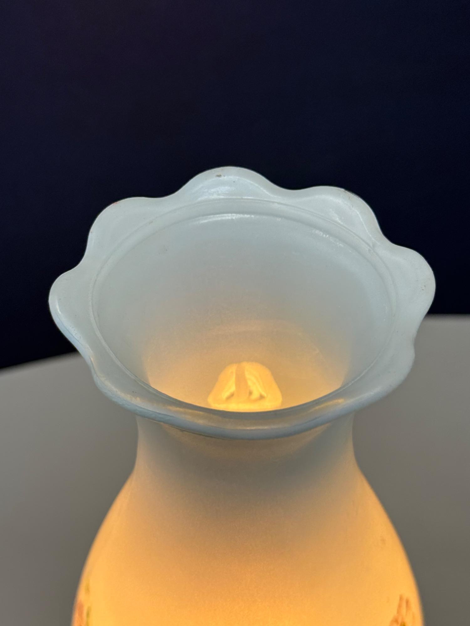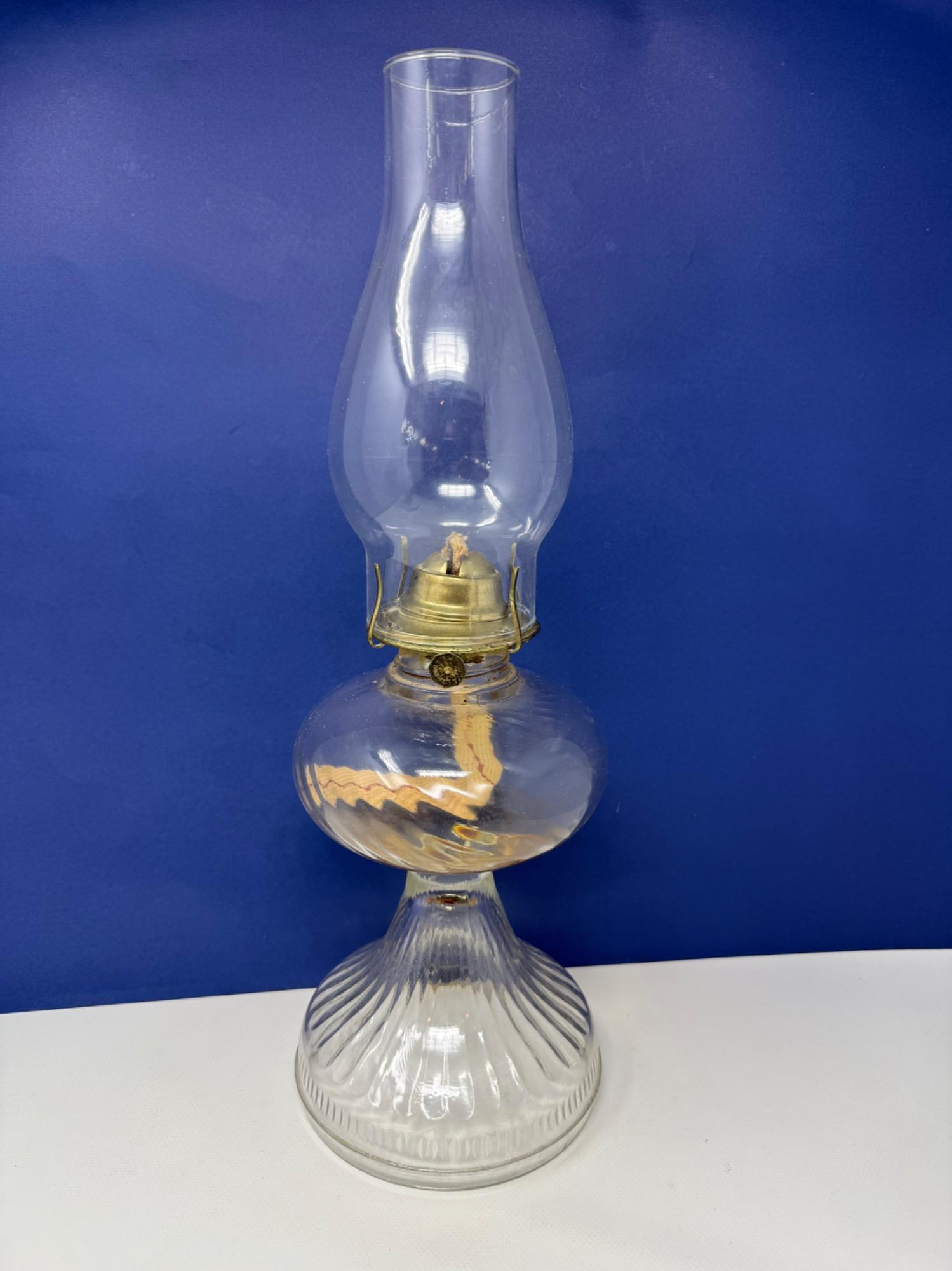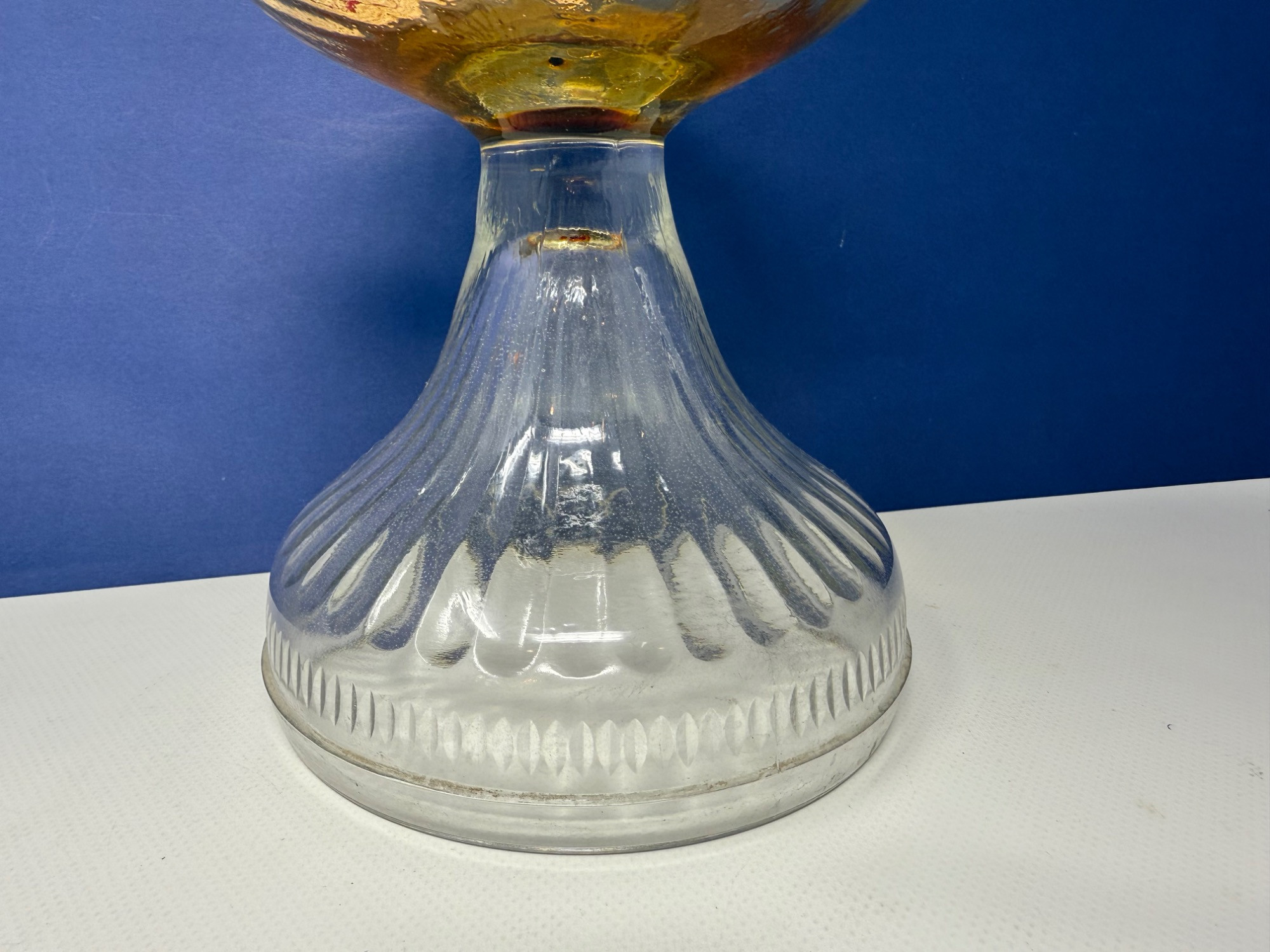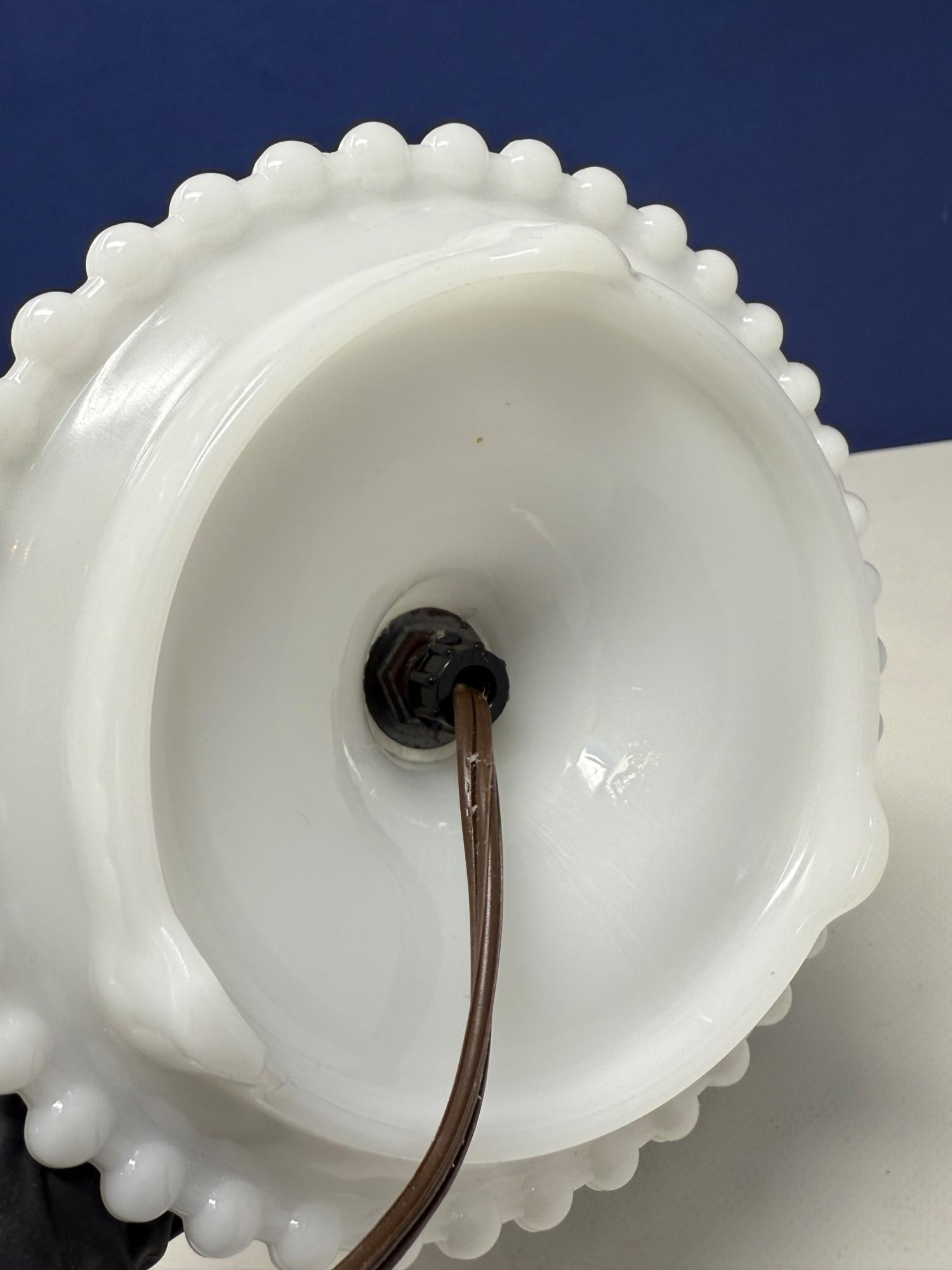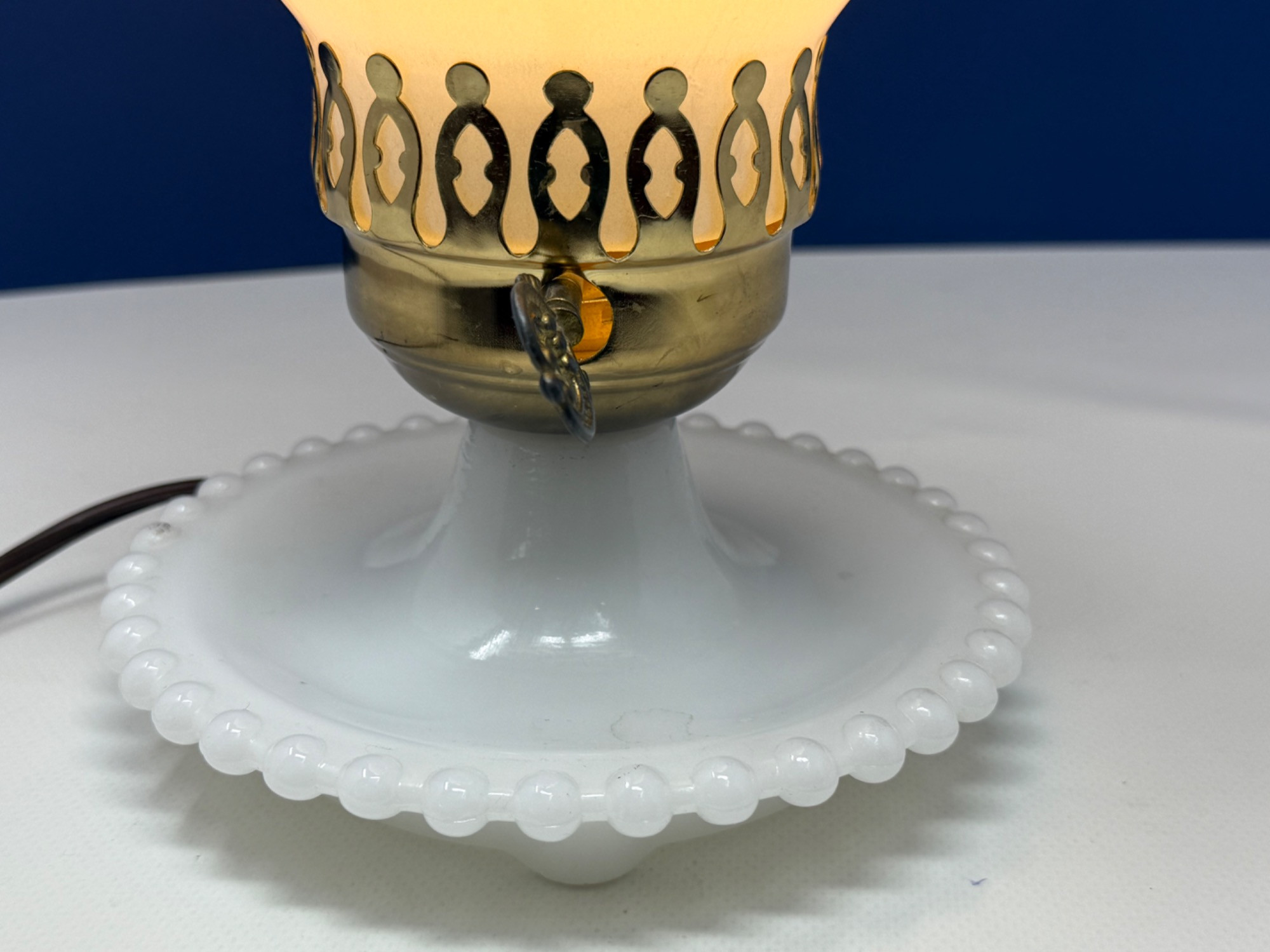 Two Hurricane Lamps-One Hand Painted Electric Lamp Tallest lamp is 18in tall. Extra wick The milk glass lamp is 13.25in tall. Converted to an electric lamp.