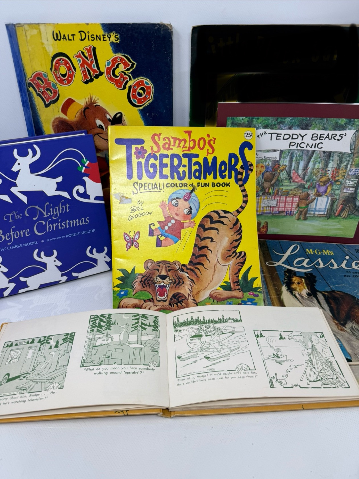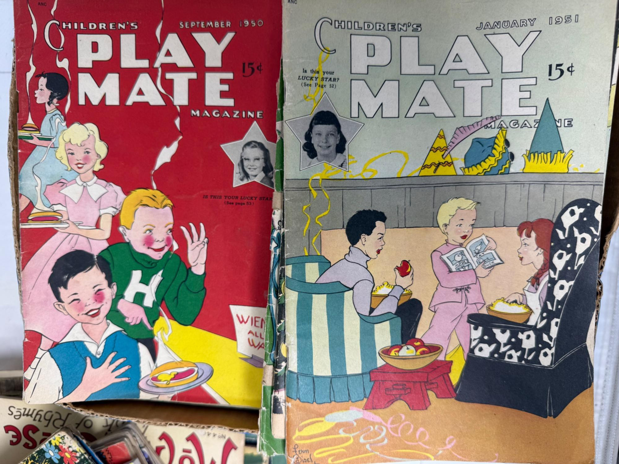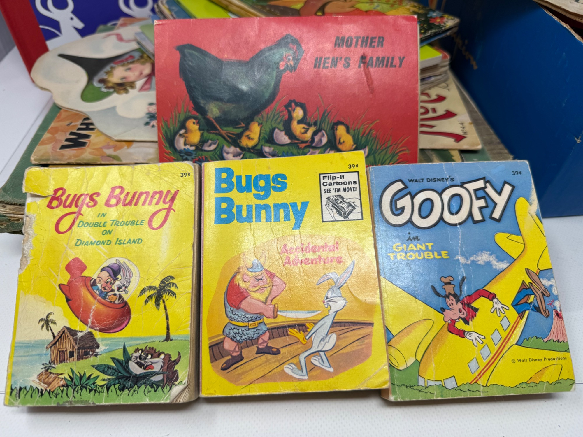 Vintage Children’s Books and Comics Box full of Playmate magazines. Classic children's story books-Bongo, Looney Tunes, Mother Goose, Robinson Crusoe and more.