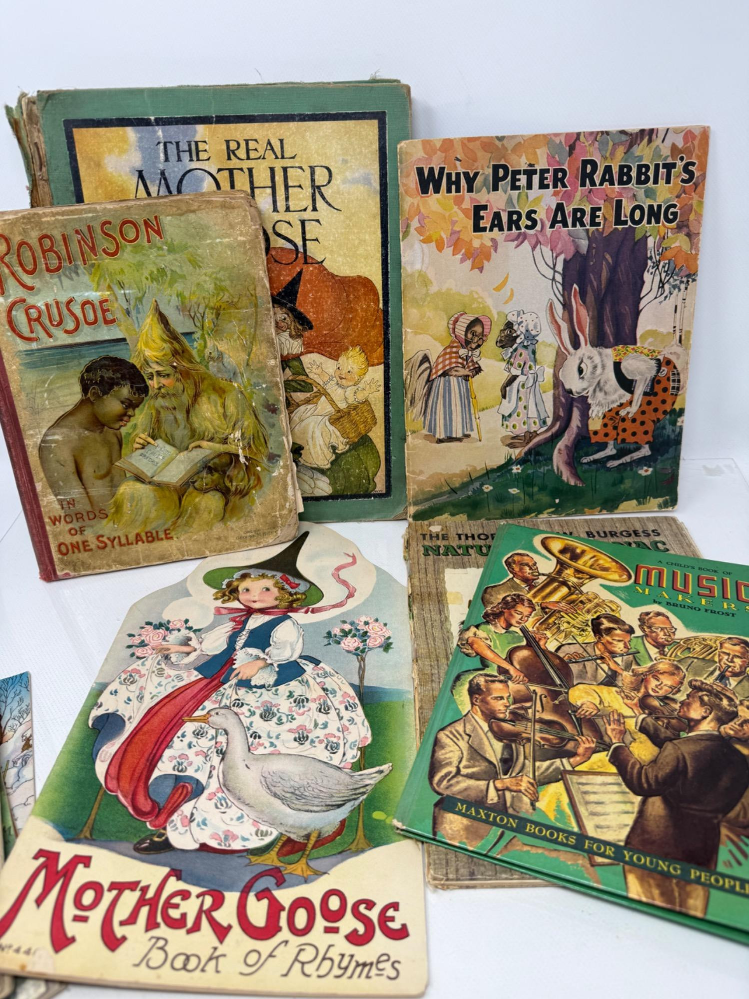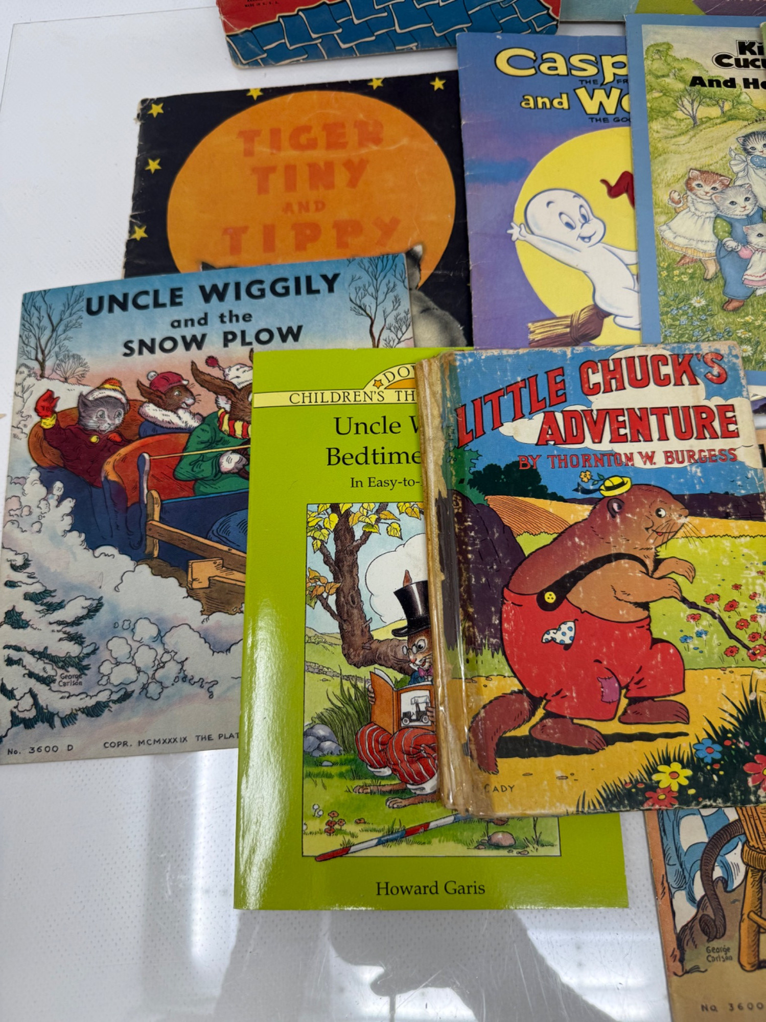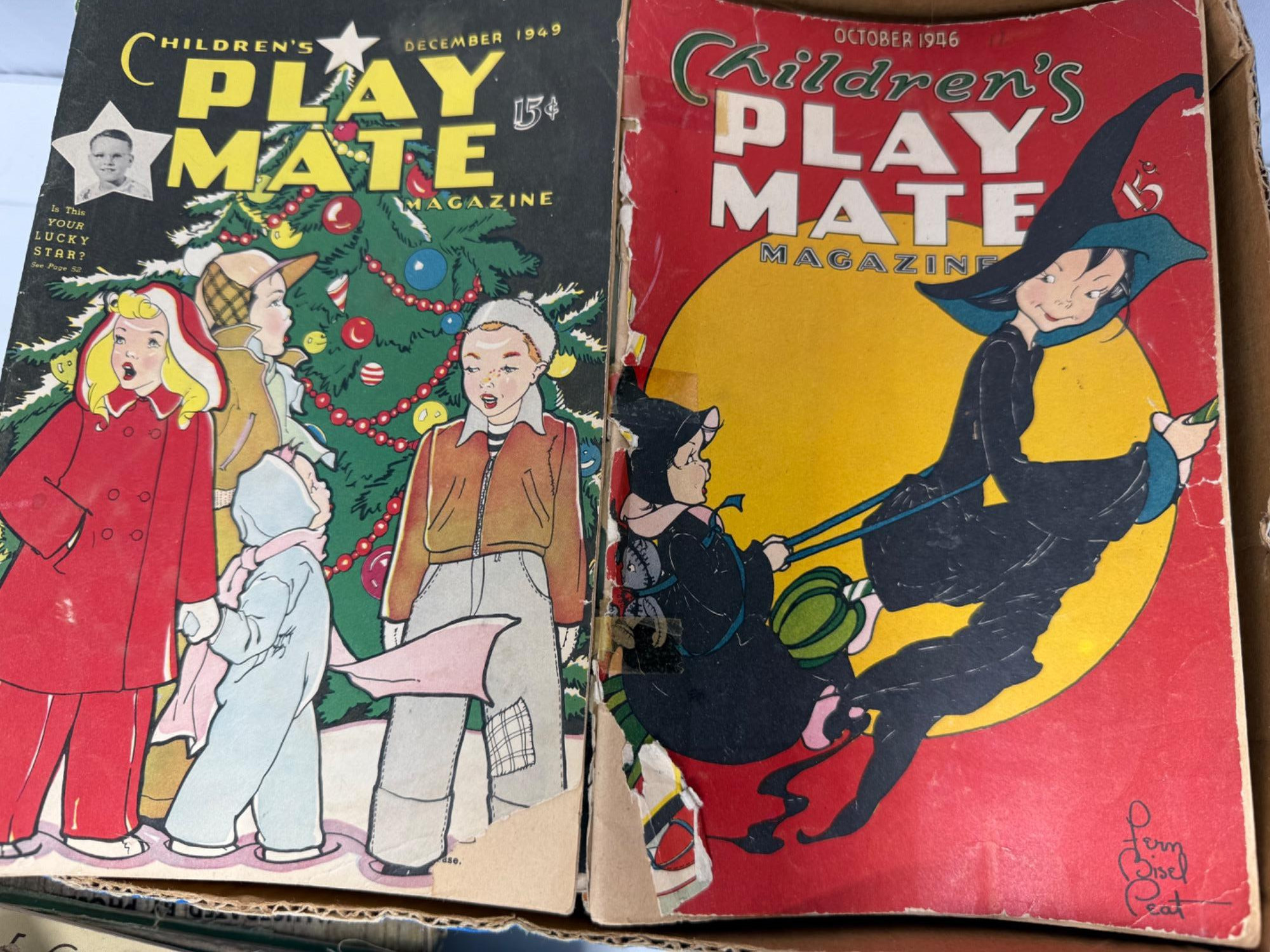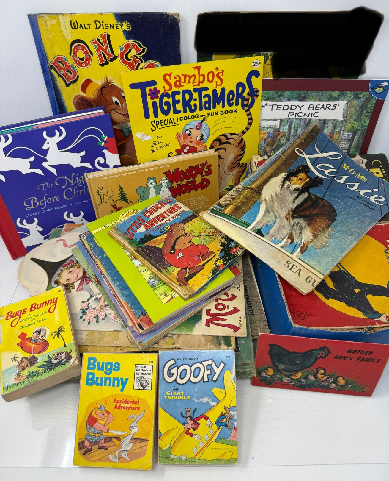 Vintage Children’s Books and Comics Box full of Playmate magazines. Classic children's story books-Bongo, Looney Tunes, Mother Goose, Robinson Crusoe and more.