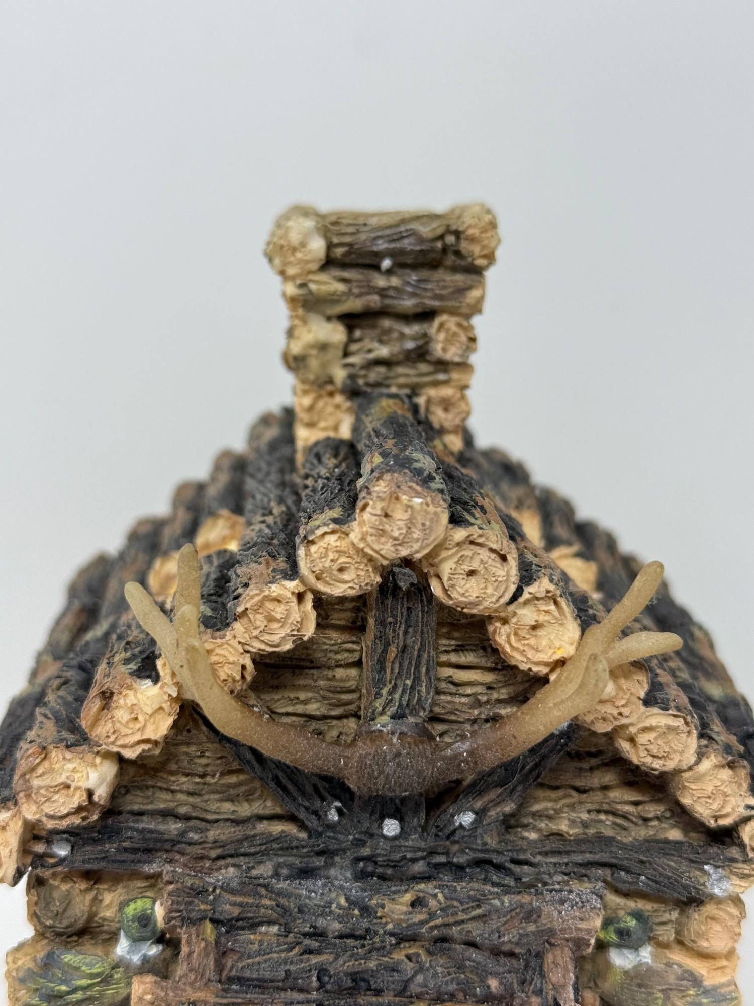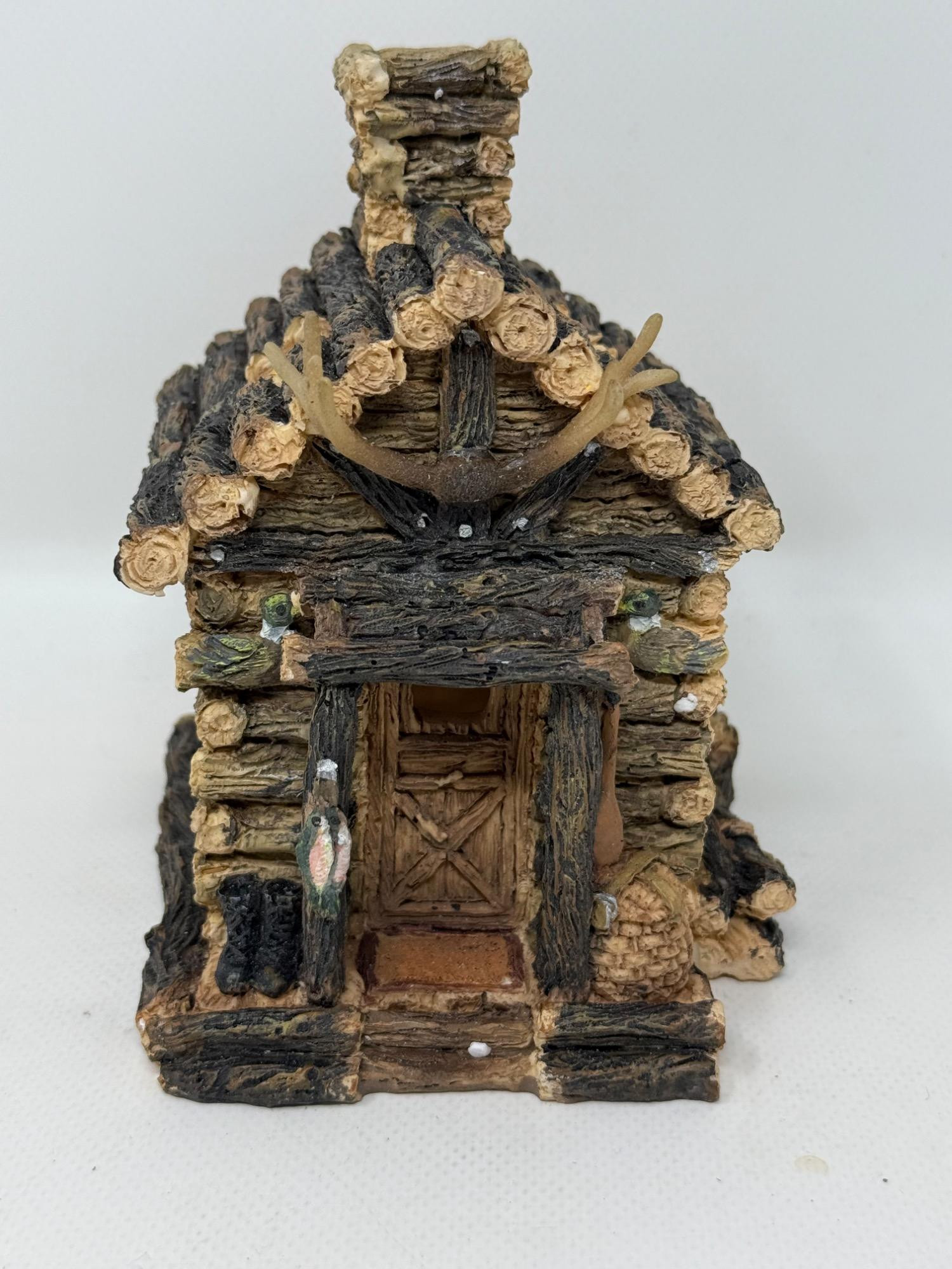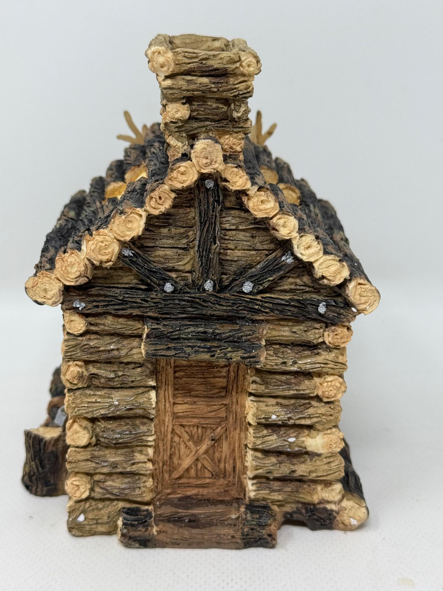 Thomas Clark Collection-Log Cabin, Tree and Animals Resin material hand carved by Thomas Cark. Retired pieces. Log cabin is lamp capable