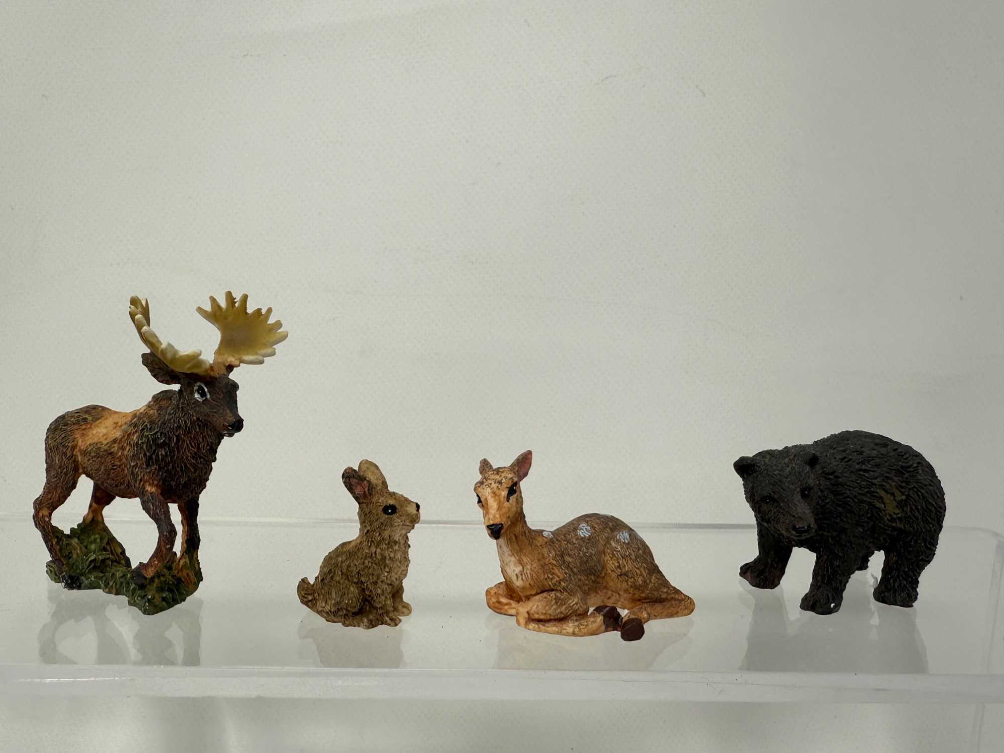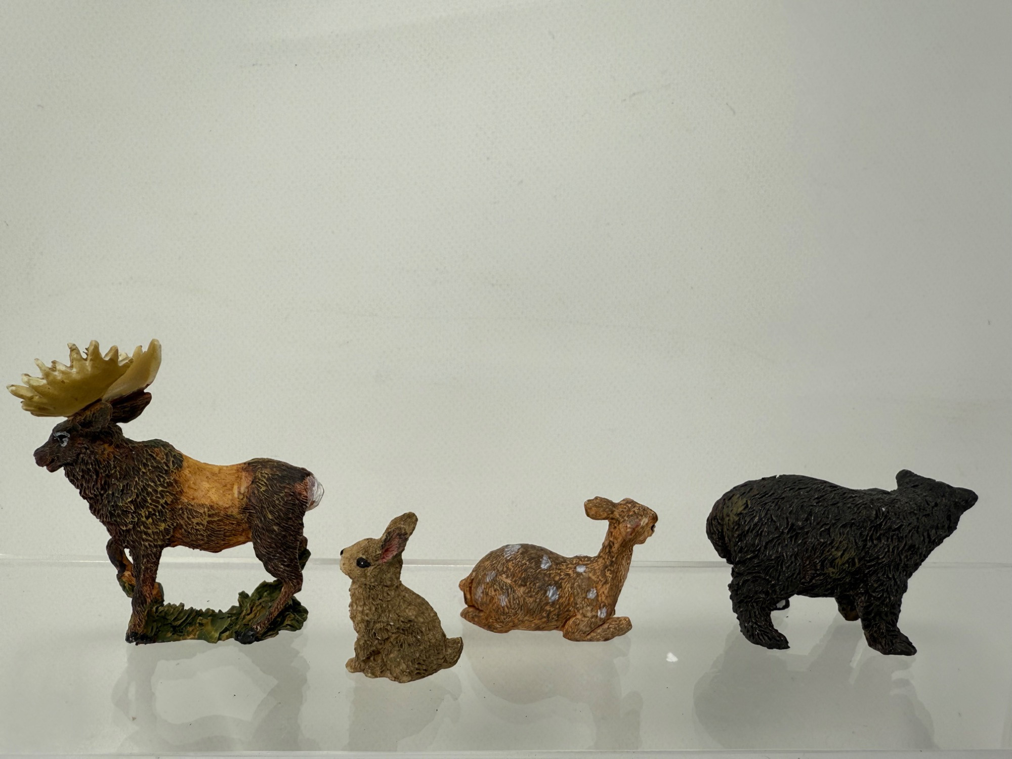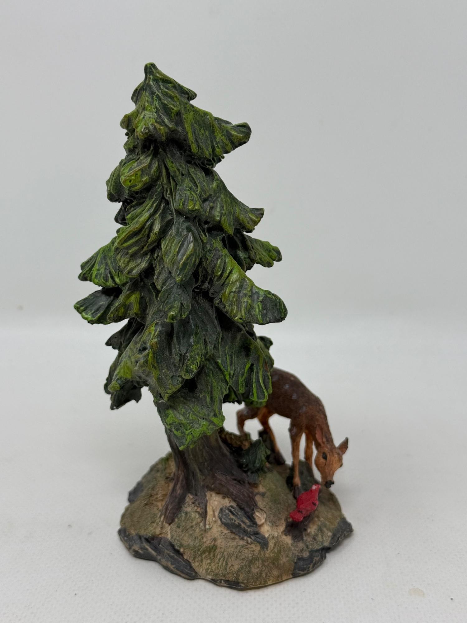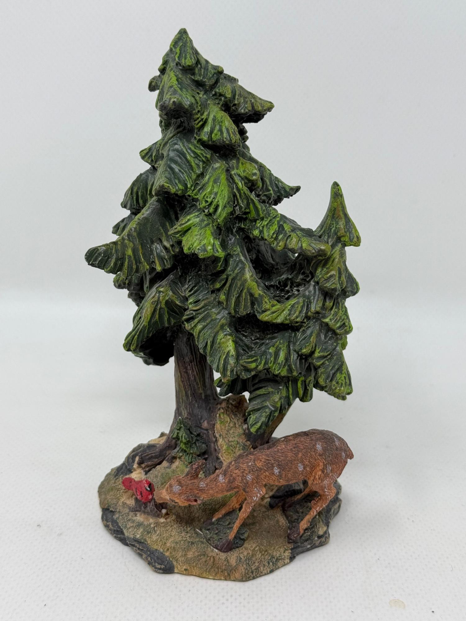 Thomas Clark Collection-Log Cabin, Tree and Animals Resin material hand carved by Thomas Cark. Retired pieces. Log cabin is lamp capable