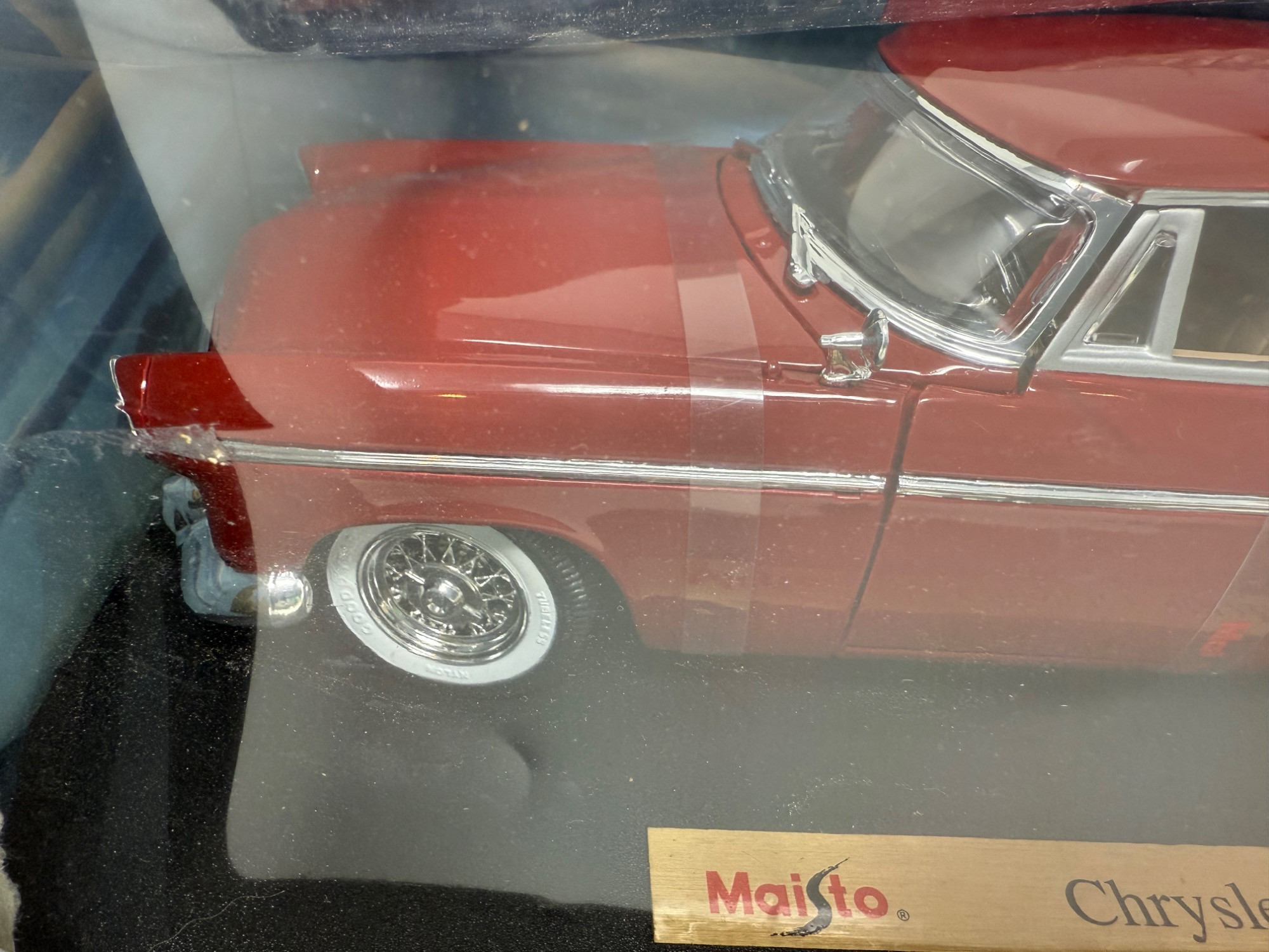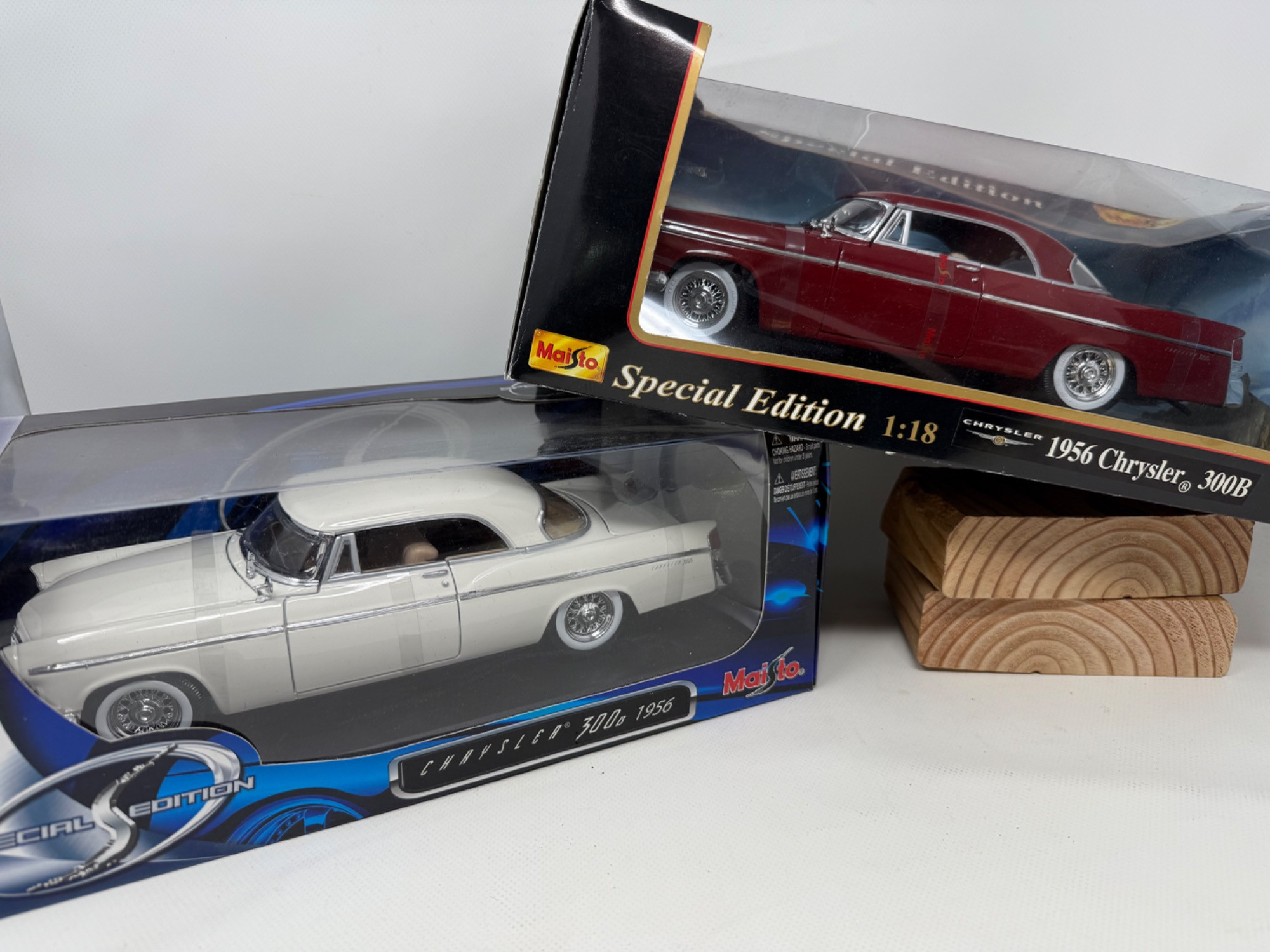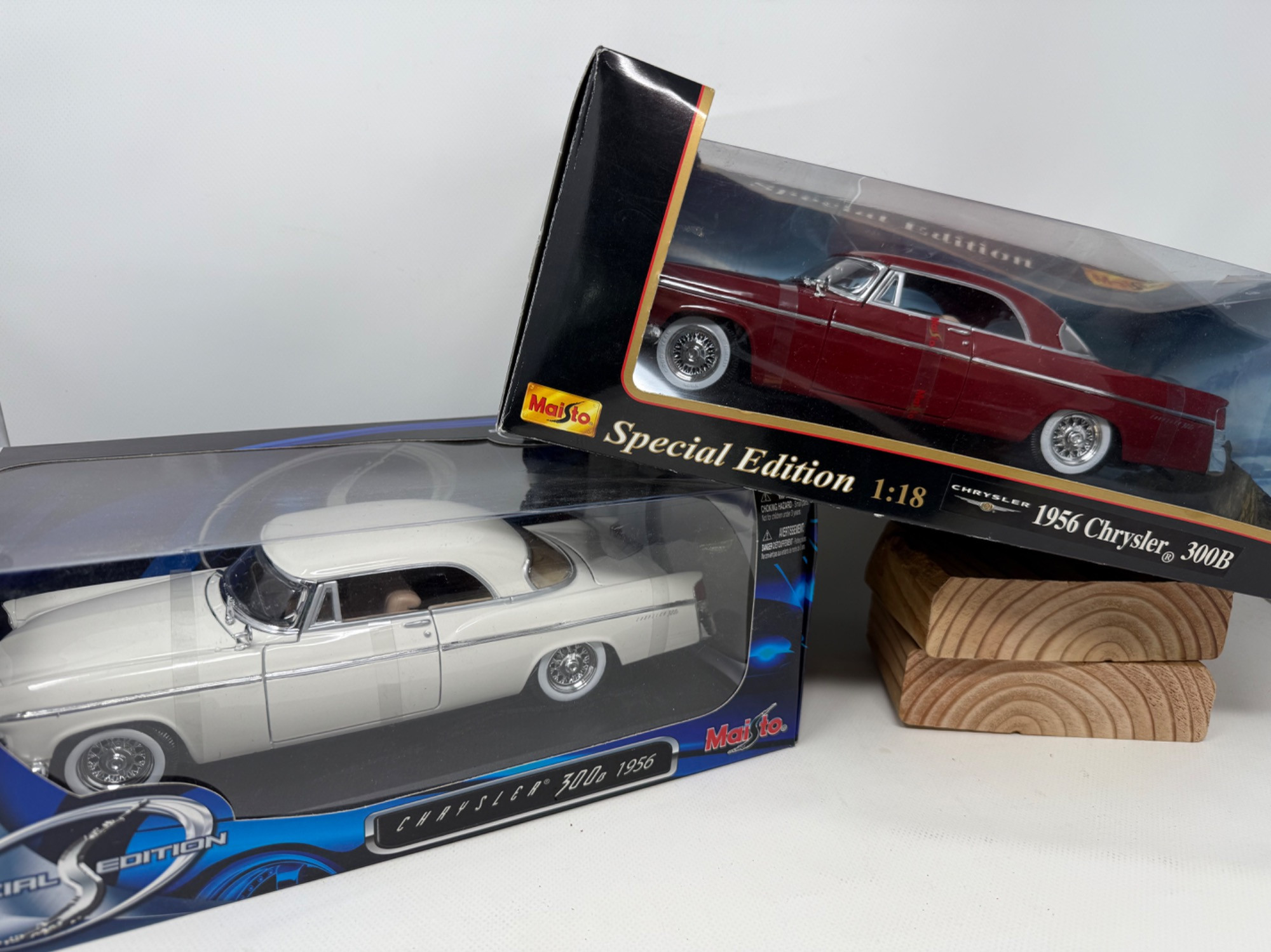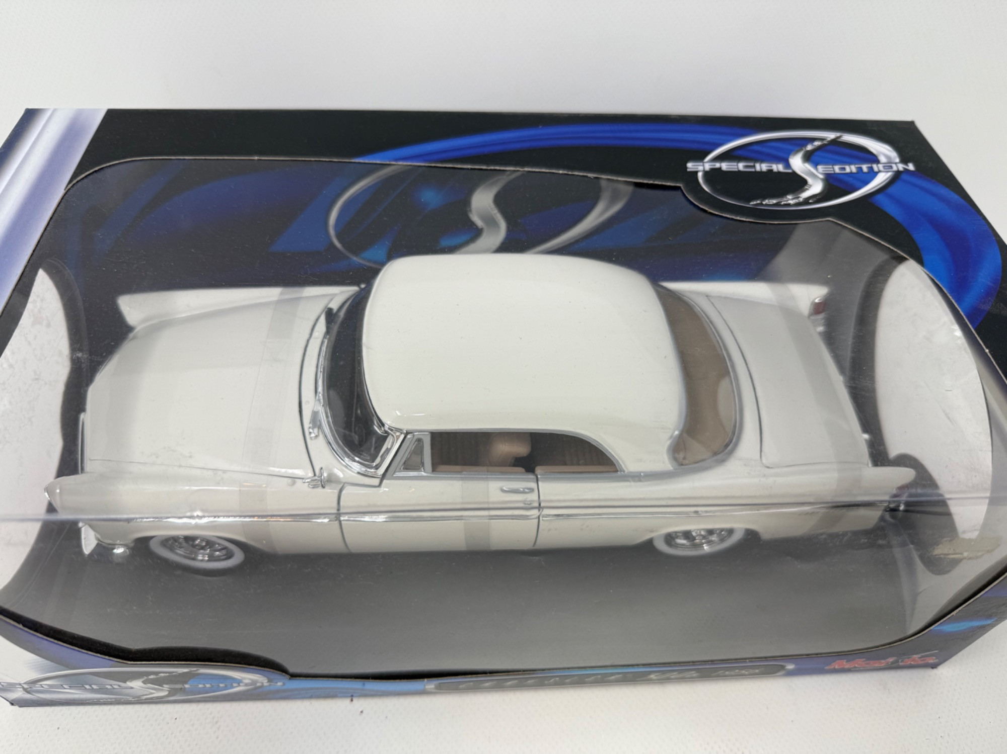 NIB model cars. 1:18 scale Die cast cars 1956 Chrysler 300B in white and crimson