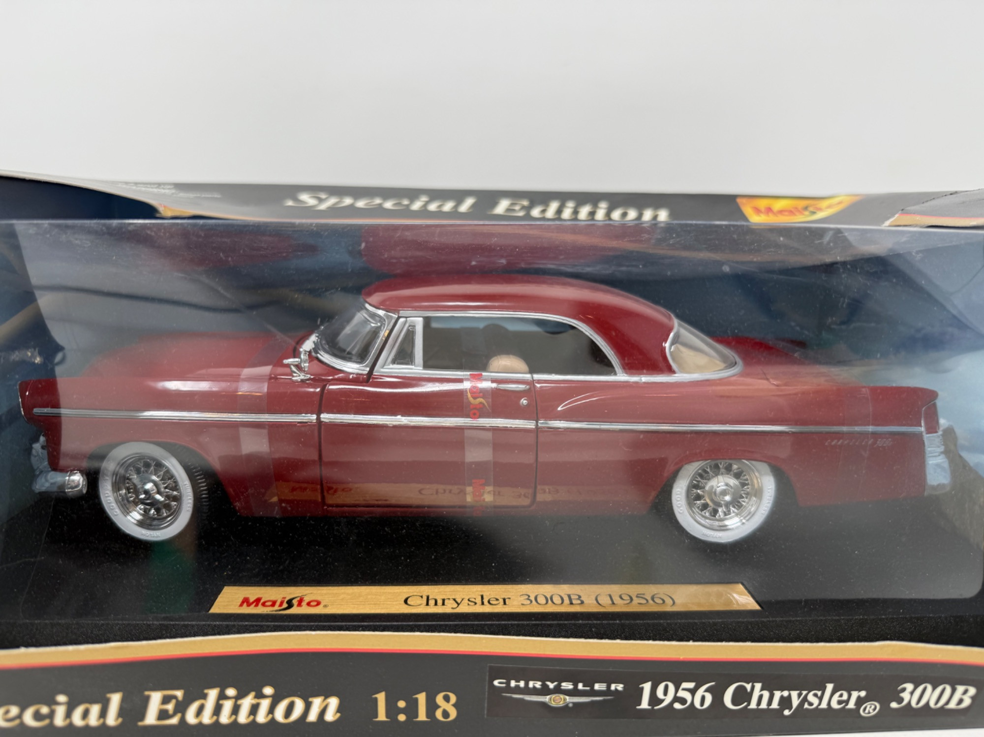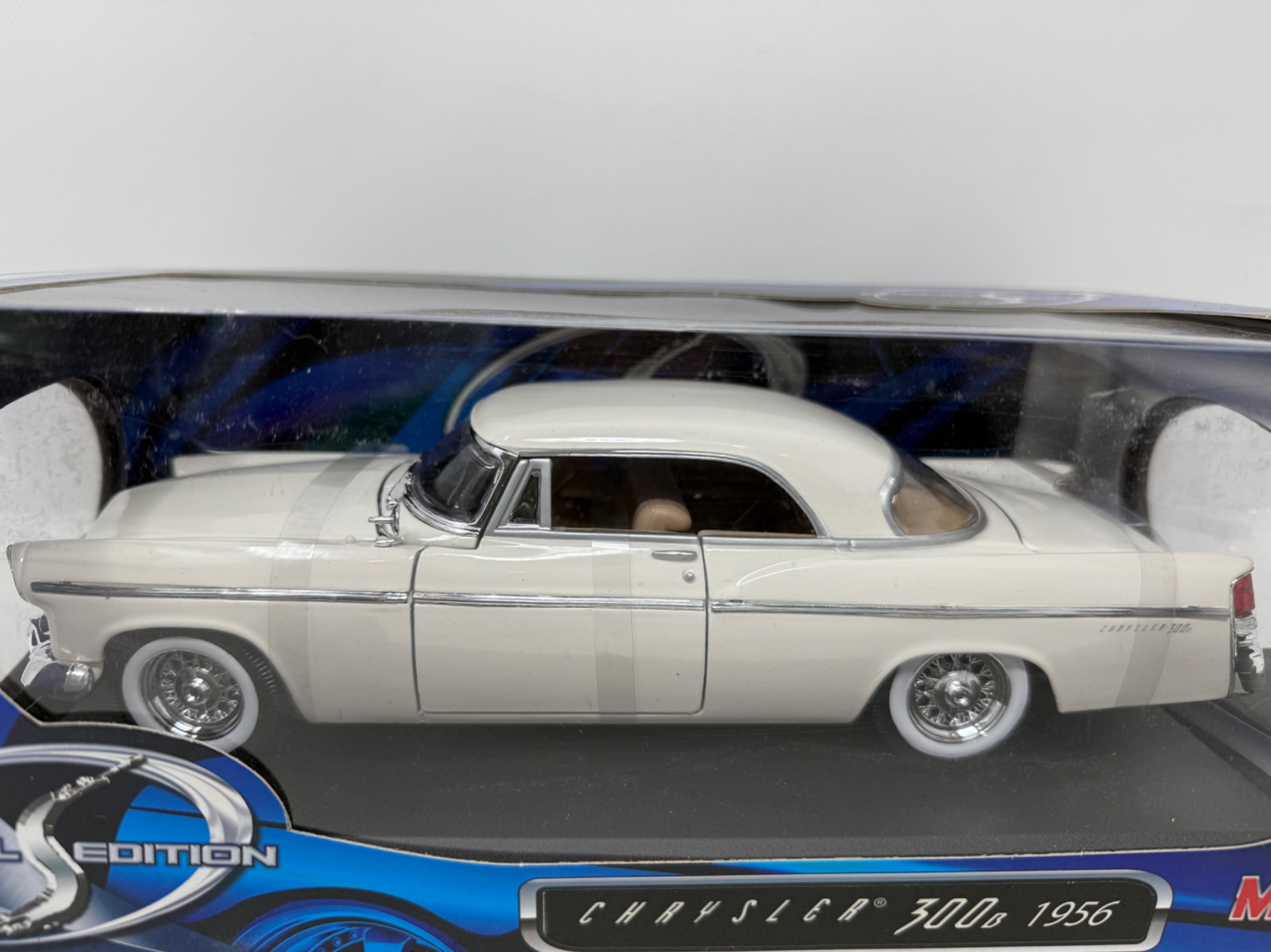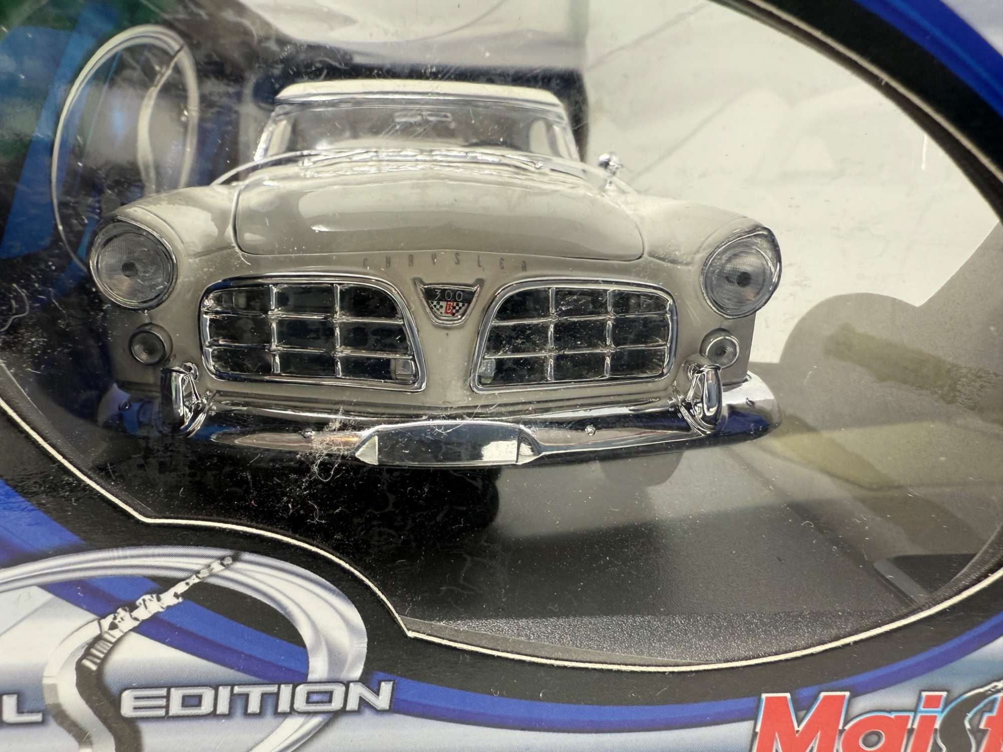 NIB model cars. 1:18 scale Die cast cars 1956 Chrysler 300B in white and crimson