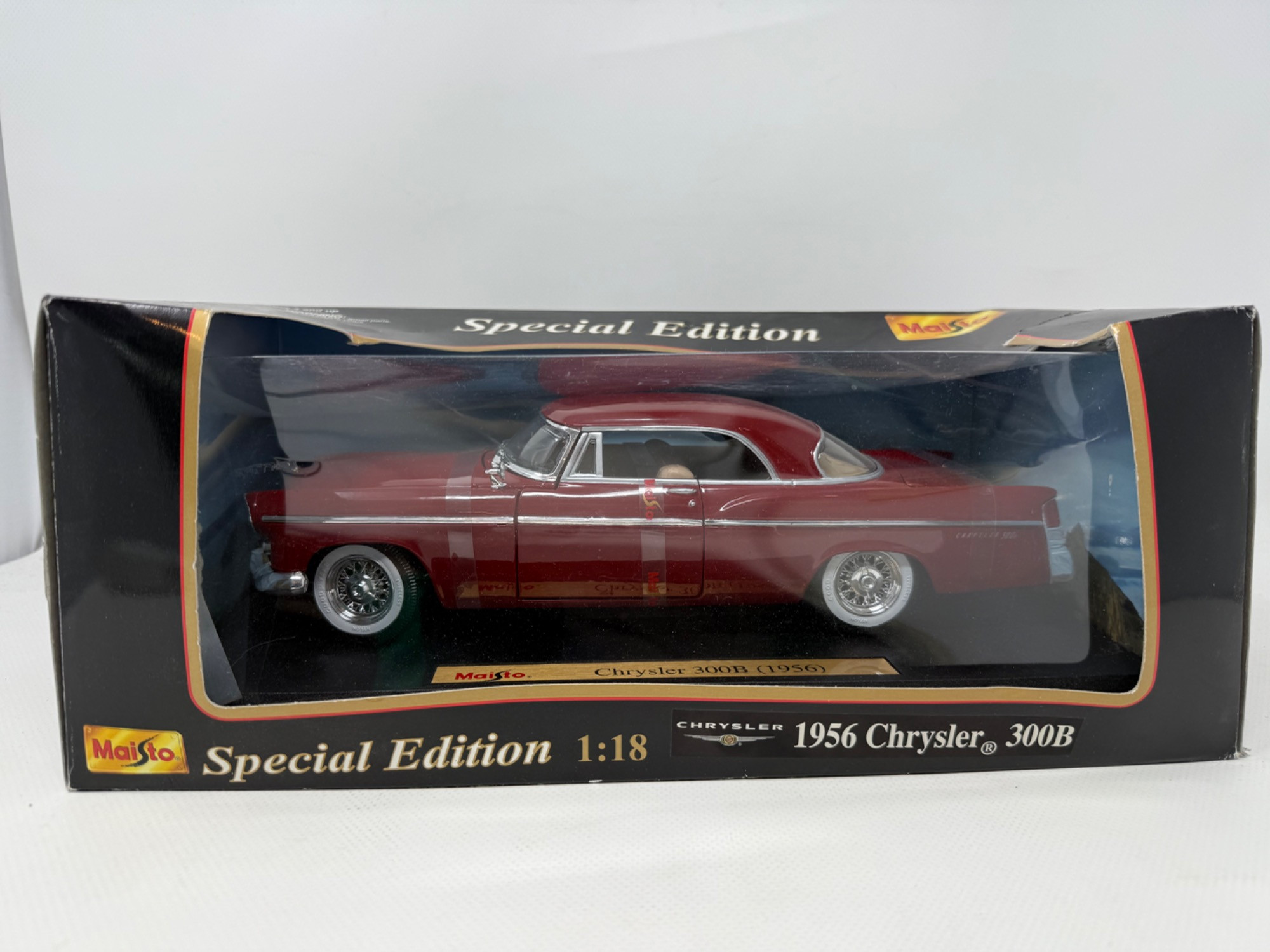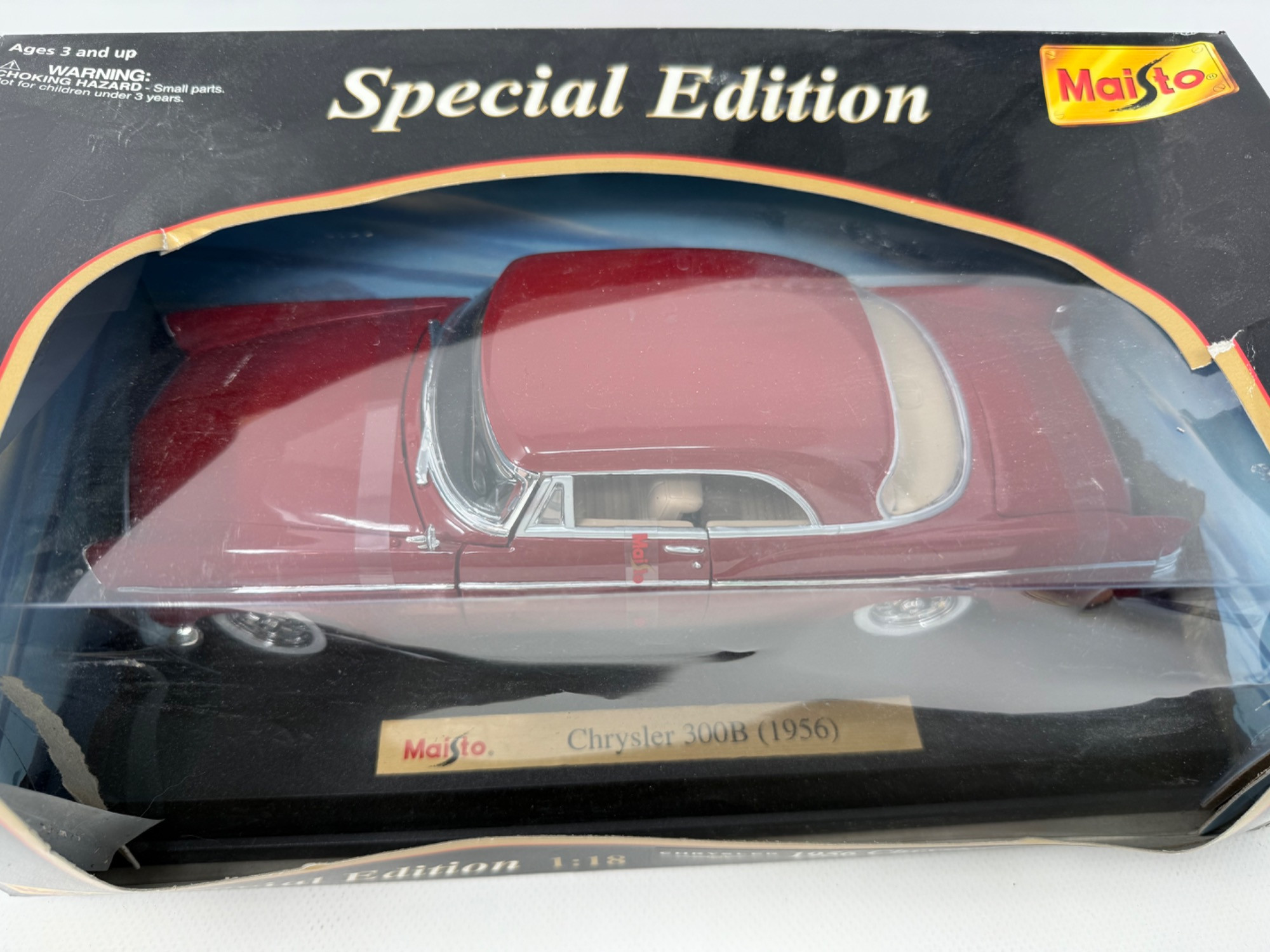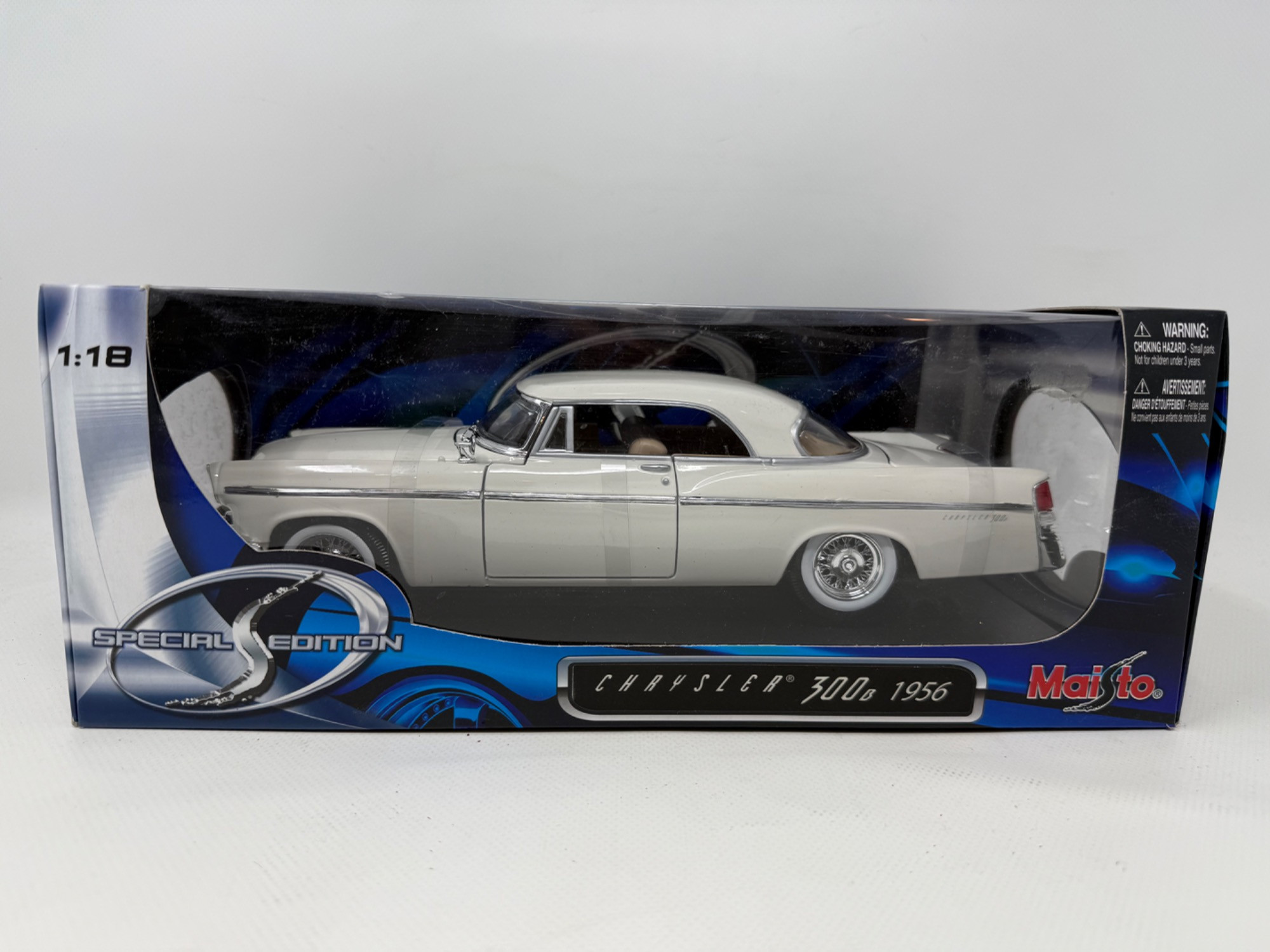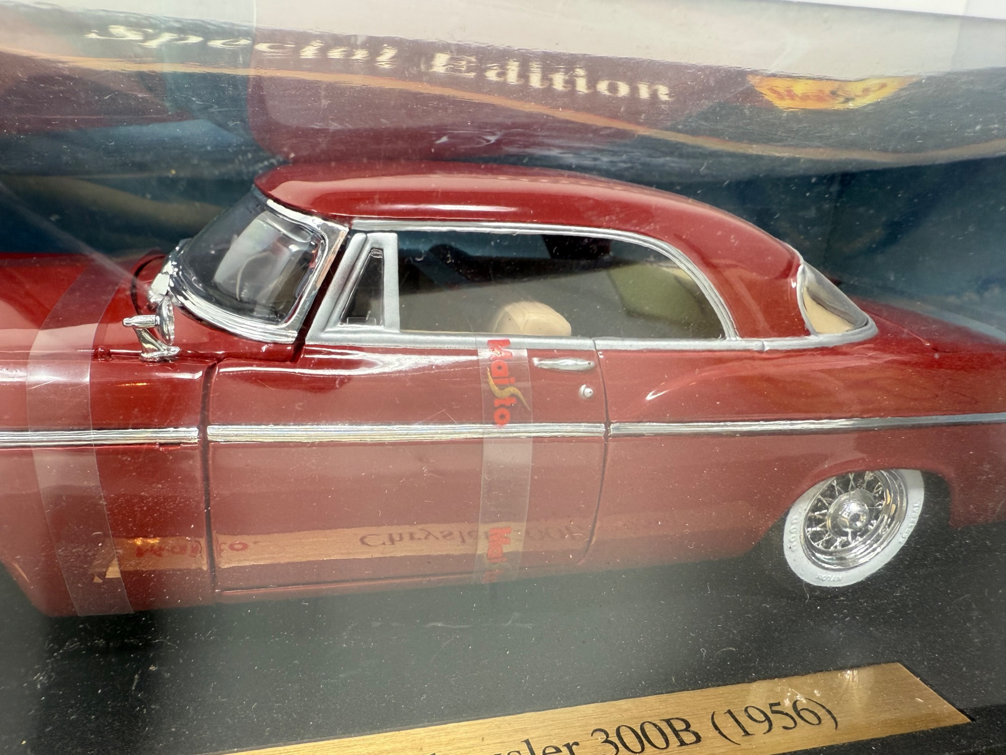 NIB model cars. 1:18 scale Die cast cars 1956 Chrysler 300B in white and crimson