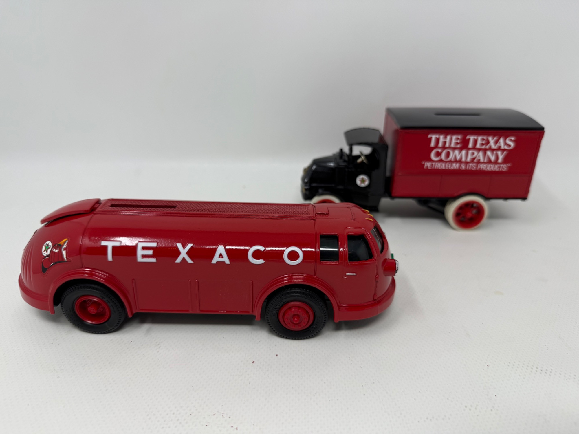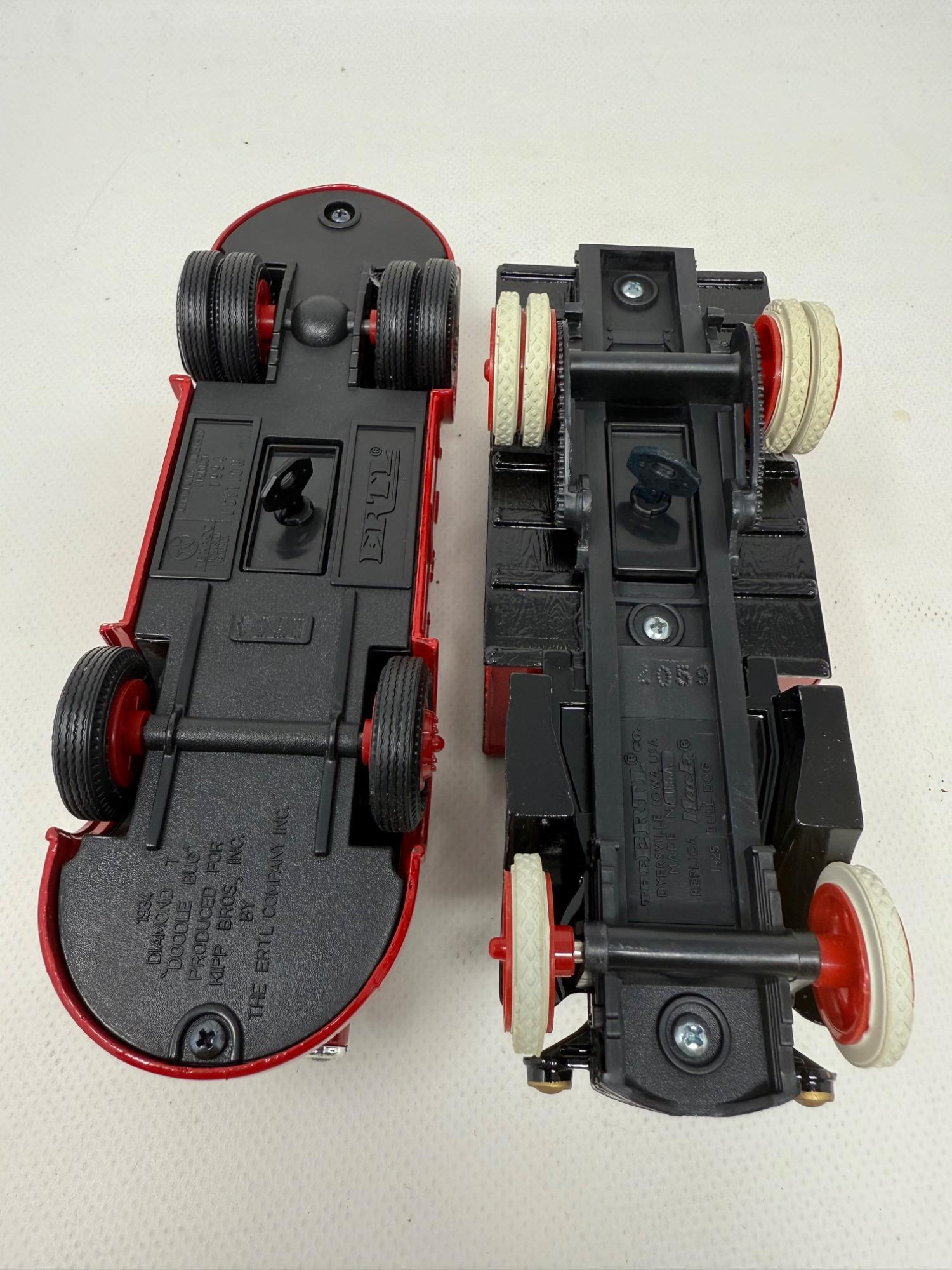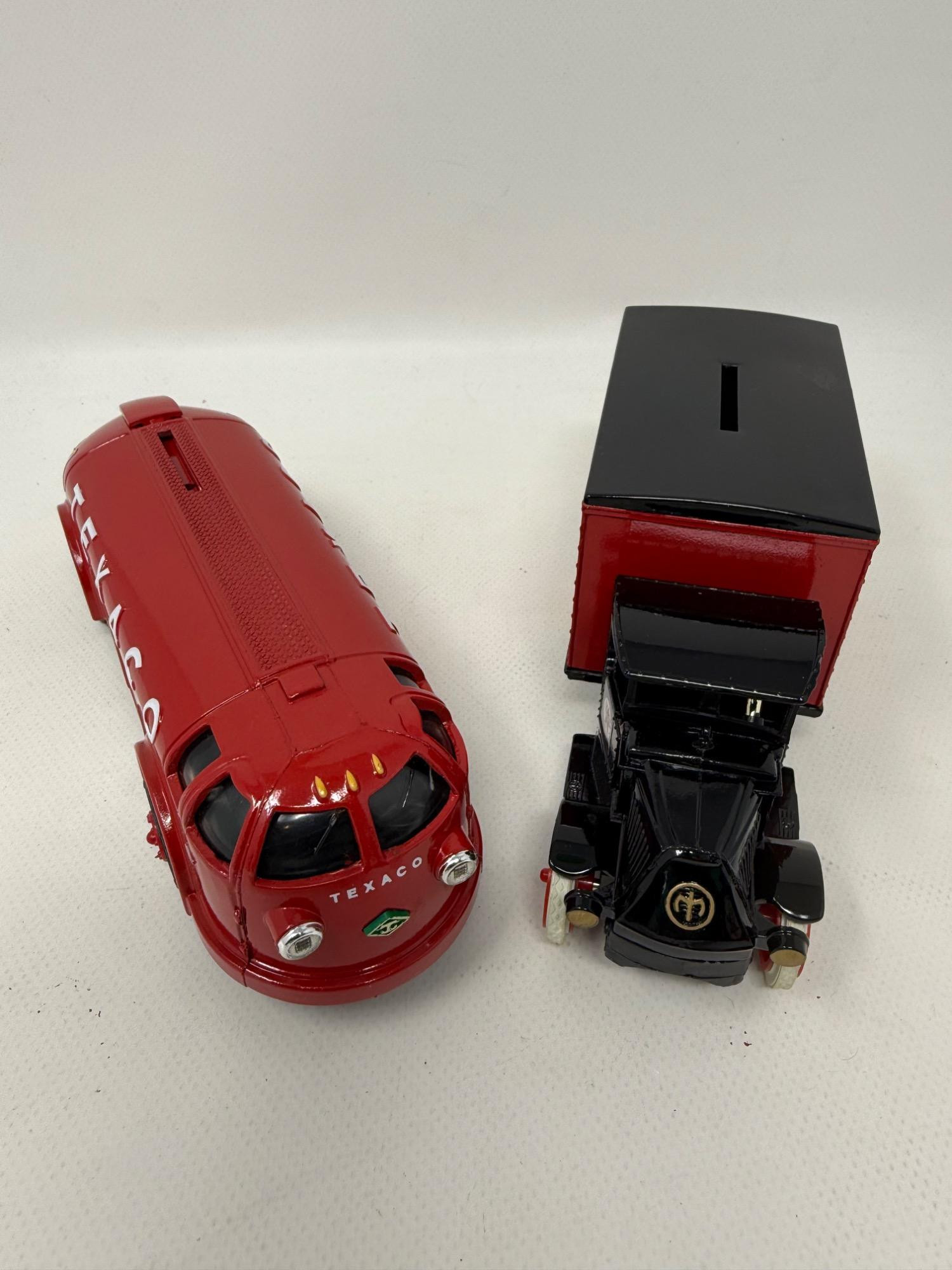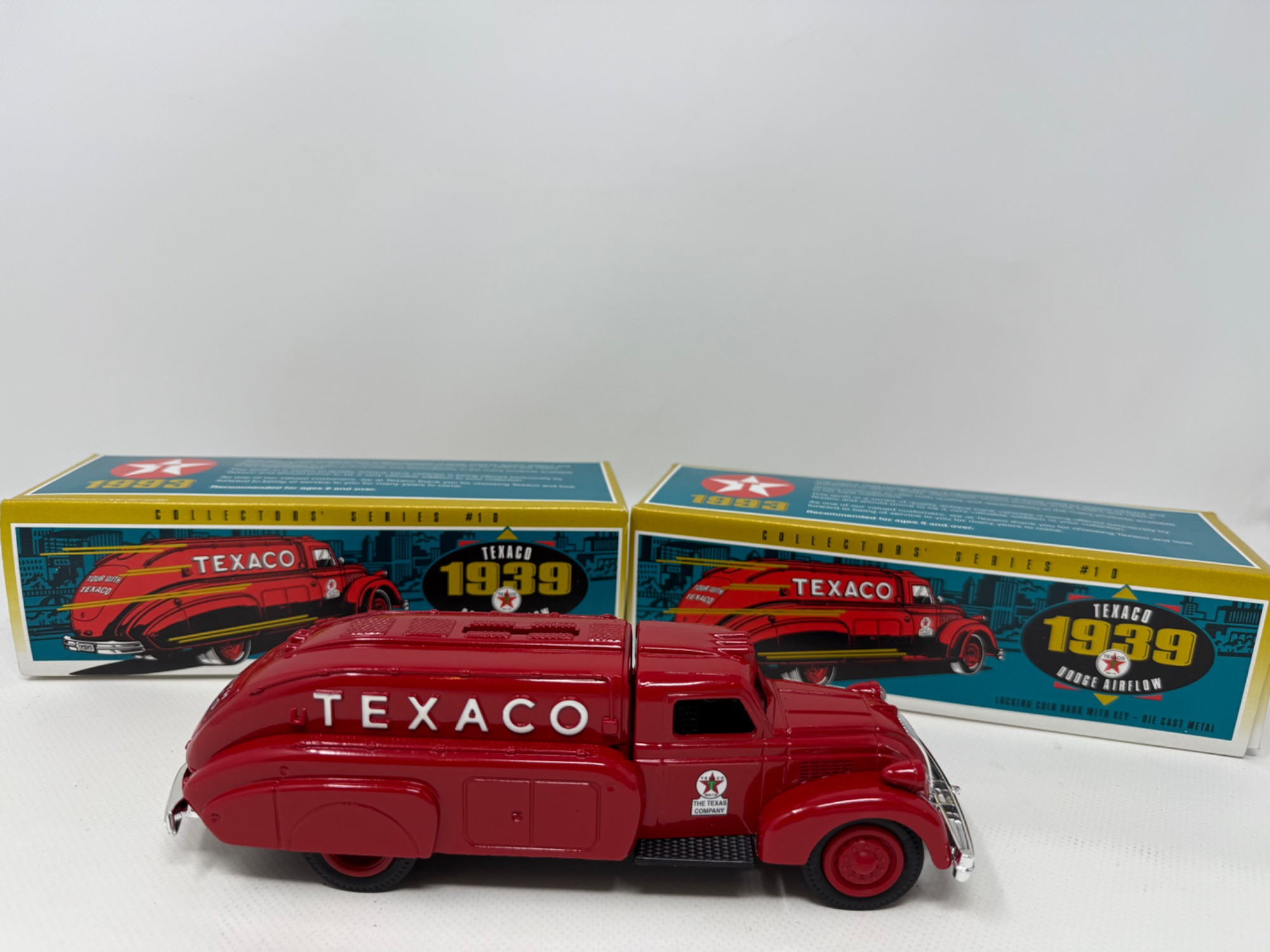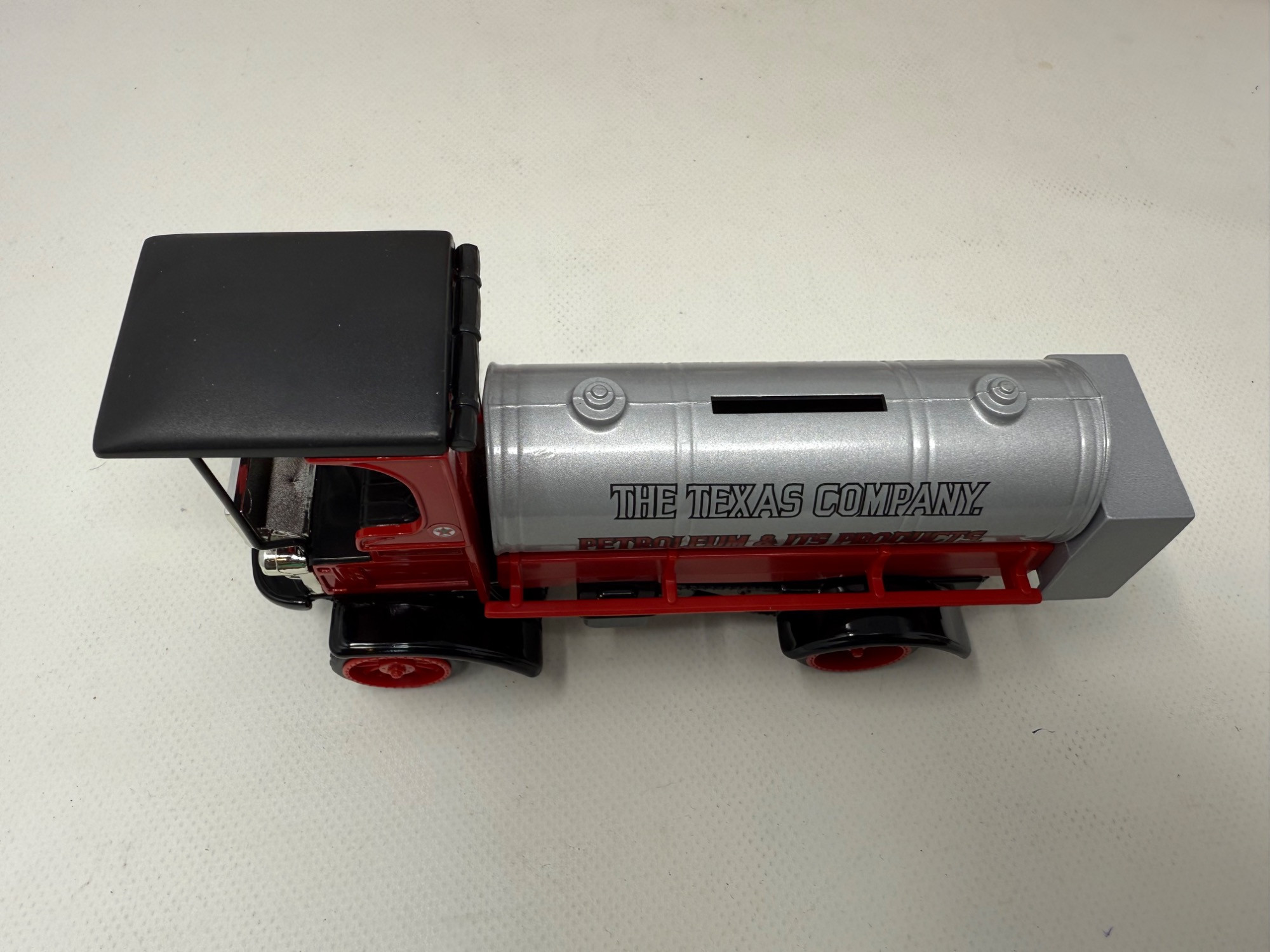 NIB collection of diecast metal trucks and tankers. Advertisement flyers. Four are identical. Some plastic components.
